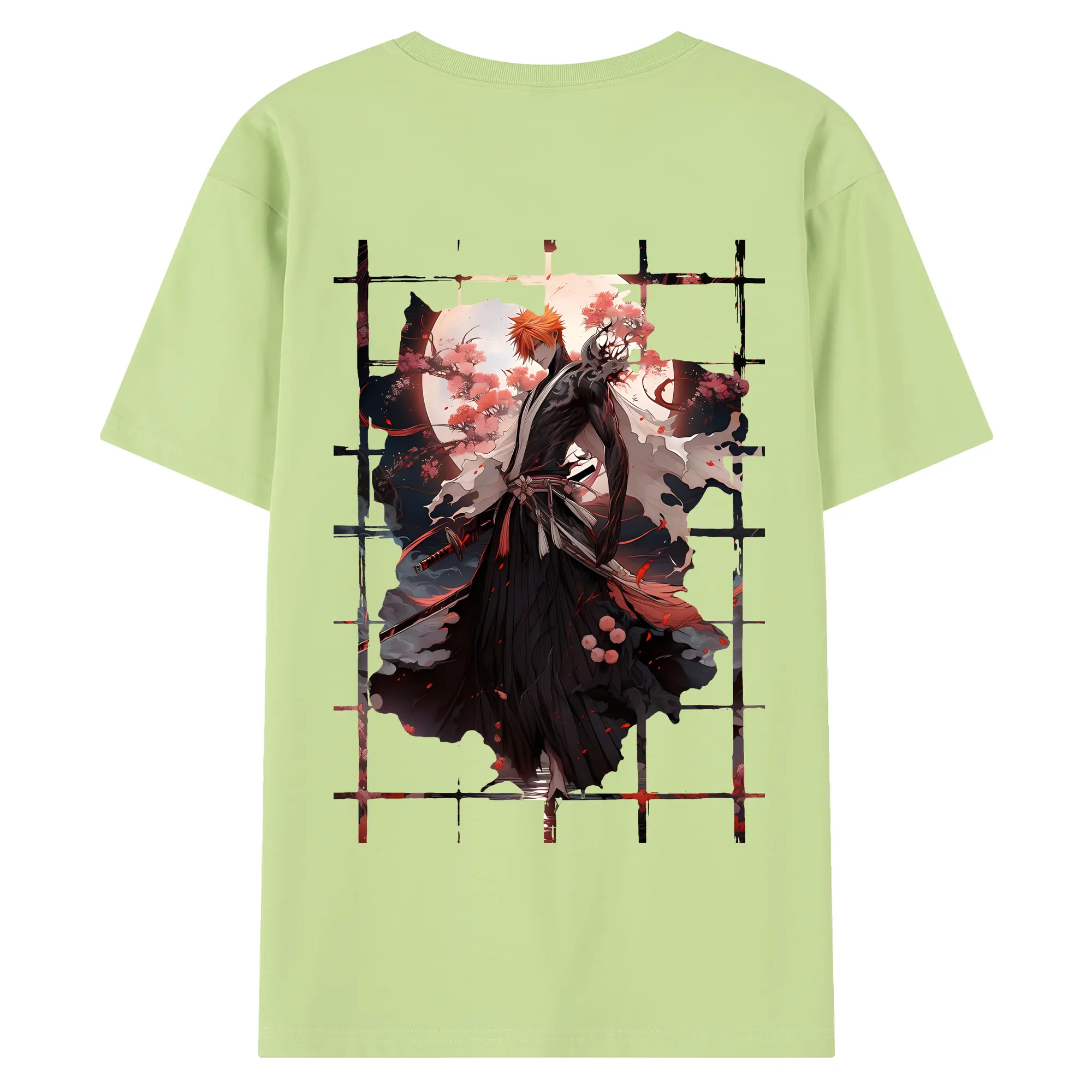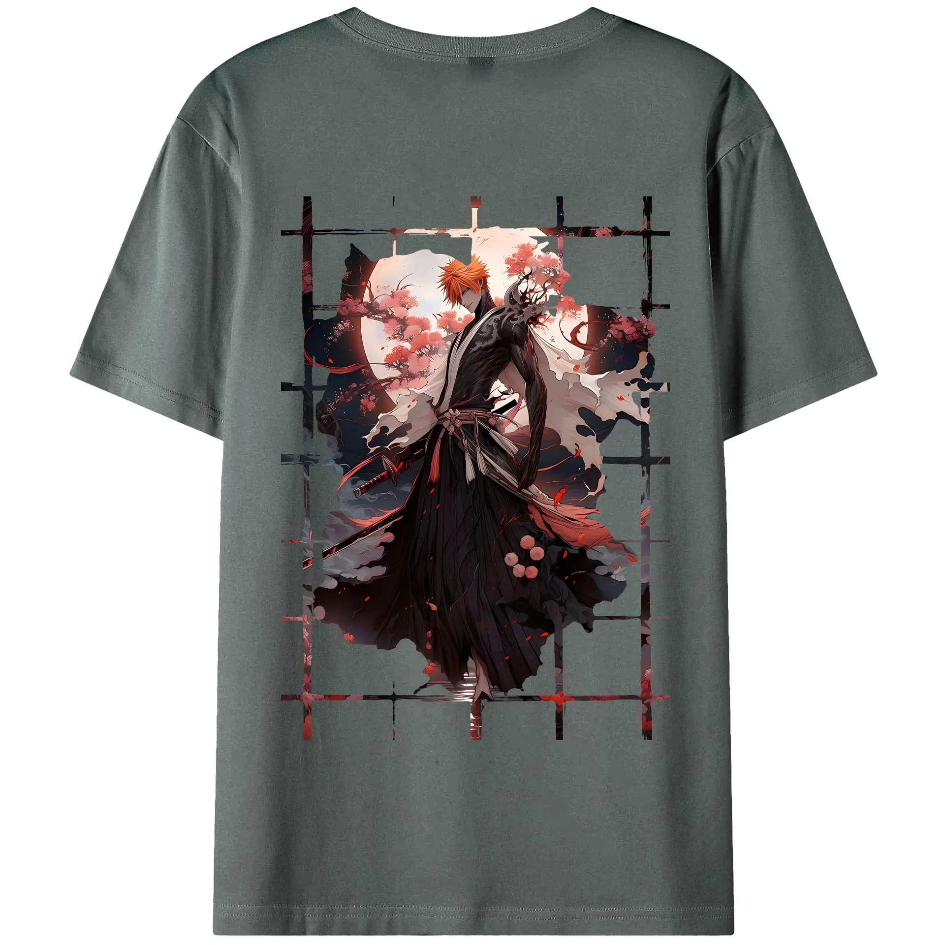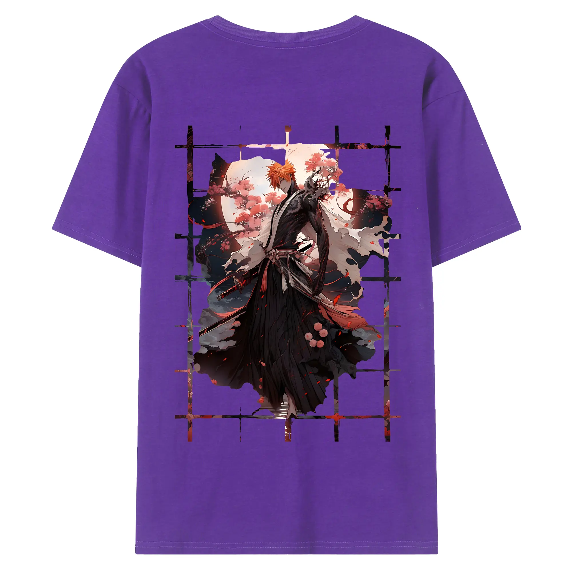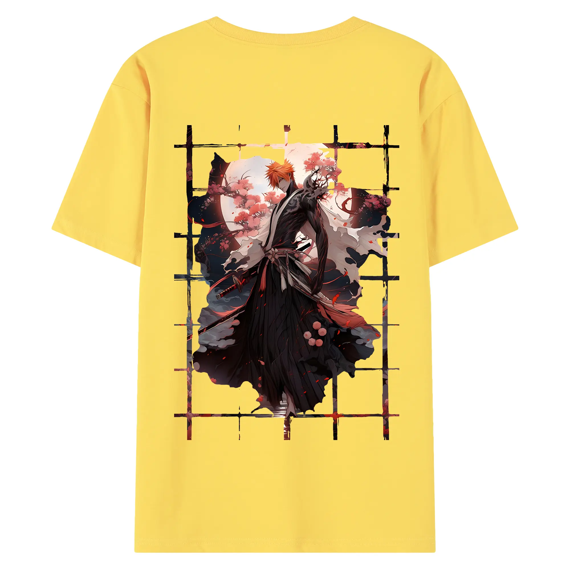 ブリーチ グッズ 黒崎 一護 - 綿100% ヴィンテージ風 半袖Tシャツ ・ 背面プリント ・ 柔らか肌触り ・ 通気性 快適 ・ スポーツ カジュアル 外出用