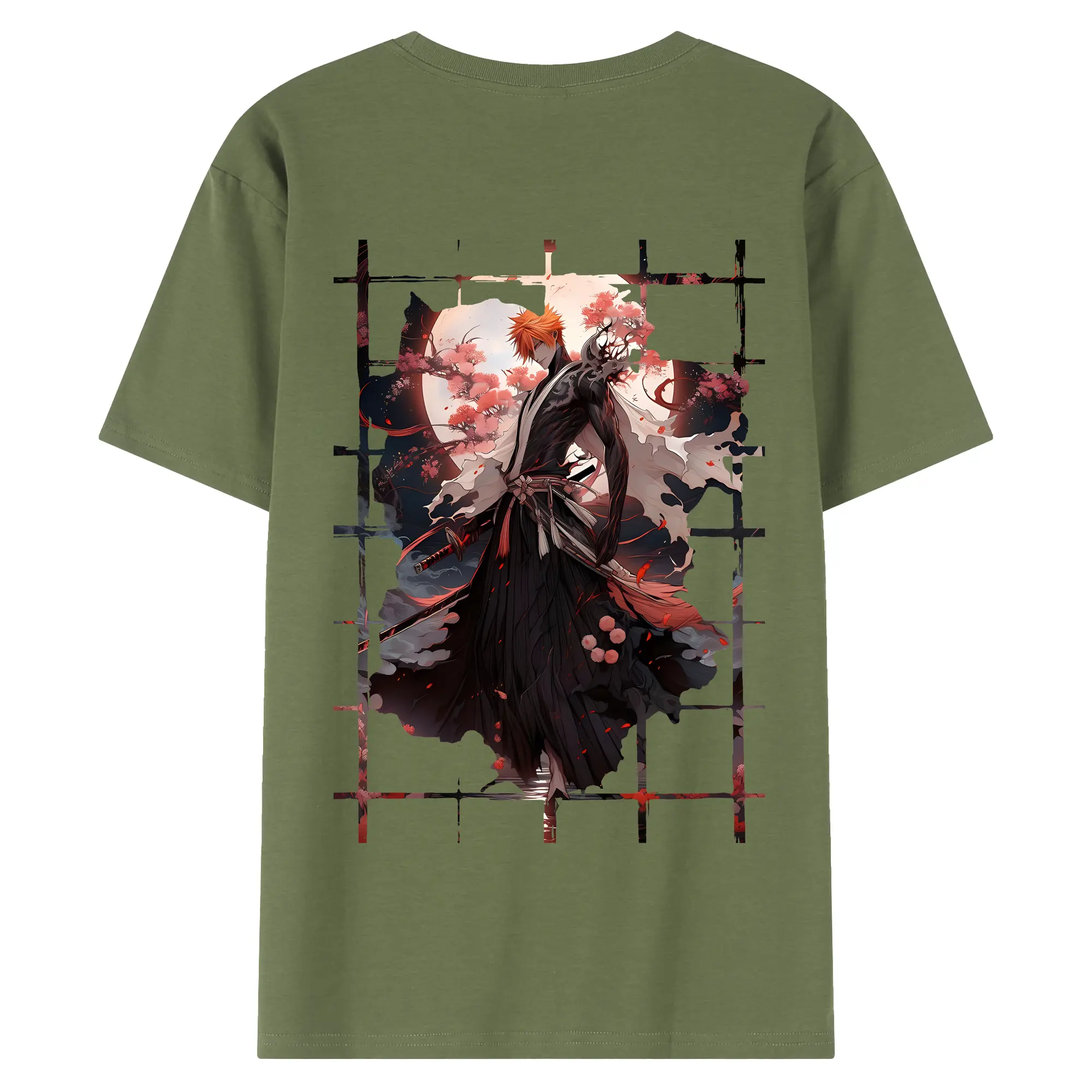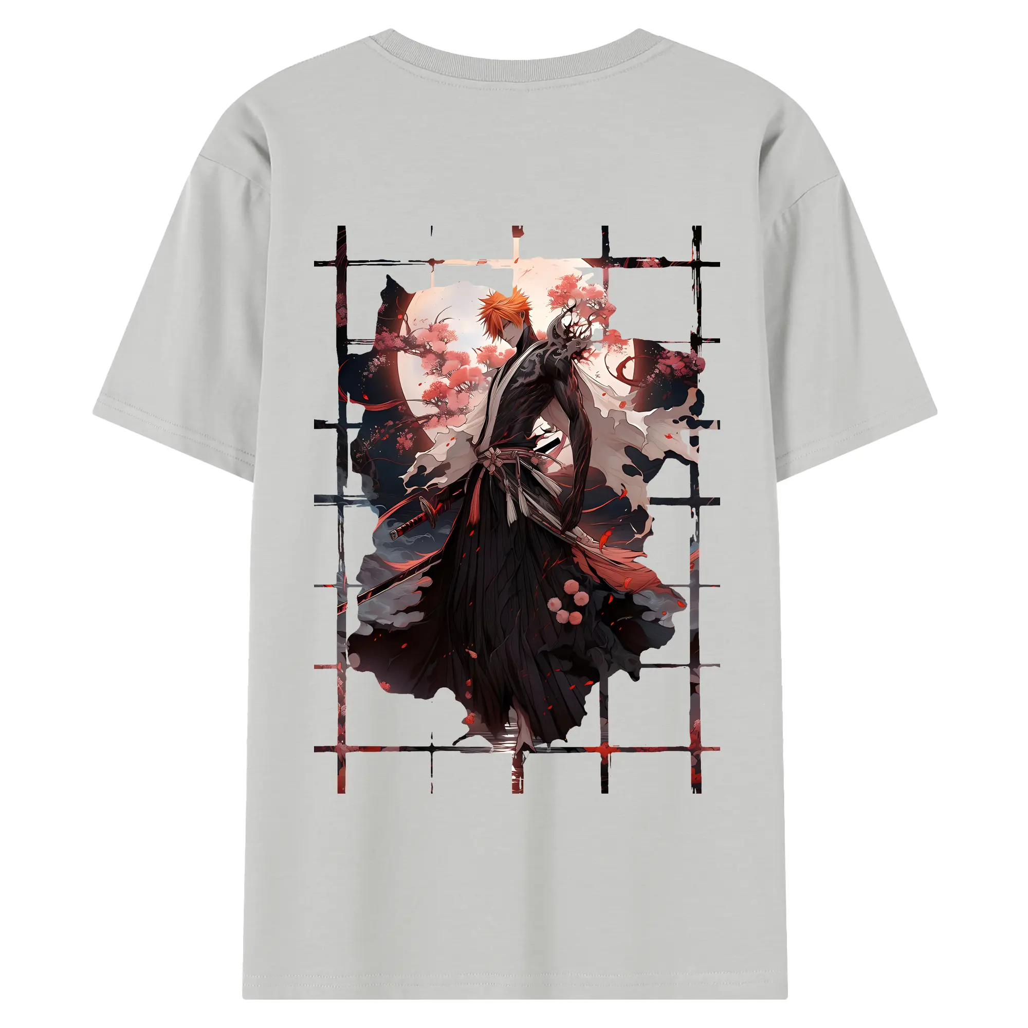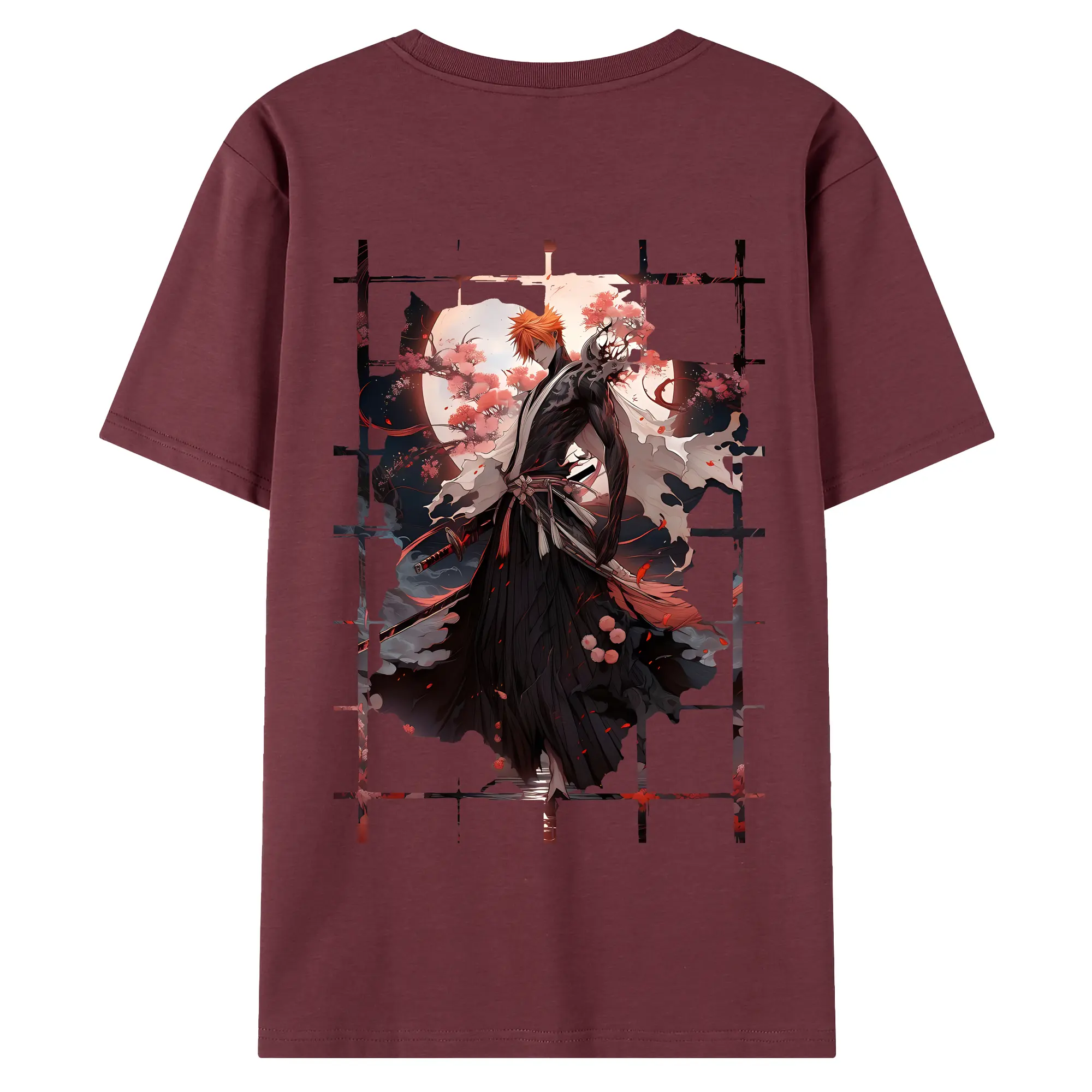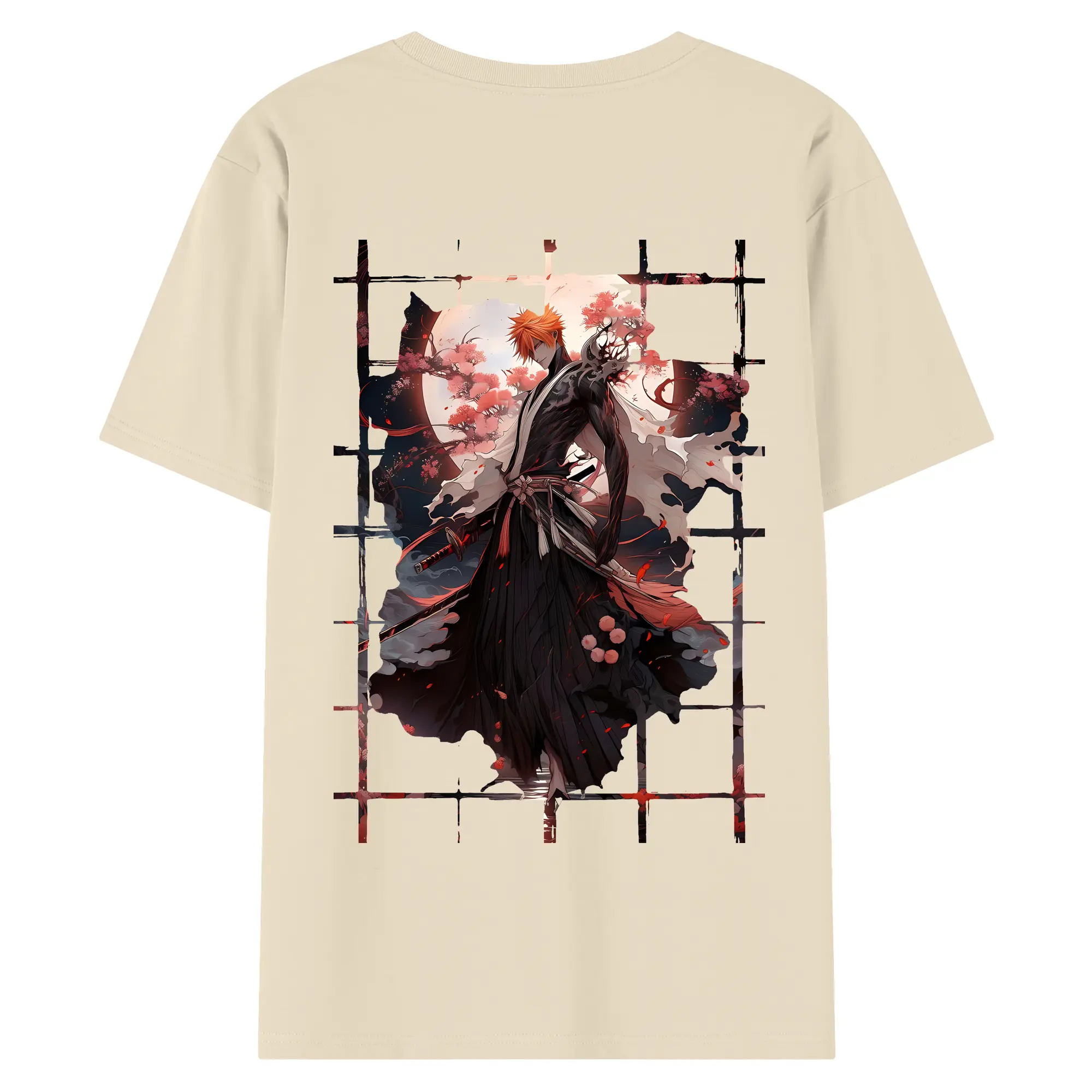 ブリーチ グッズ 黒崎 一護 - 綿100% ヴィンテージ風 半袖Tシャツ ・ 背面プリント ・ 柔らか肌触り ・ 通気性 快適 ・ スポーツ カジュアル 外出用