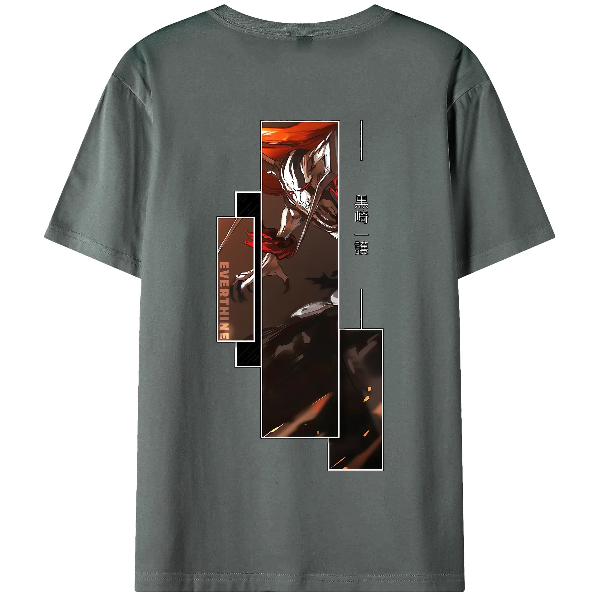 ブリーチ グッズ 黒崎 一護 - 綿100% ヴィンテージ風 半袖Tシャツ ・ 背面プリント ・ 柔らか肌触り ・ 通気性 快適 ・ スポーツ カジュアル 外出用