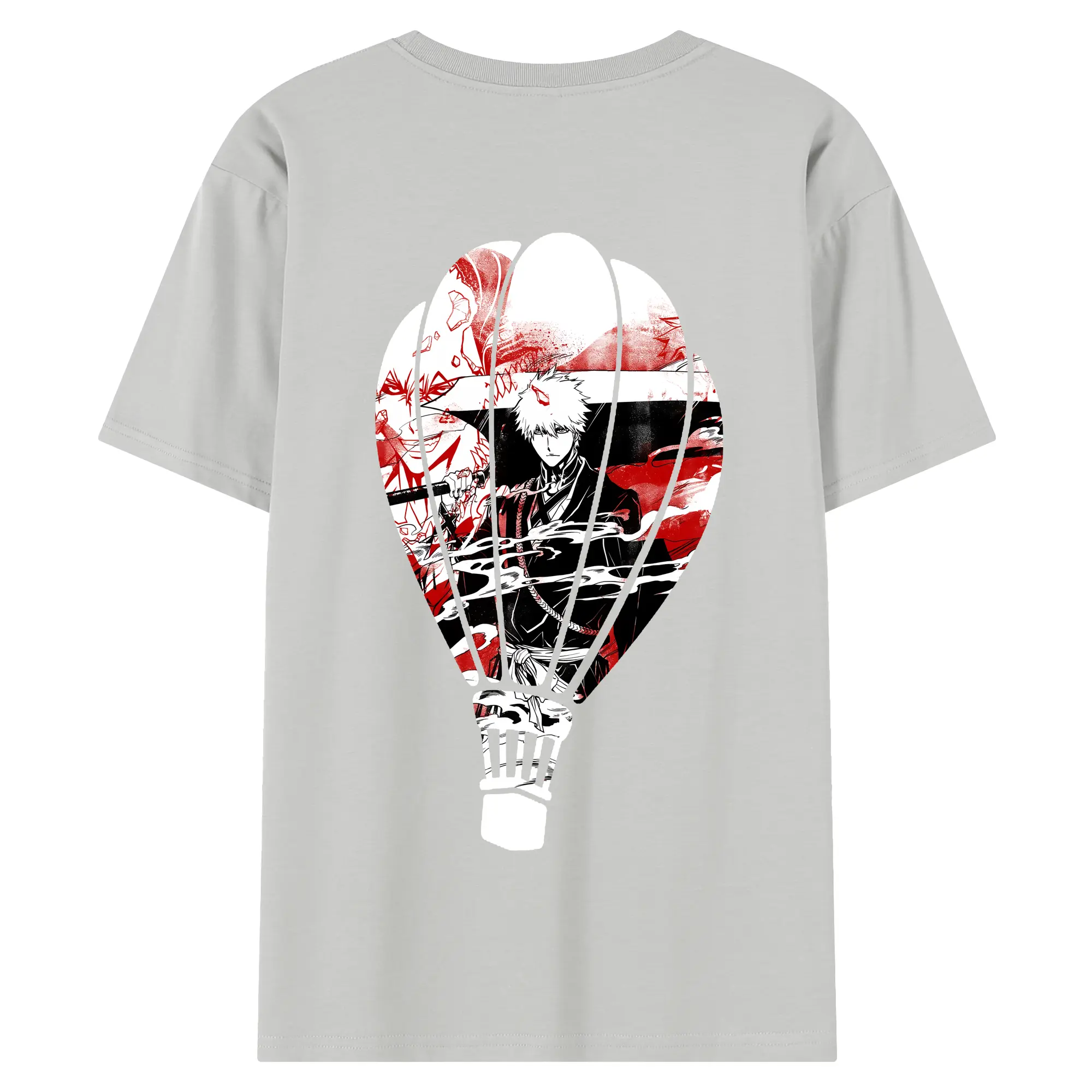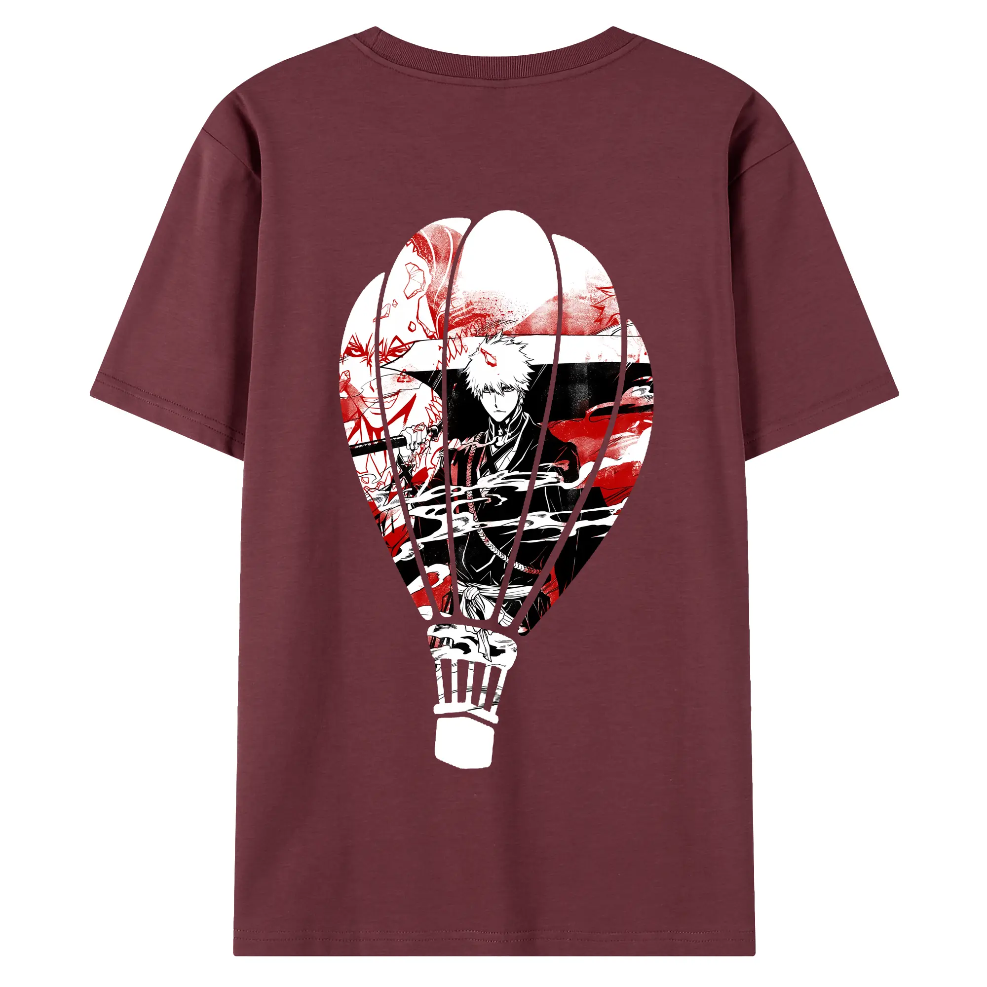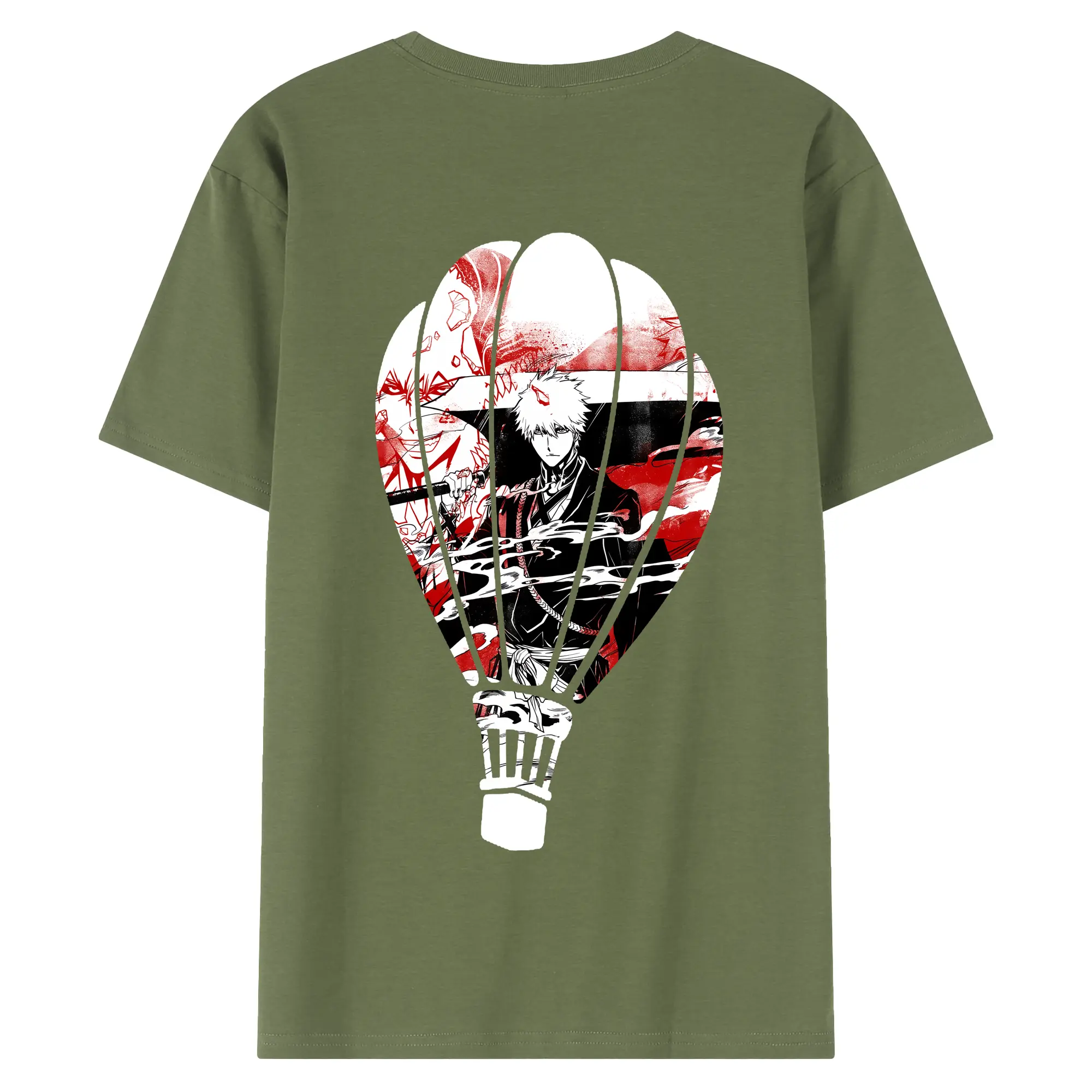 ブリーチ グッズ 黒崎 一護 - 綿100% ヴィンテージ風 半袖Tシャツ ・ 背面プリント ・ 柔らか肌触り ・ 通気性 快適 ・ スポーツ カジュアル 外出用