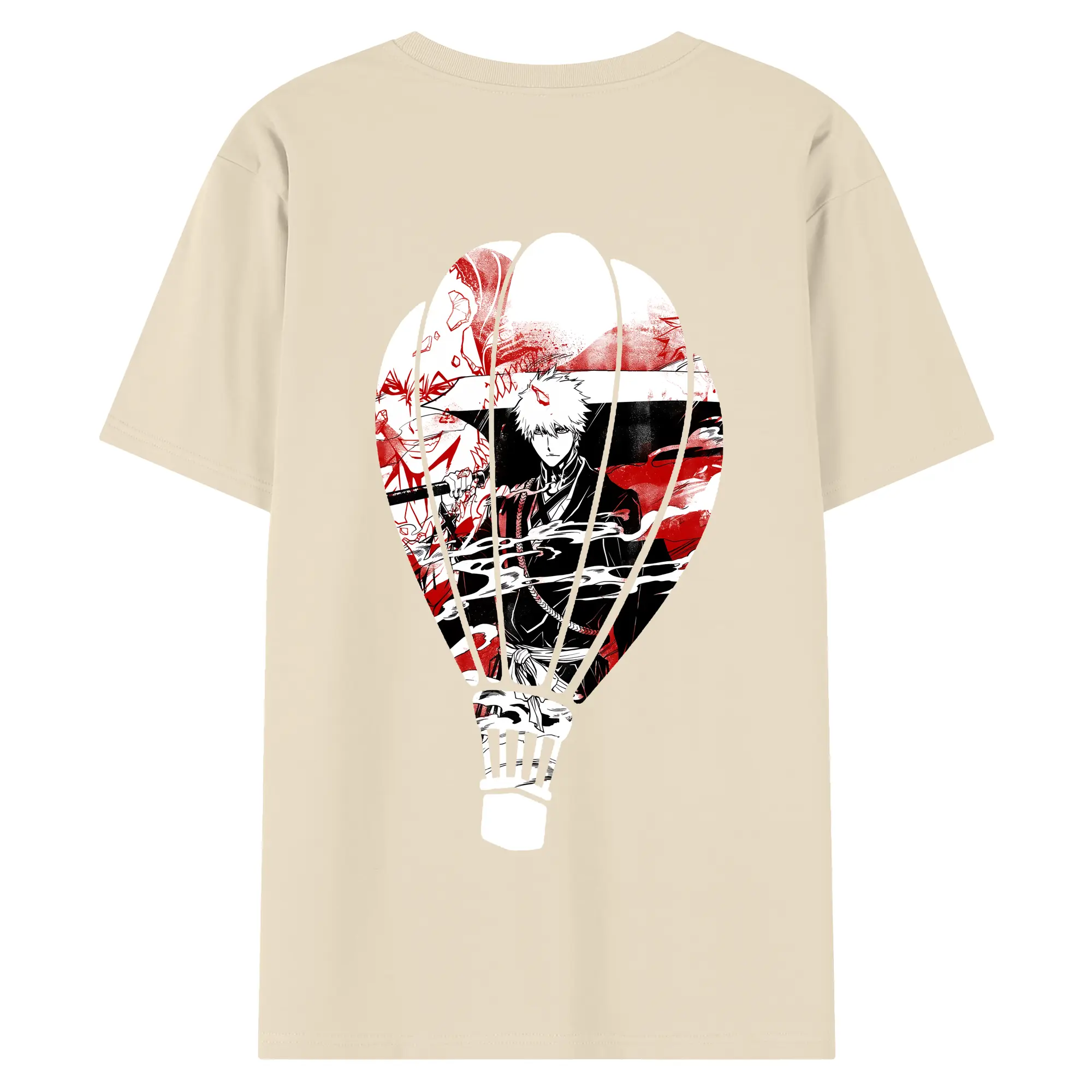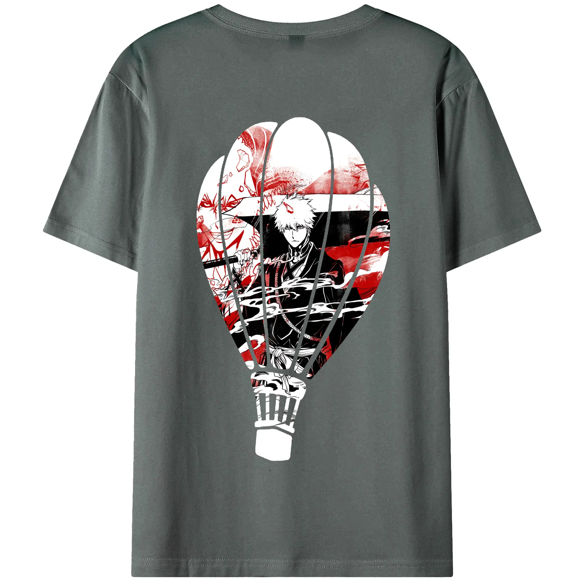 ブリーチ グッズ 黒崎 一護 - 綿100% ヴィンテージ風 半袖Tシャツ ・ フロントプリント ・ 柔らか肌触り ・ 通気性 快適 ・ スポーツ カジュアル 外出用
