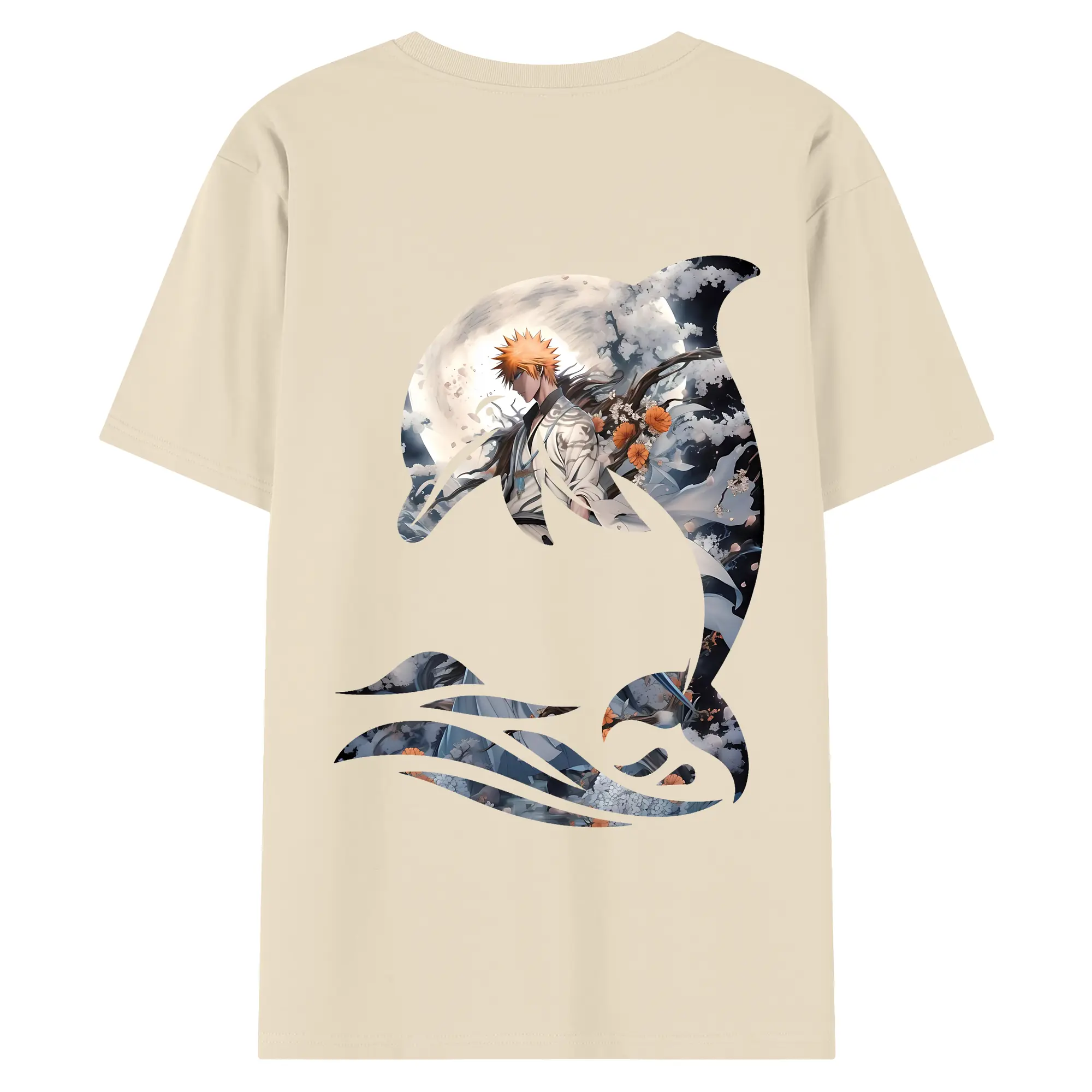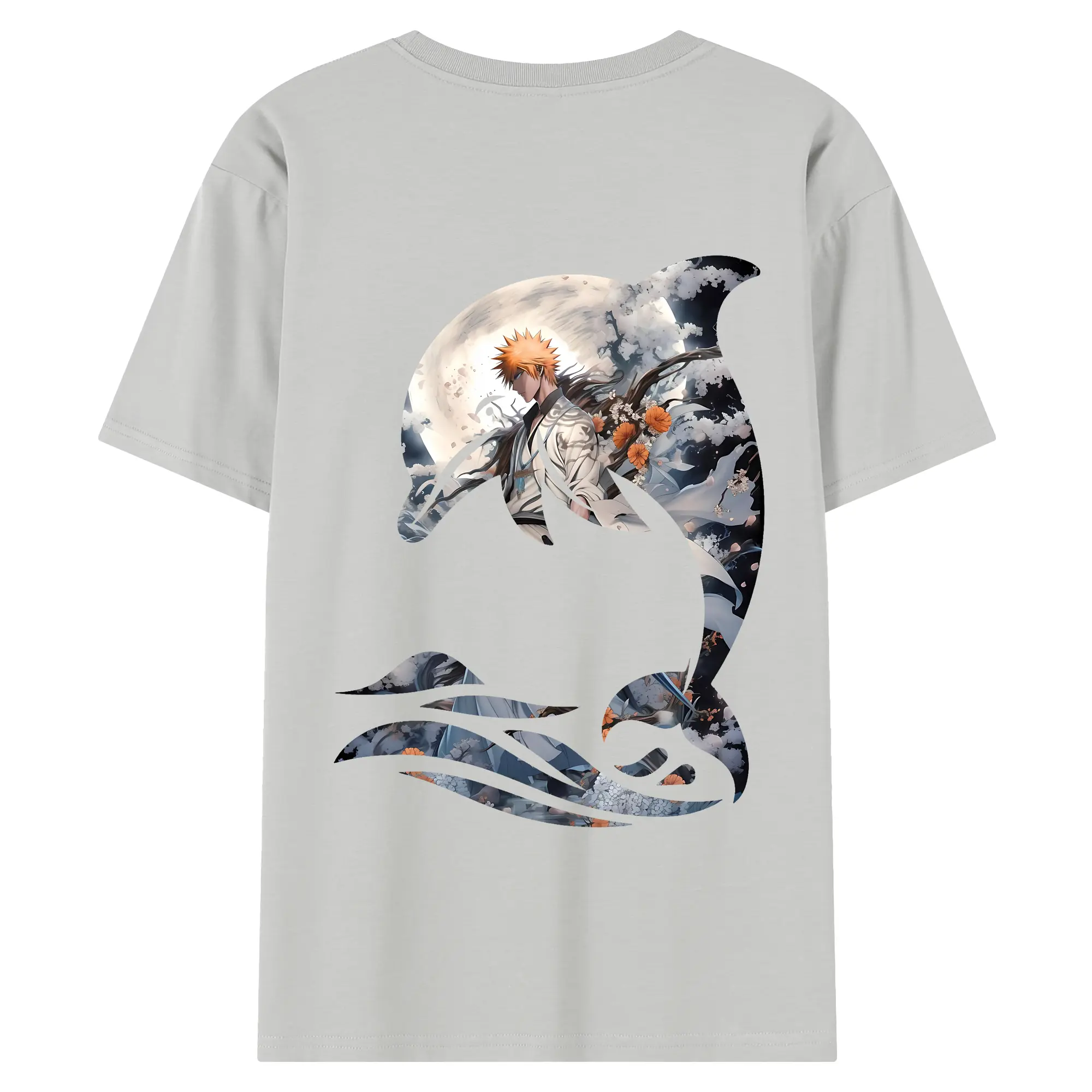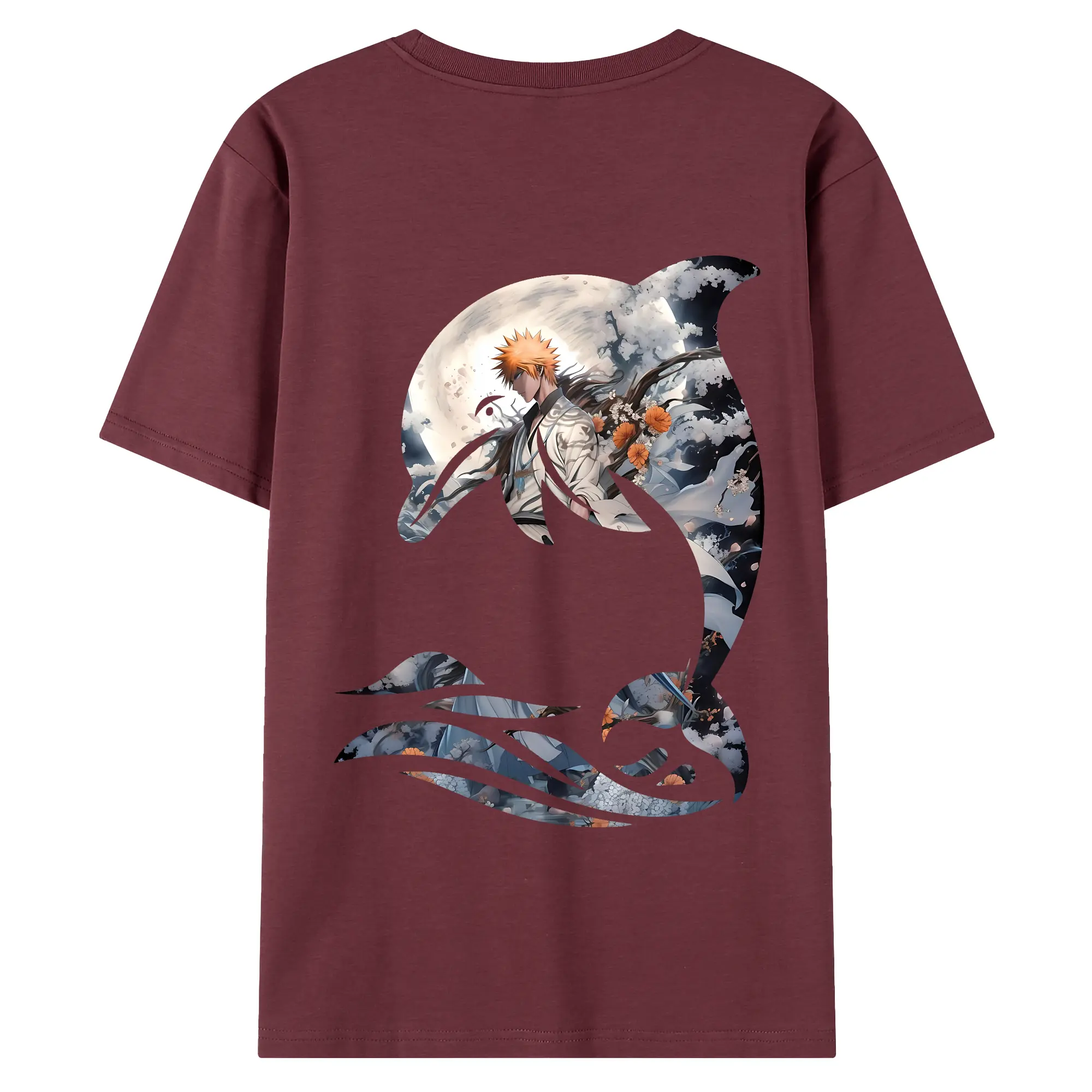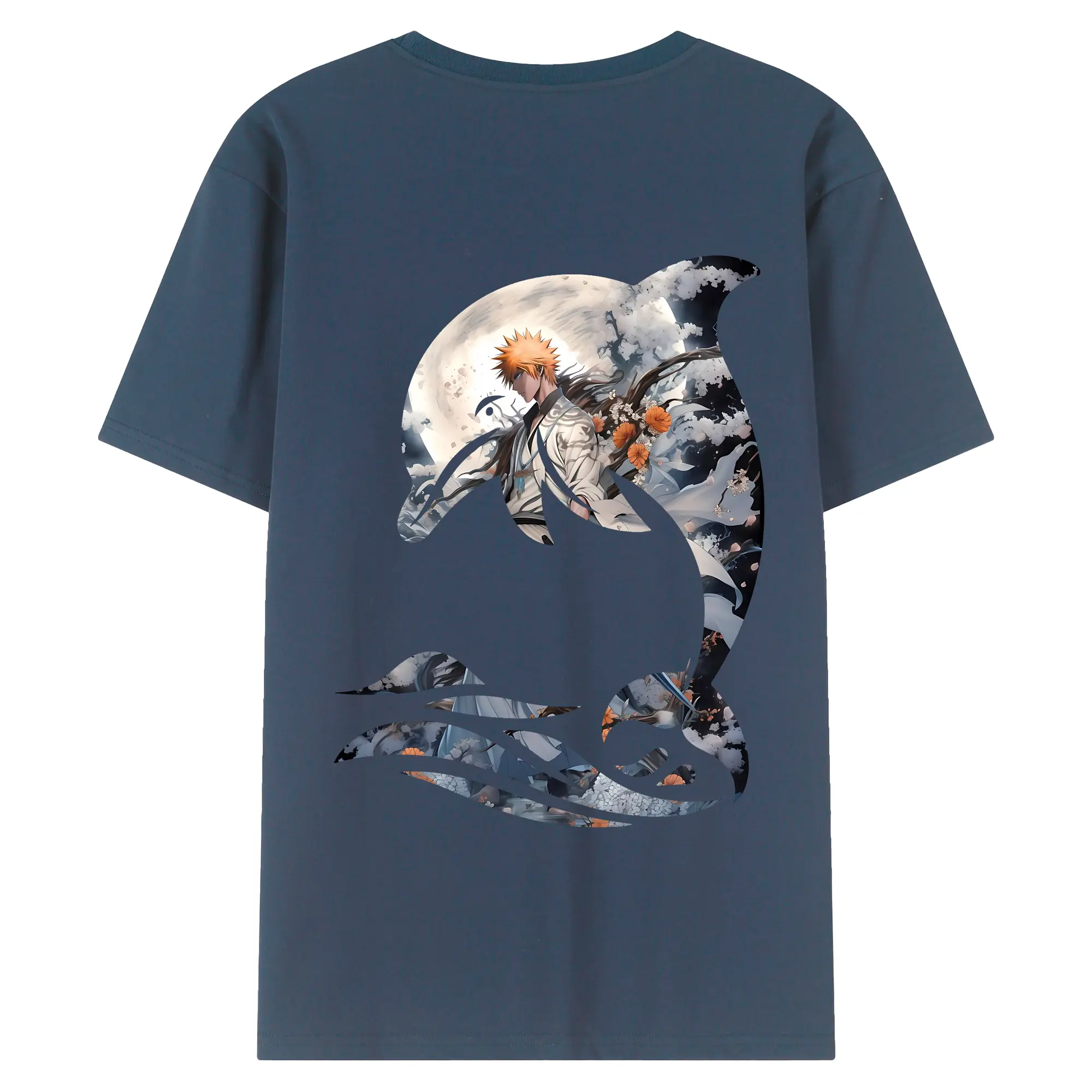 ブリーチ グッズ 黒崎 一護 - 綿100% ヴィンテージ風 半袖Tシャツ ・ 背面プリント ・ 柔らか肌触り ・ 通気性 快適 ・ スポーツ カジュアル 外出用