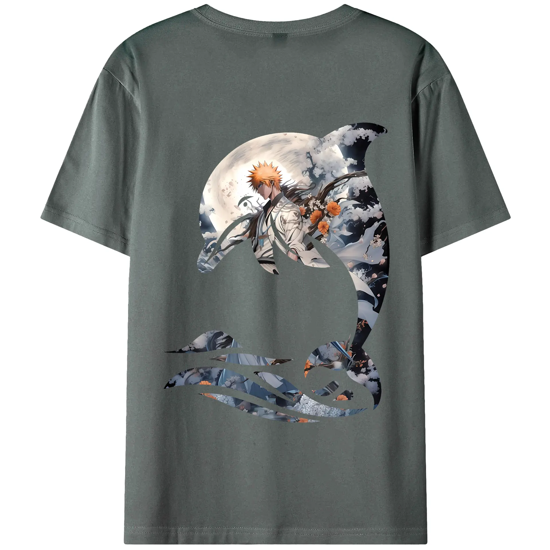 ブリーチ グッズ 黒崎 一護 - 綿100% 半袖Tシャツ ・ フロントプリント ・ 快適 通気性 ・ 日常使い 散歩 スポーツ用
