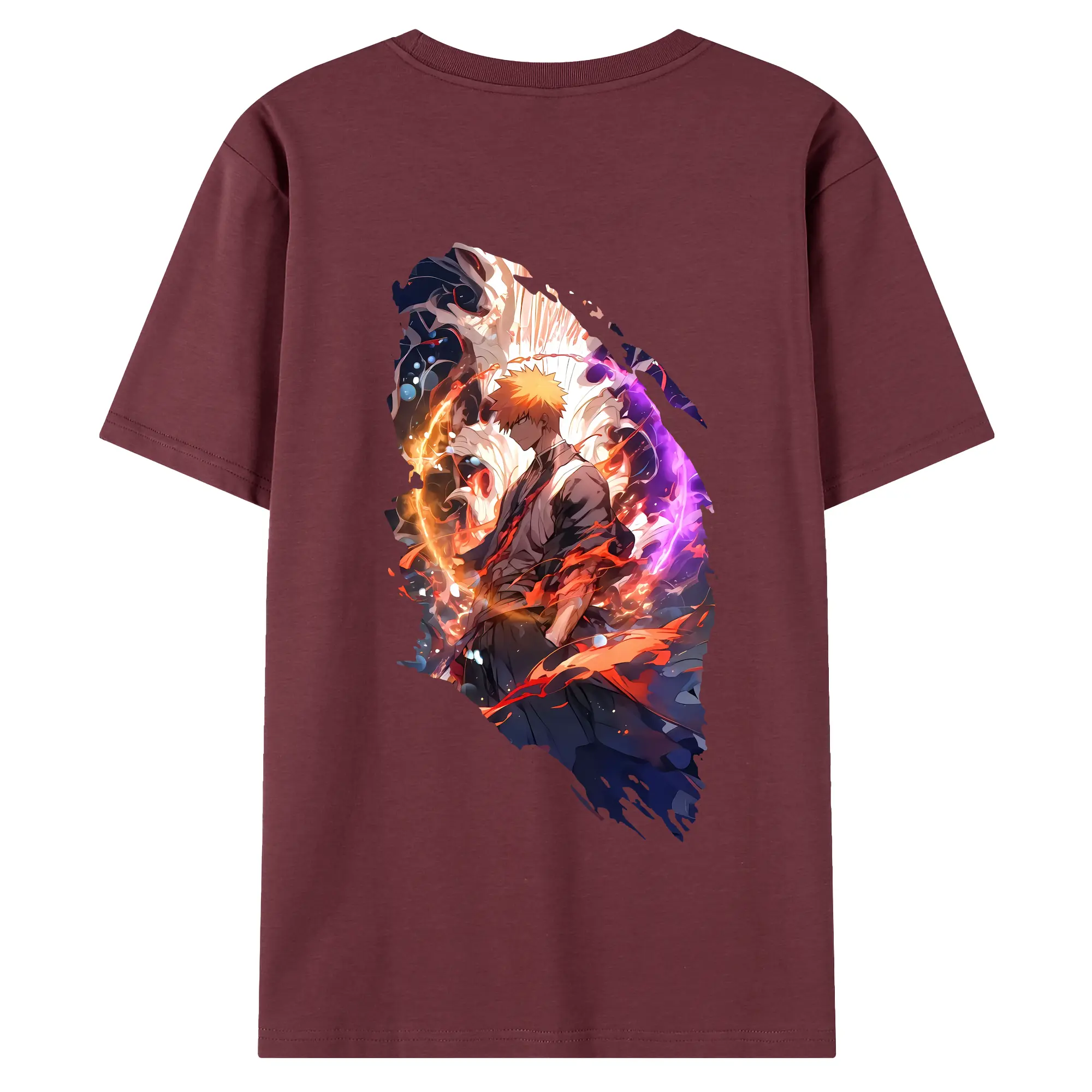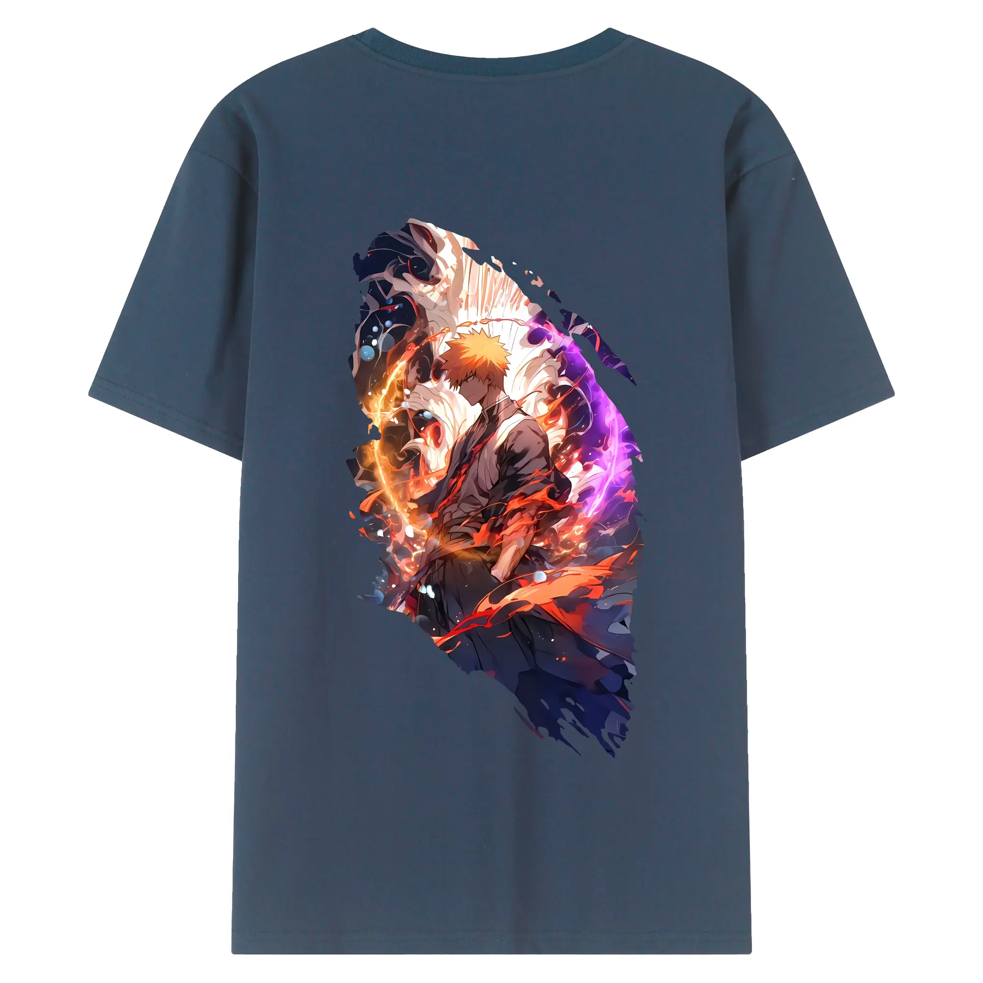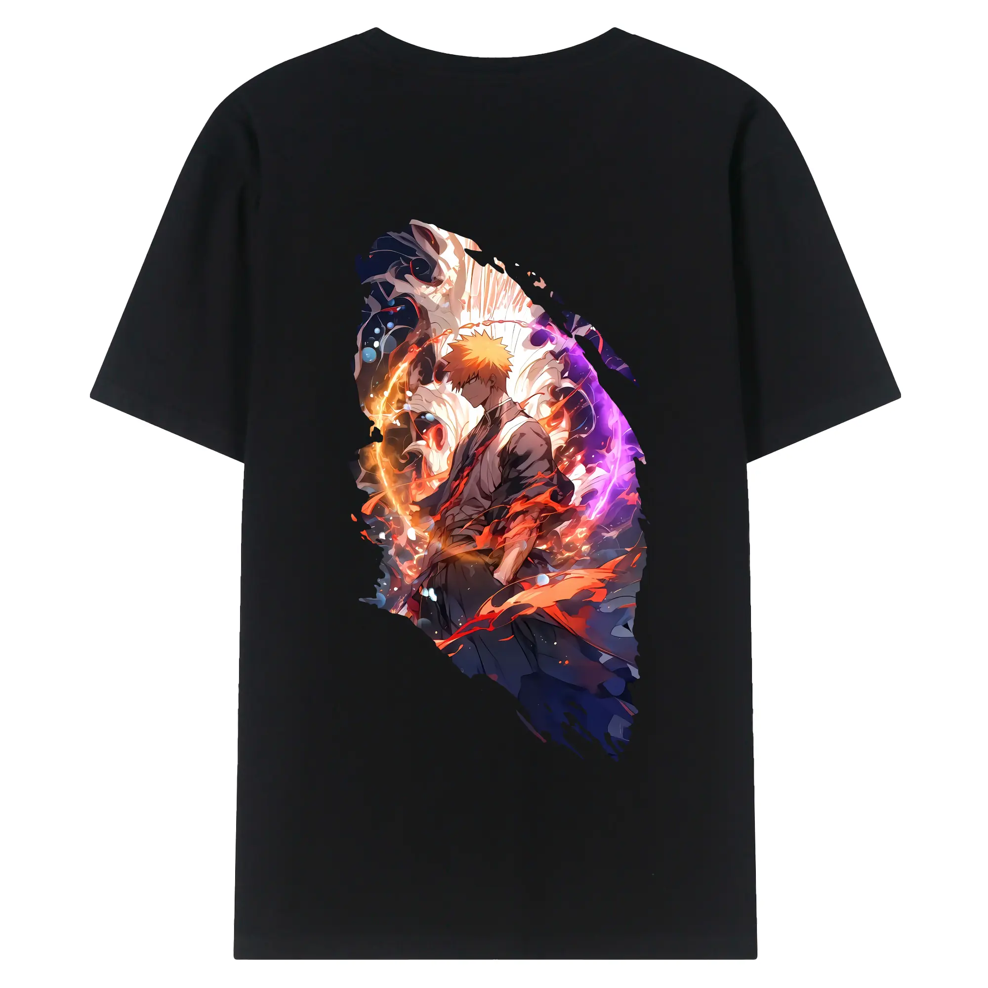 ブリーチ グッズ 黒崎 一護 - 綿100% ヴィンテージ風 半袖Tシャツ ・ 背面プリント ・ 柔らか肌触り ・ 通気性 快適 ・ スポーツ カジュアル 外出用