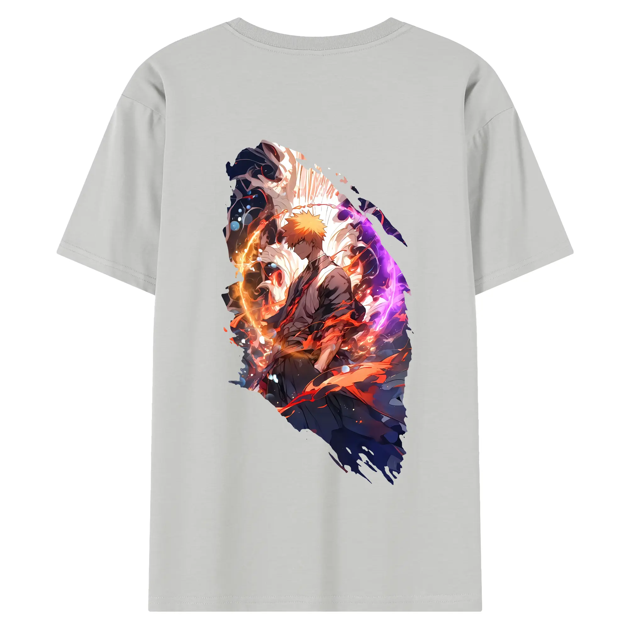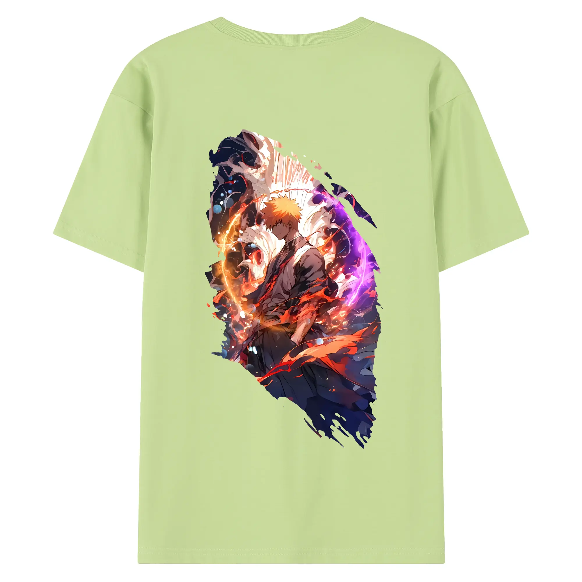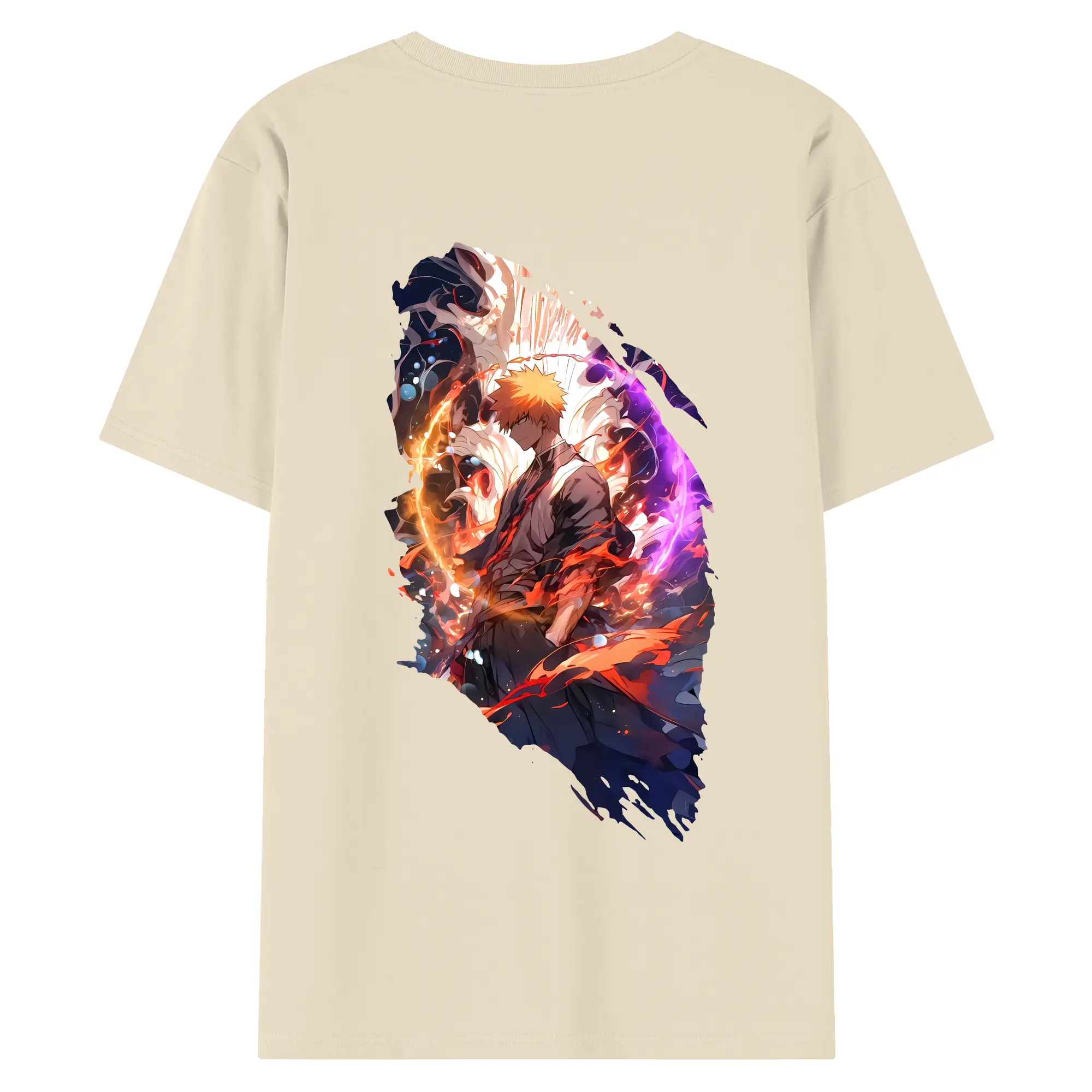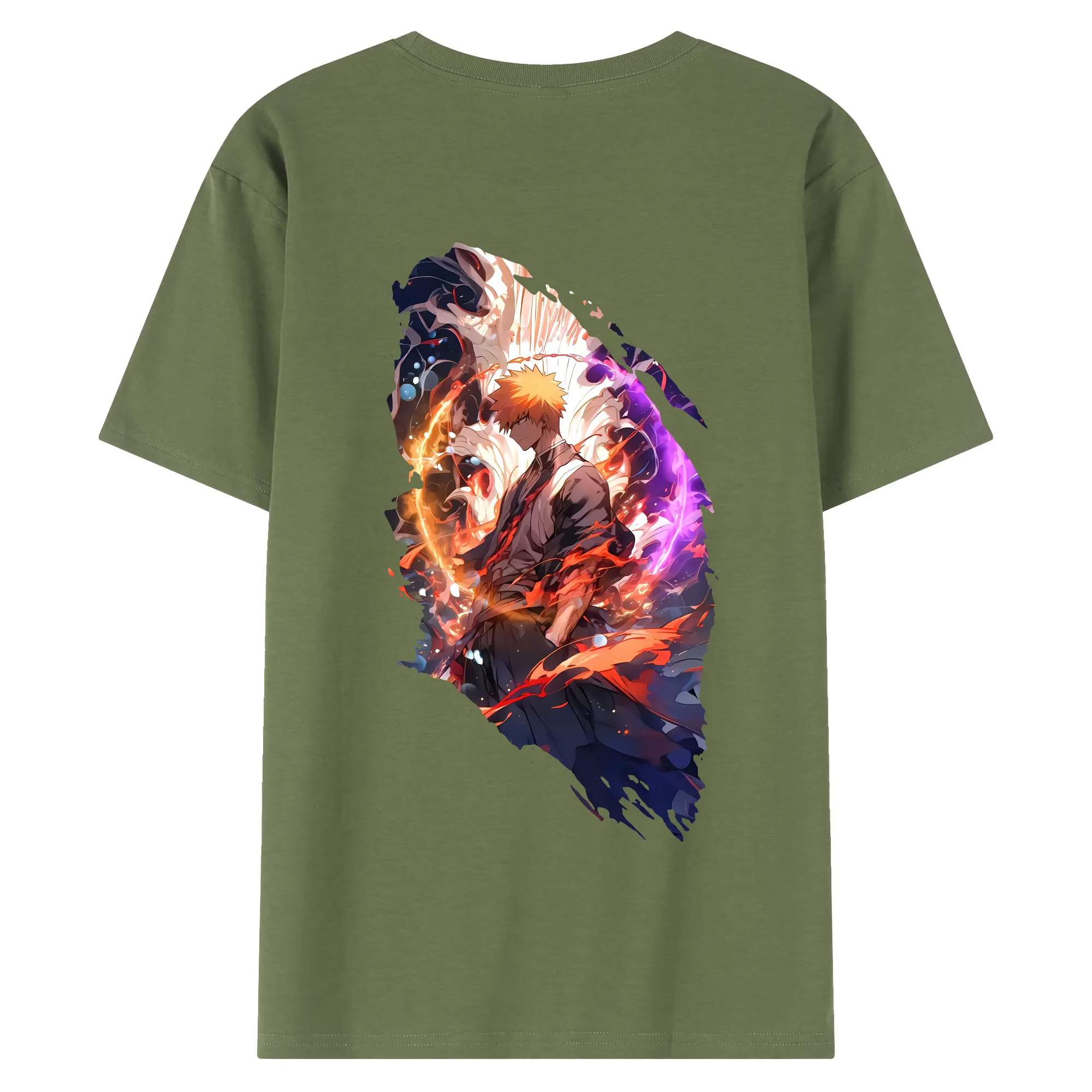 ブリーチ グッズ 黒崎 一護 - 綿100% ヴィンテージ風 半袖Tシャツ ・ 背面プリント ・ 柔らか肌触り ・ 通気性 快適 ・ スポーツ カジュアル 外出用