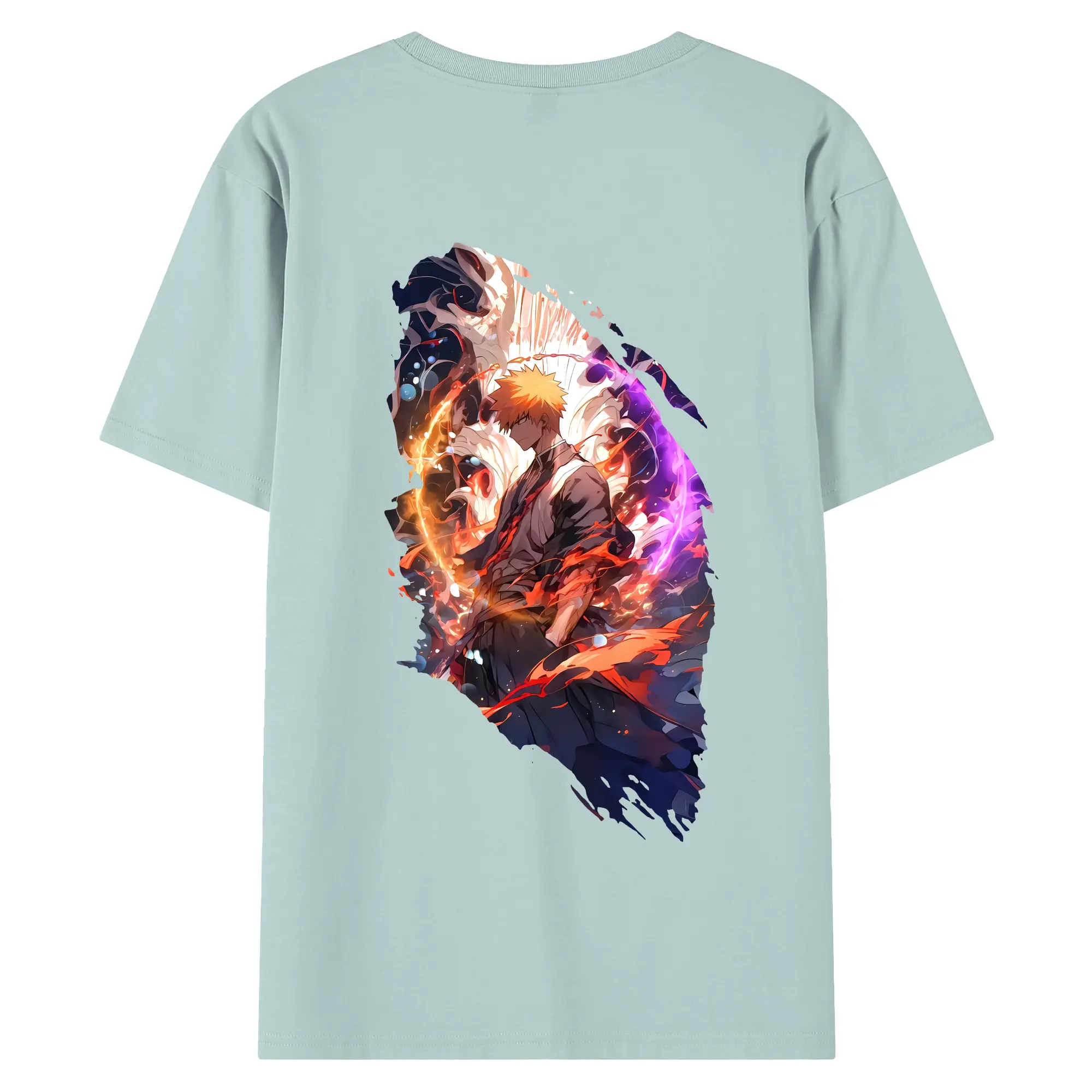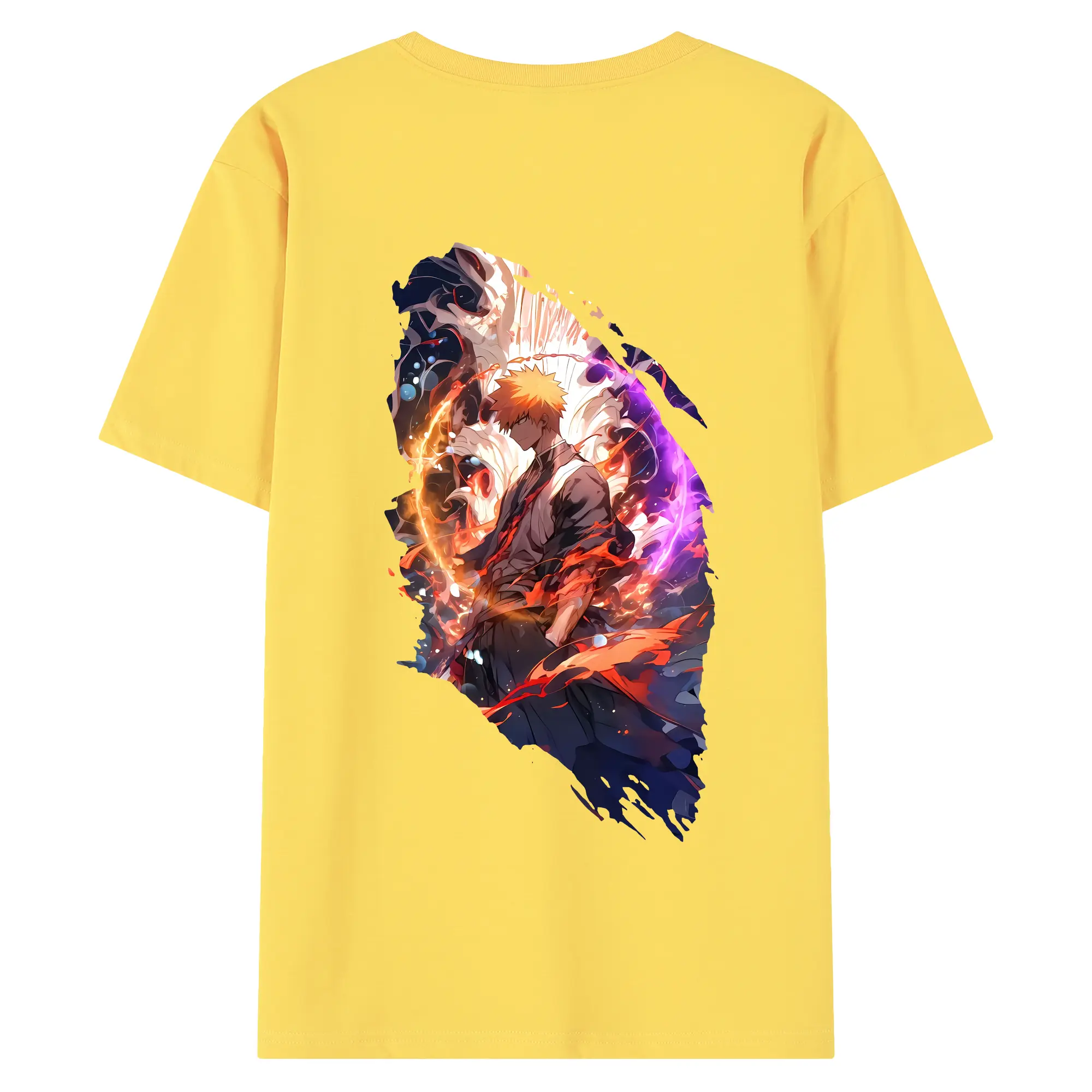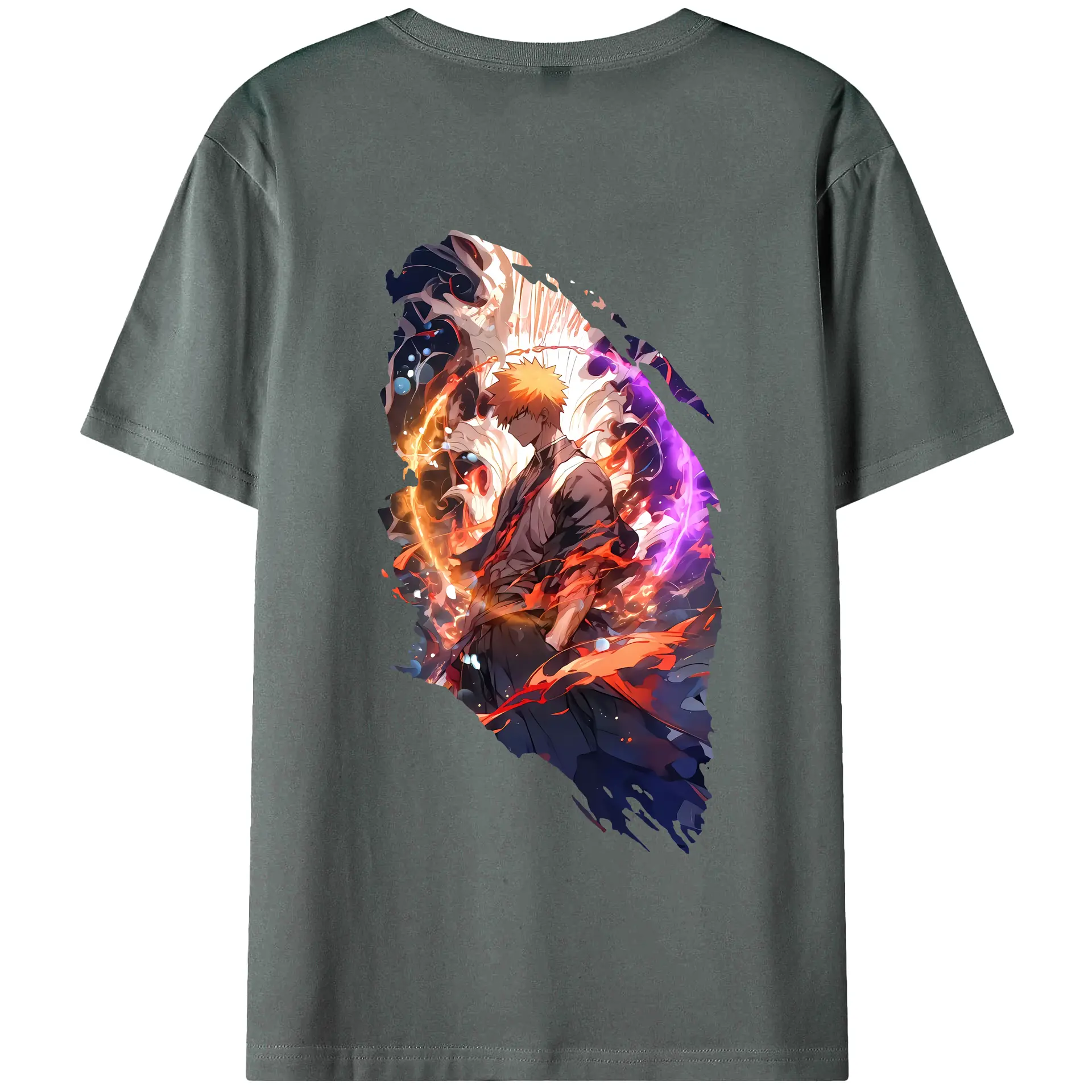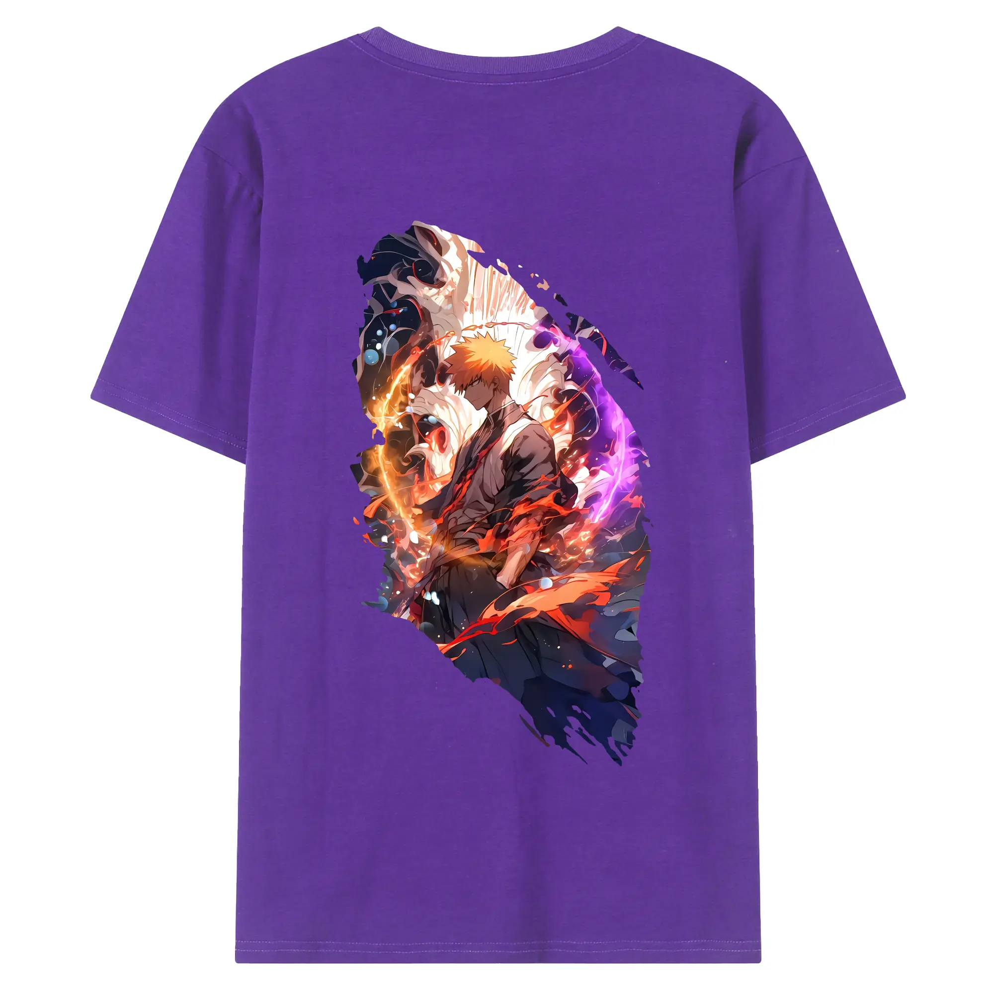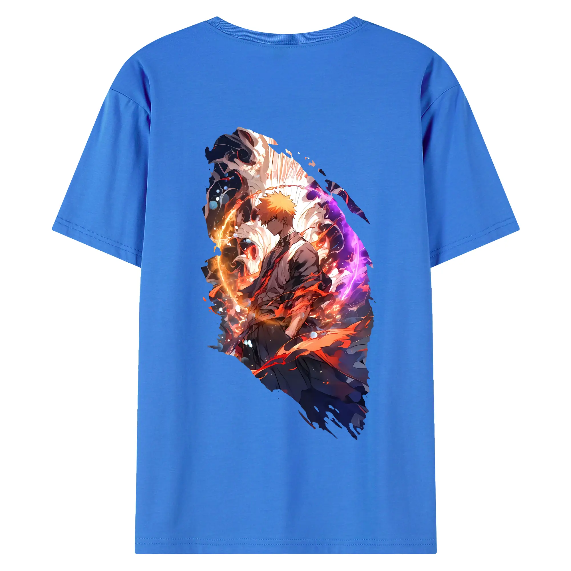 ブリーチ グッズ 黒崎 一護 - 綿100% 半袖Tシャツ ・ フロントプリント ・ 快適 通気性 ・ 日常使い 散歩 スポーツ用