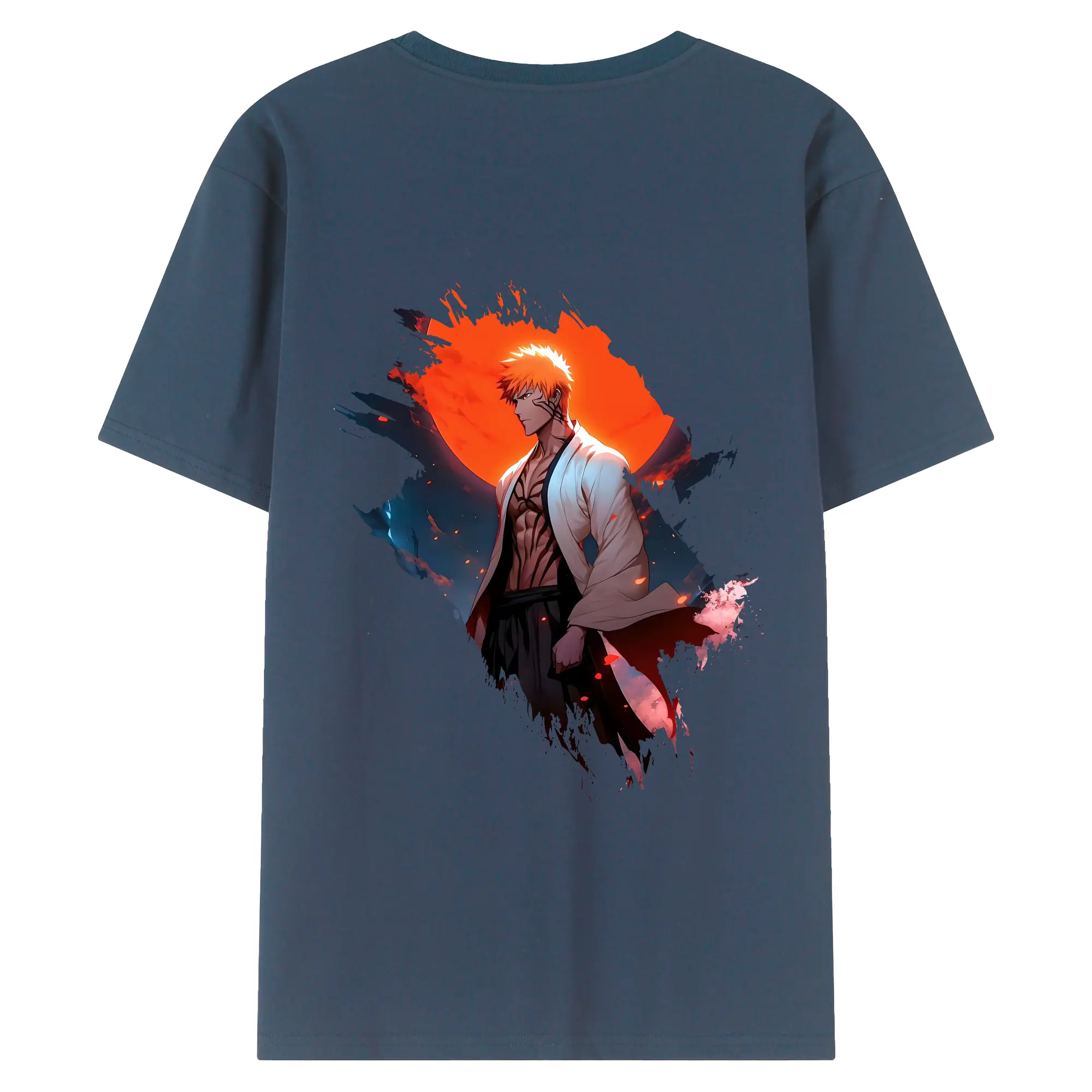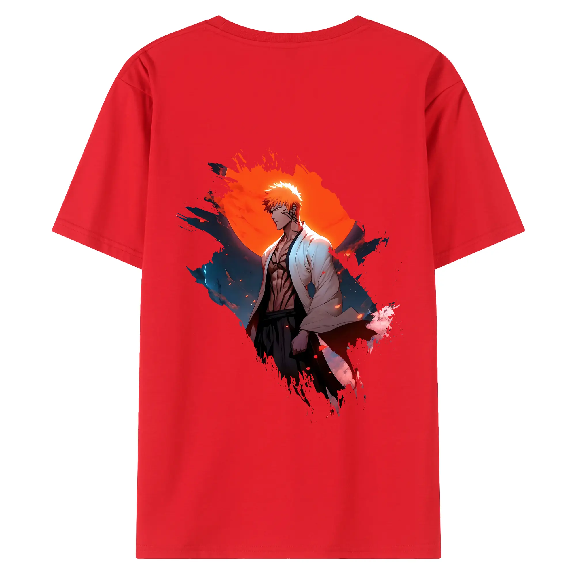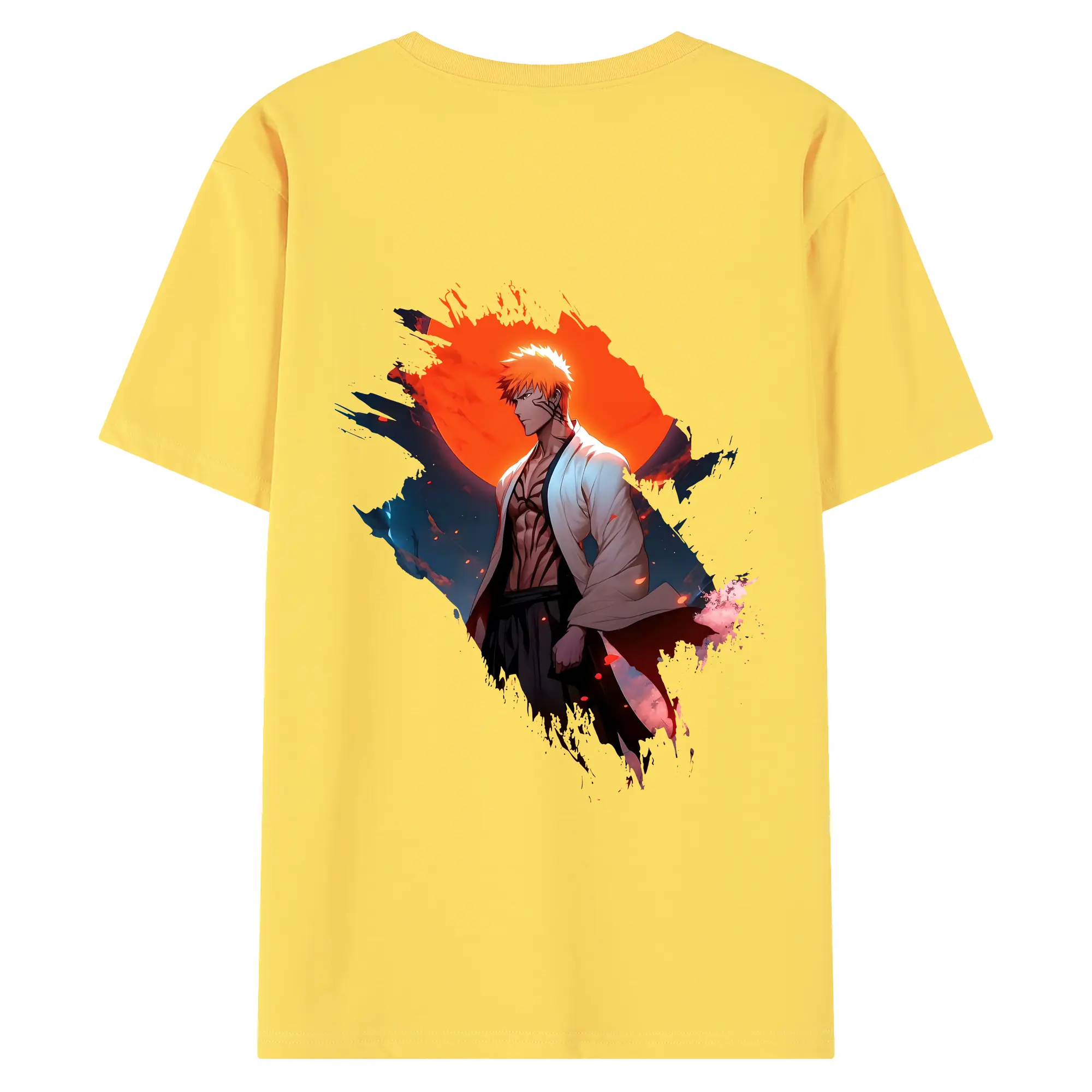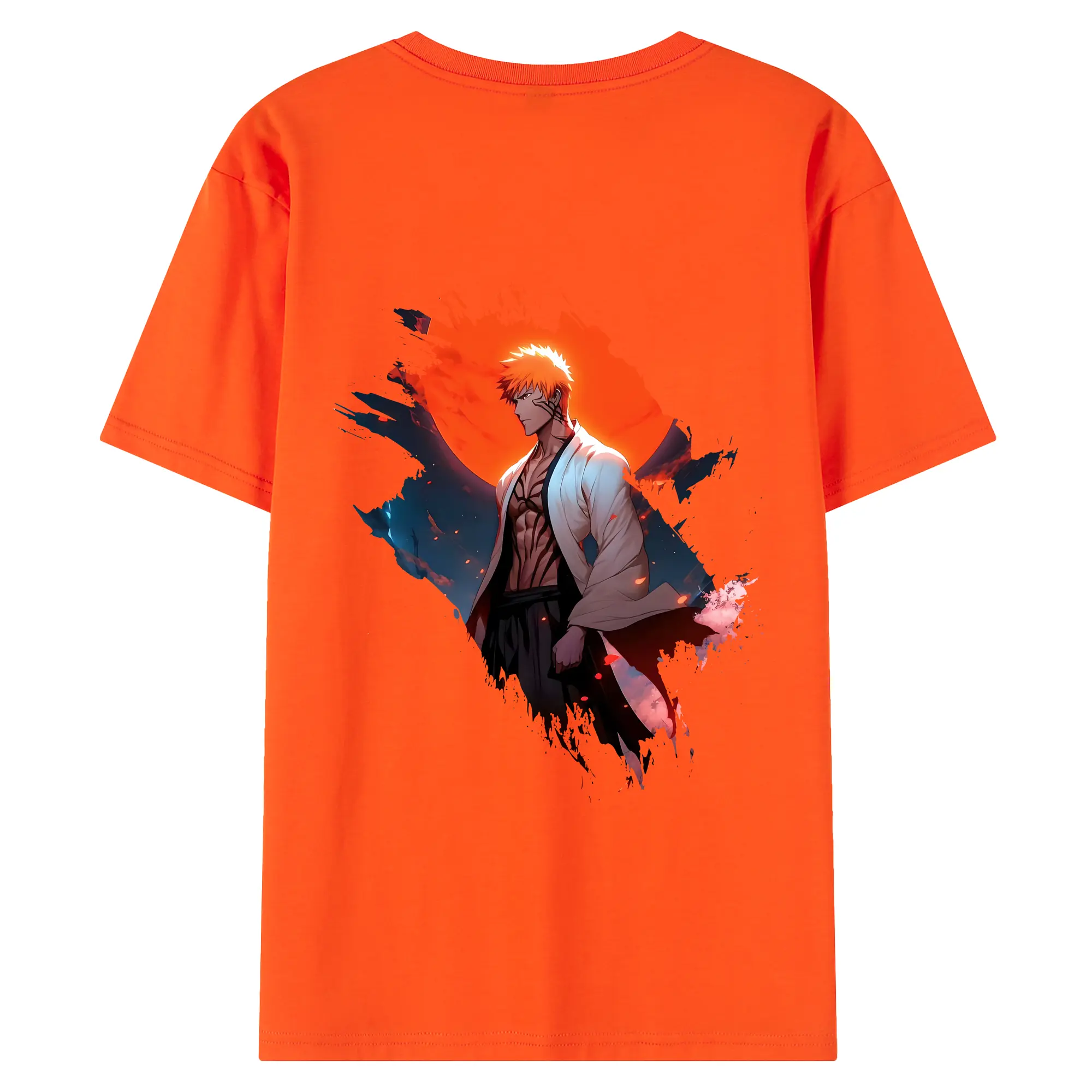 ブリーチ グッズ 黒崎 一護 - 綿100% ヴィンテージ風 半袖Tシャツ ・ 背面プリント ・ 柔らか肌触り ・ 通気性 快適 ・ スポーツ カジュアル 外出用