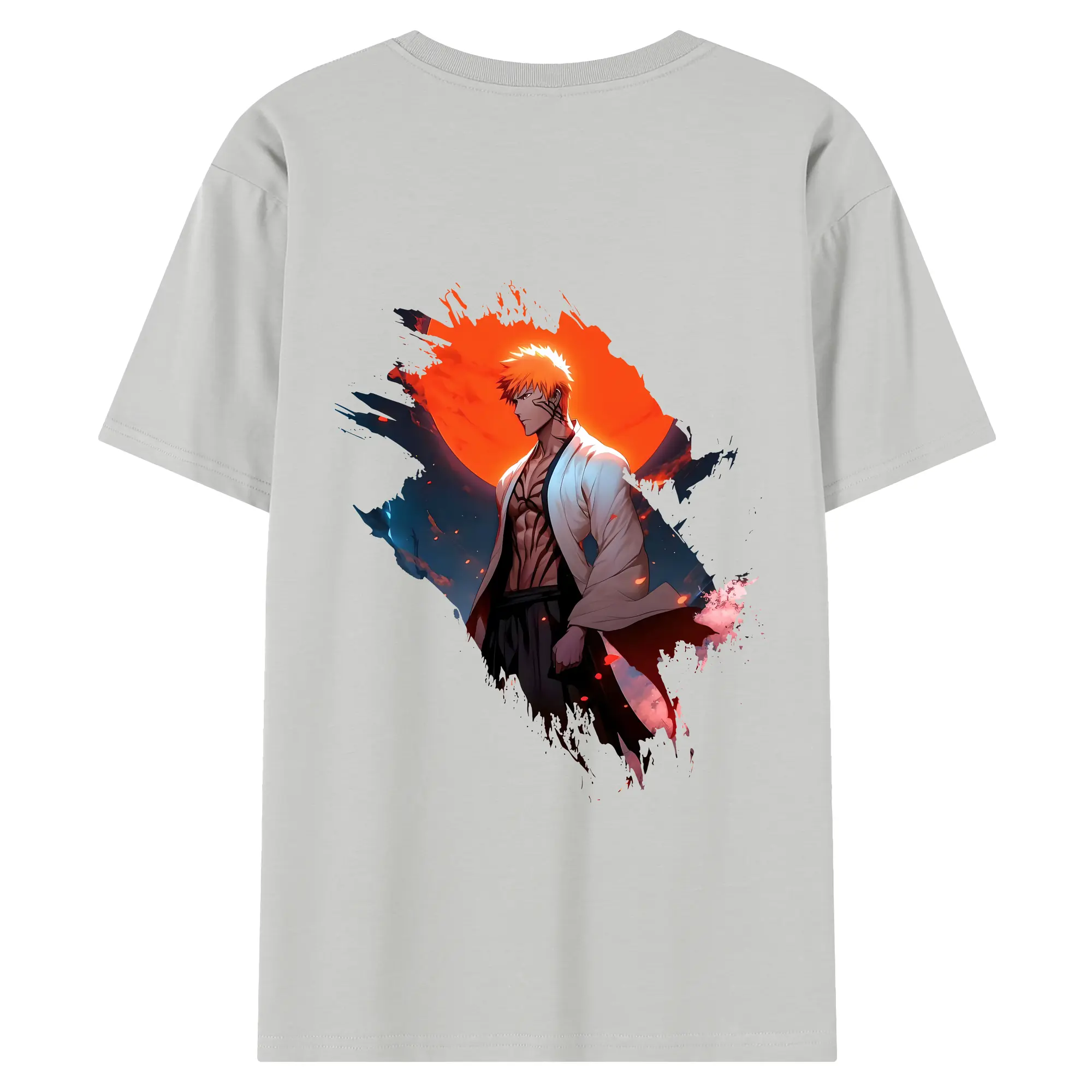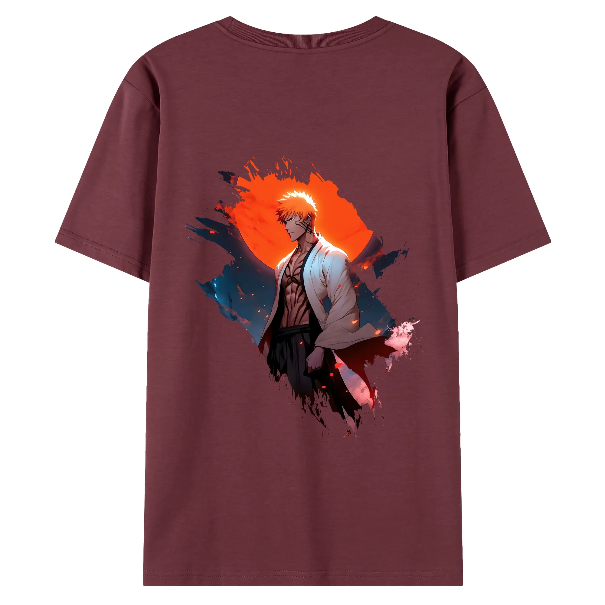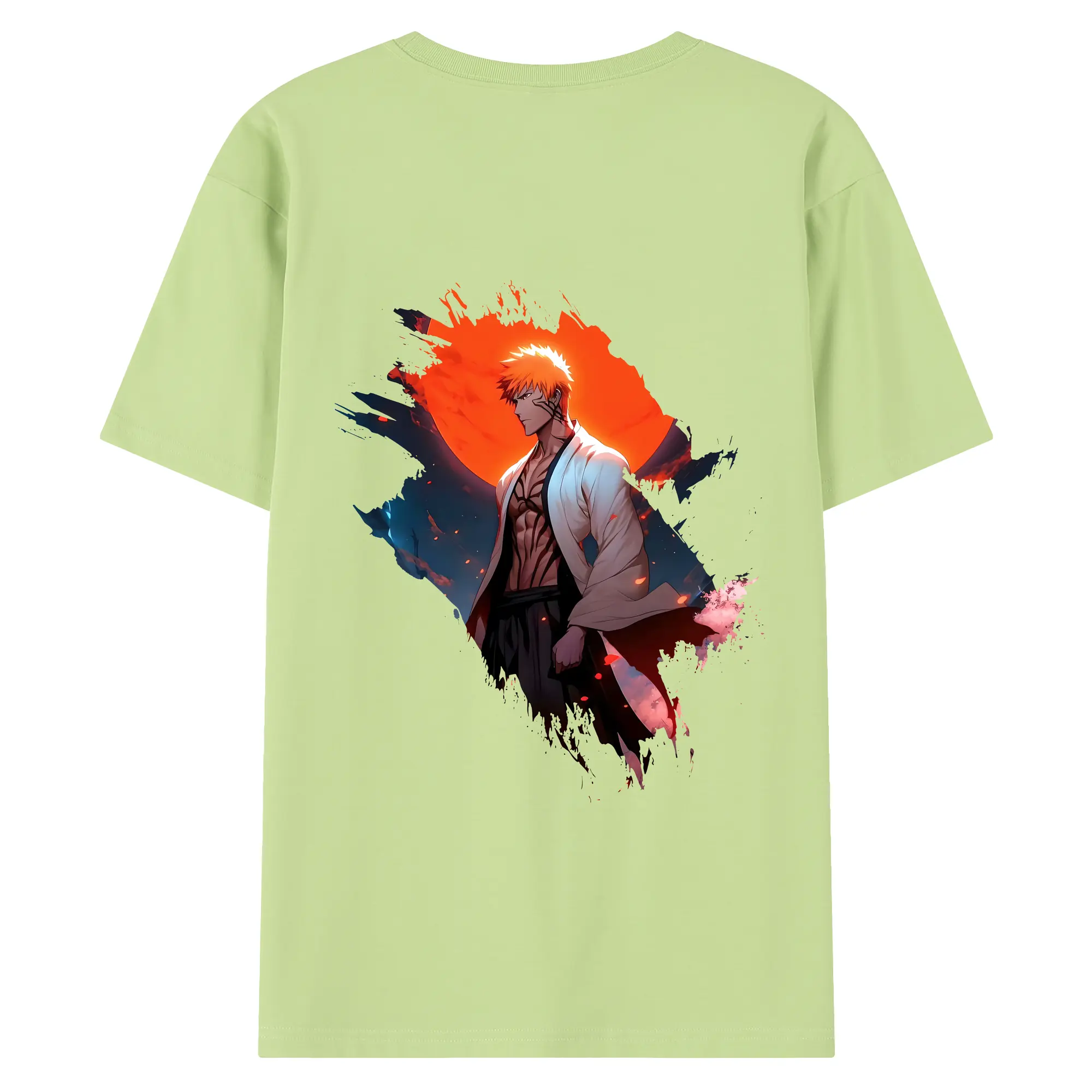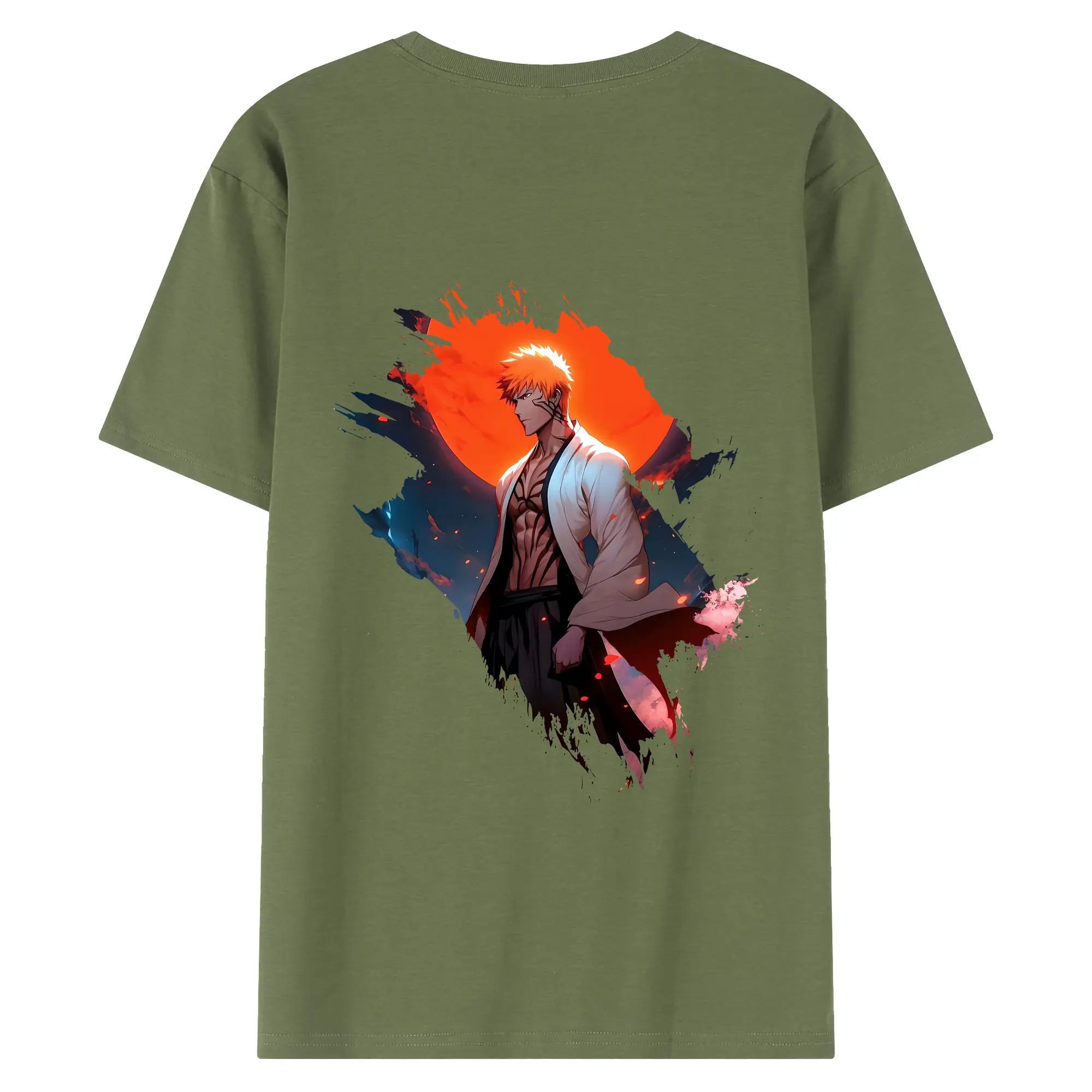 ブリーチ グッズ 黒崎 一護 - 綿100% ヴィンテージ風 半袖Tシャツ ・ 背面プリント ・ 柔らか肌触り ・ 通気性 快適 ・ スポーツ カジュアル 外出用