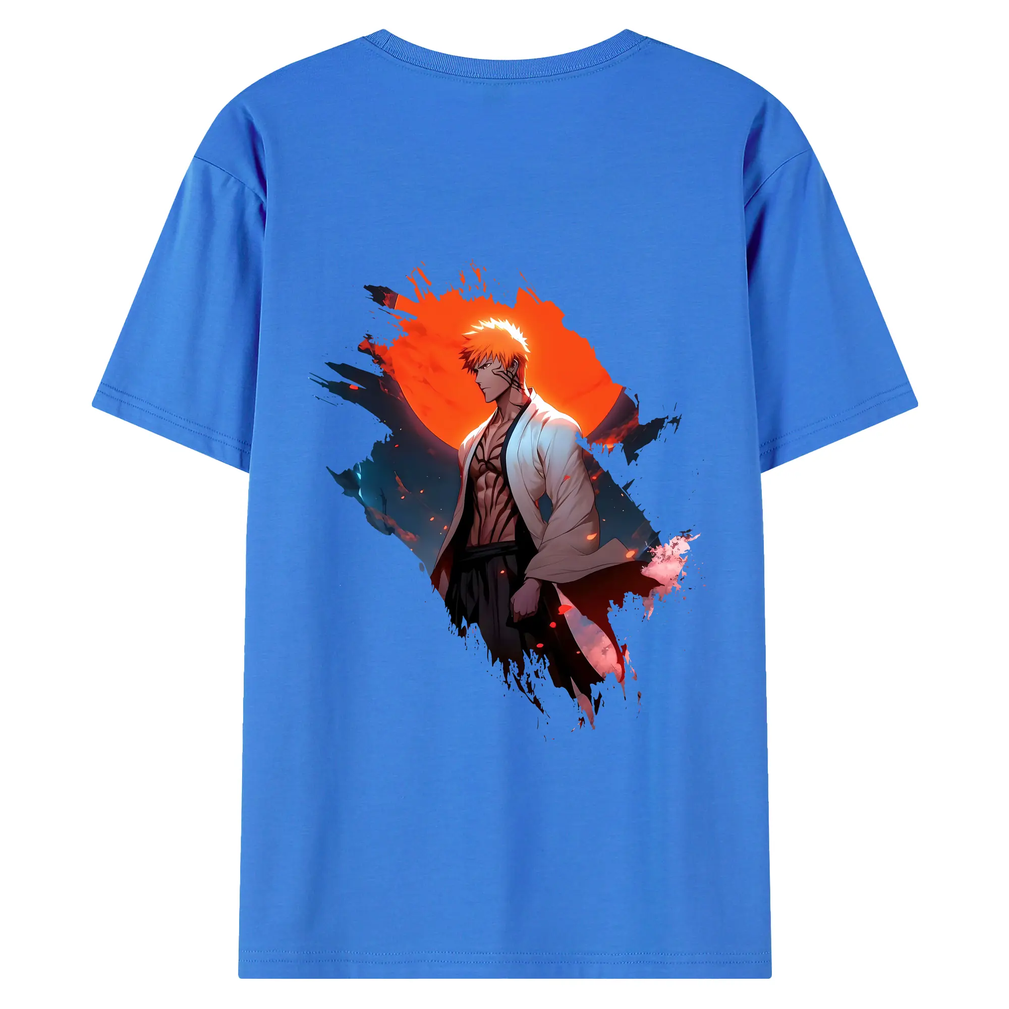 ブリーチ グッズ 黒崎 一護 - 綿100% 半袖Tシャツ ・ フロントプリント ・ 快適 通気性 ・ 日常使い 散歩 スポーツ用