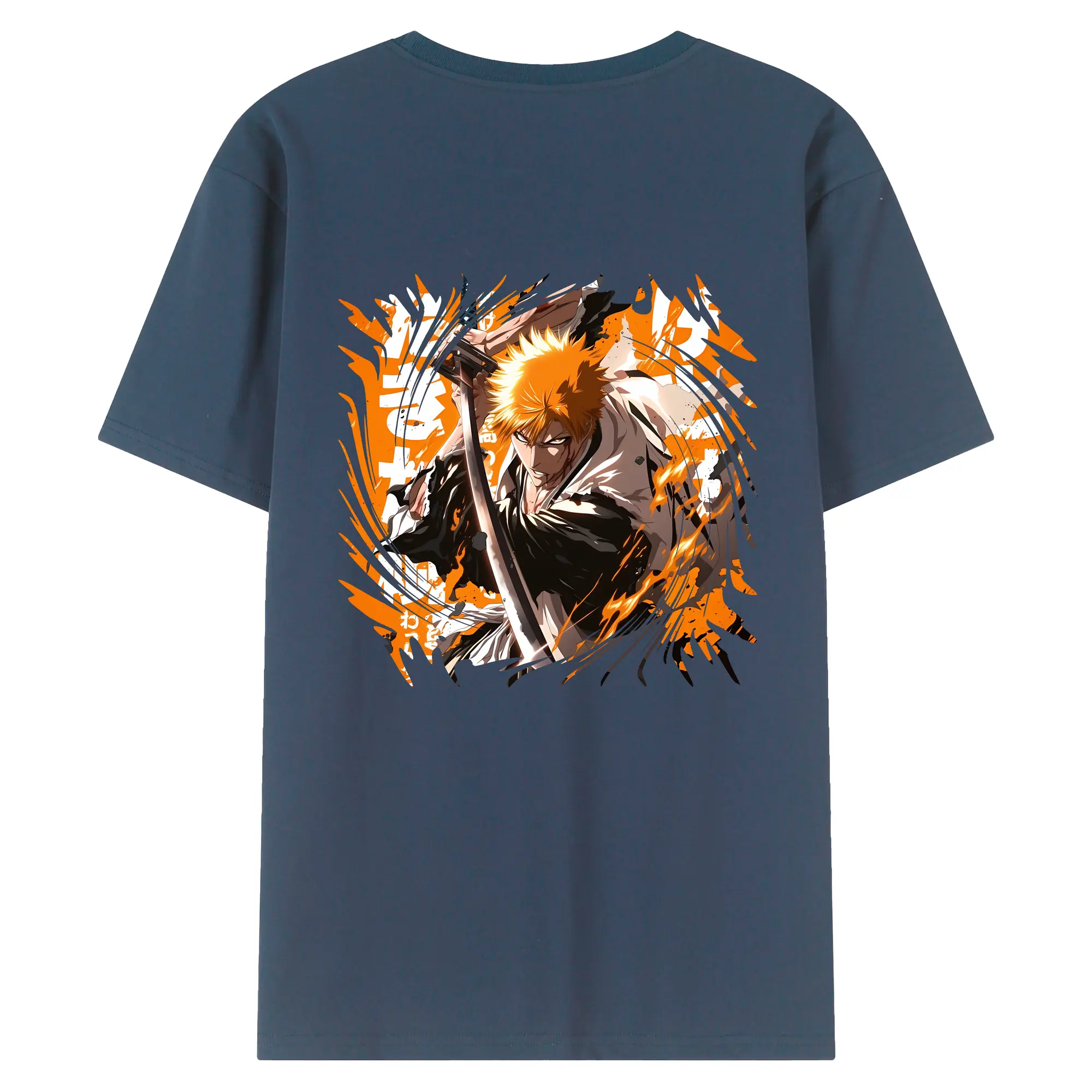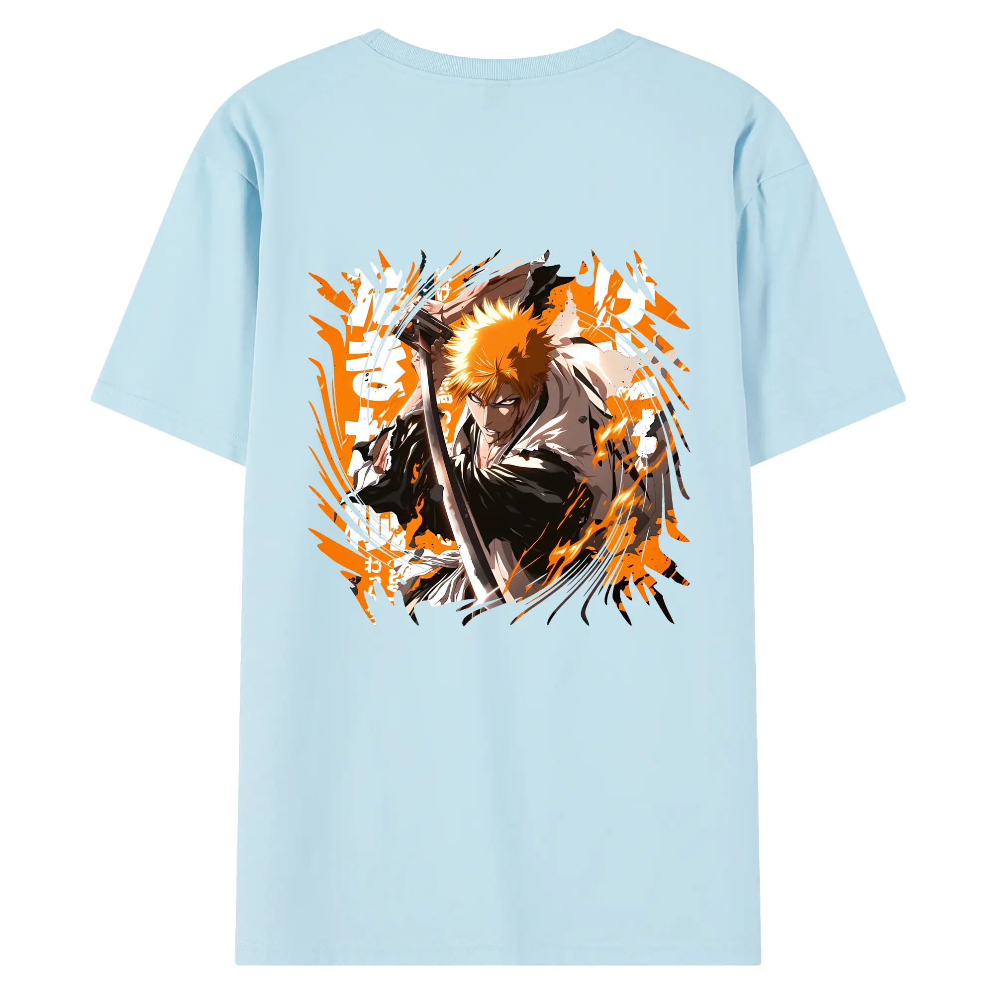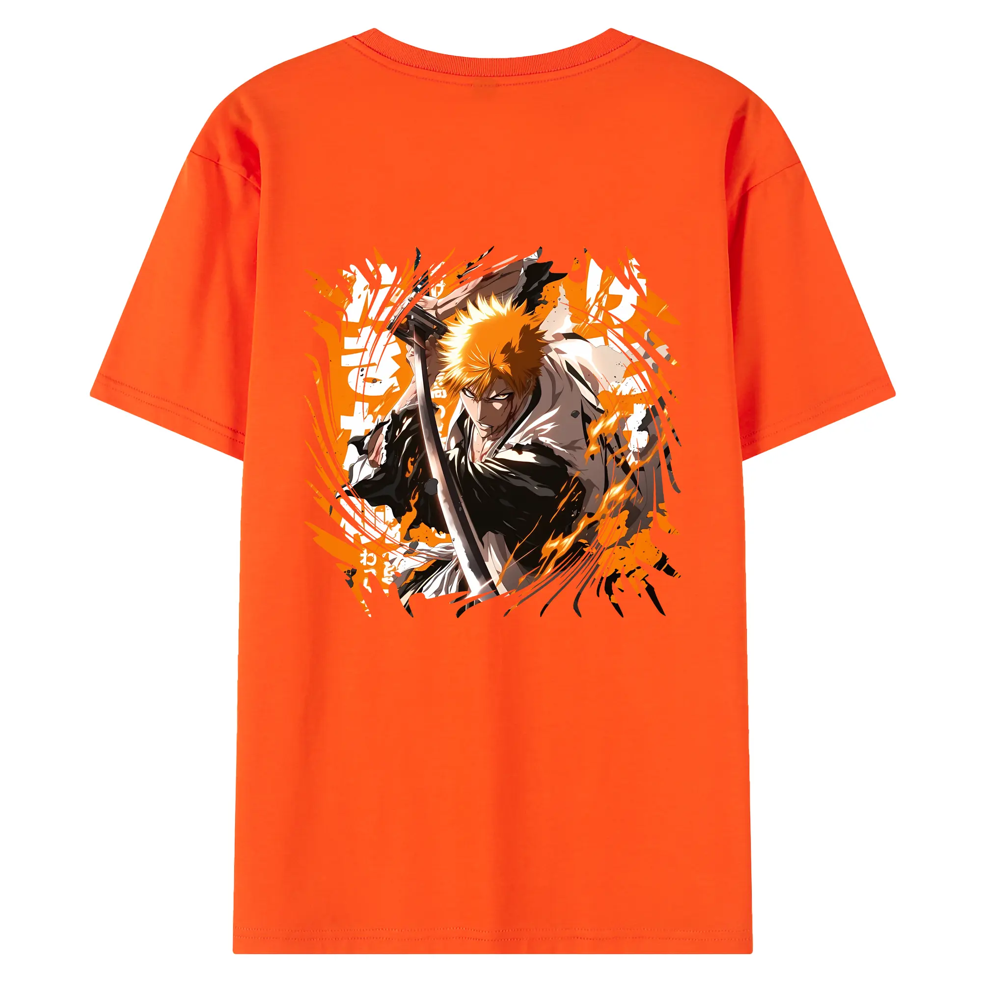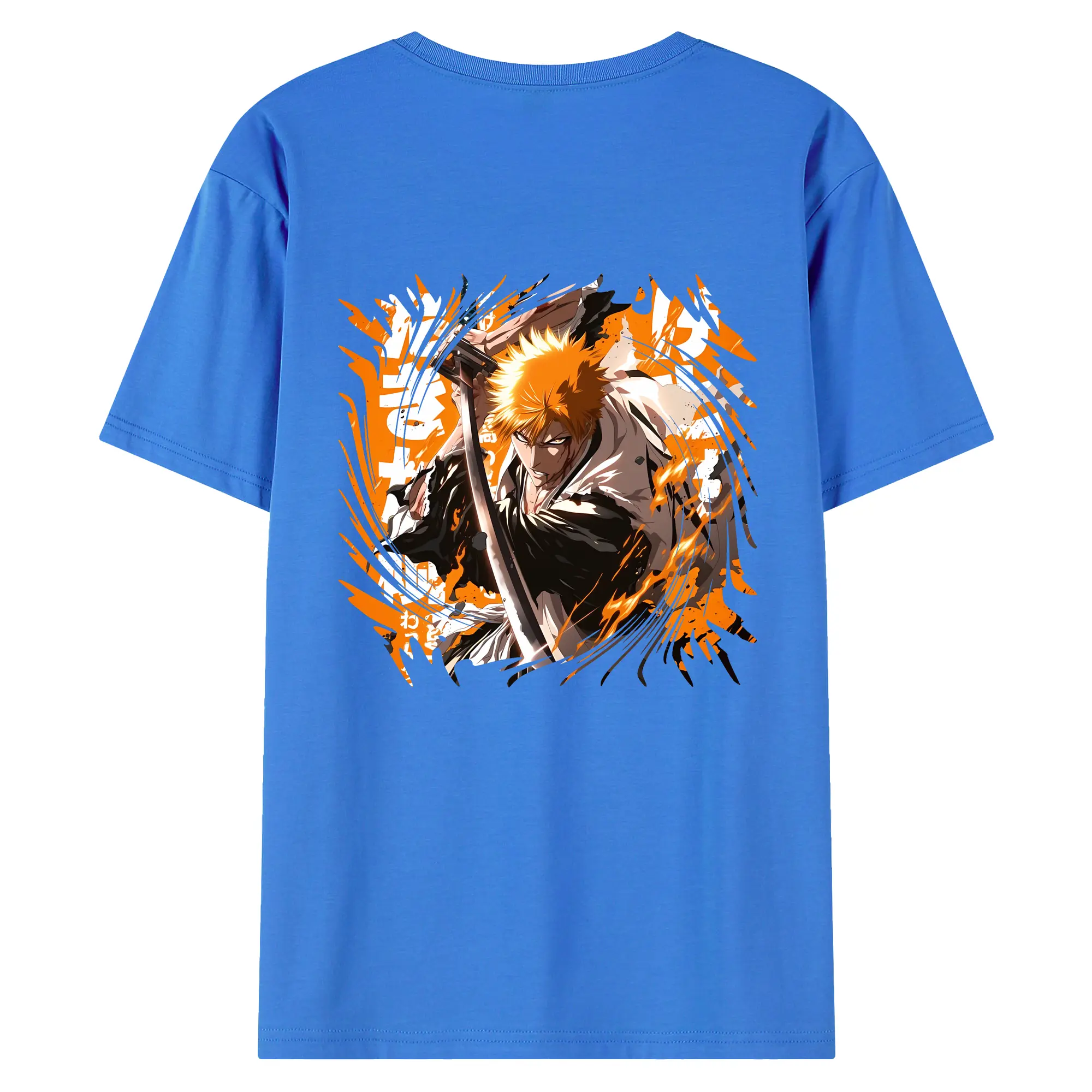 ブリーチ グッズ 黒崎 一護 - 綿100% 半袖Tシャツ ・ フロントプリント ・ 快適 通気性 ・ 日常使い 散歩 スポーツ用
