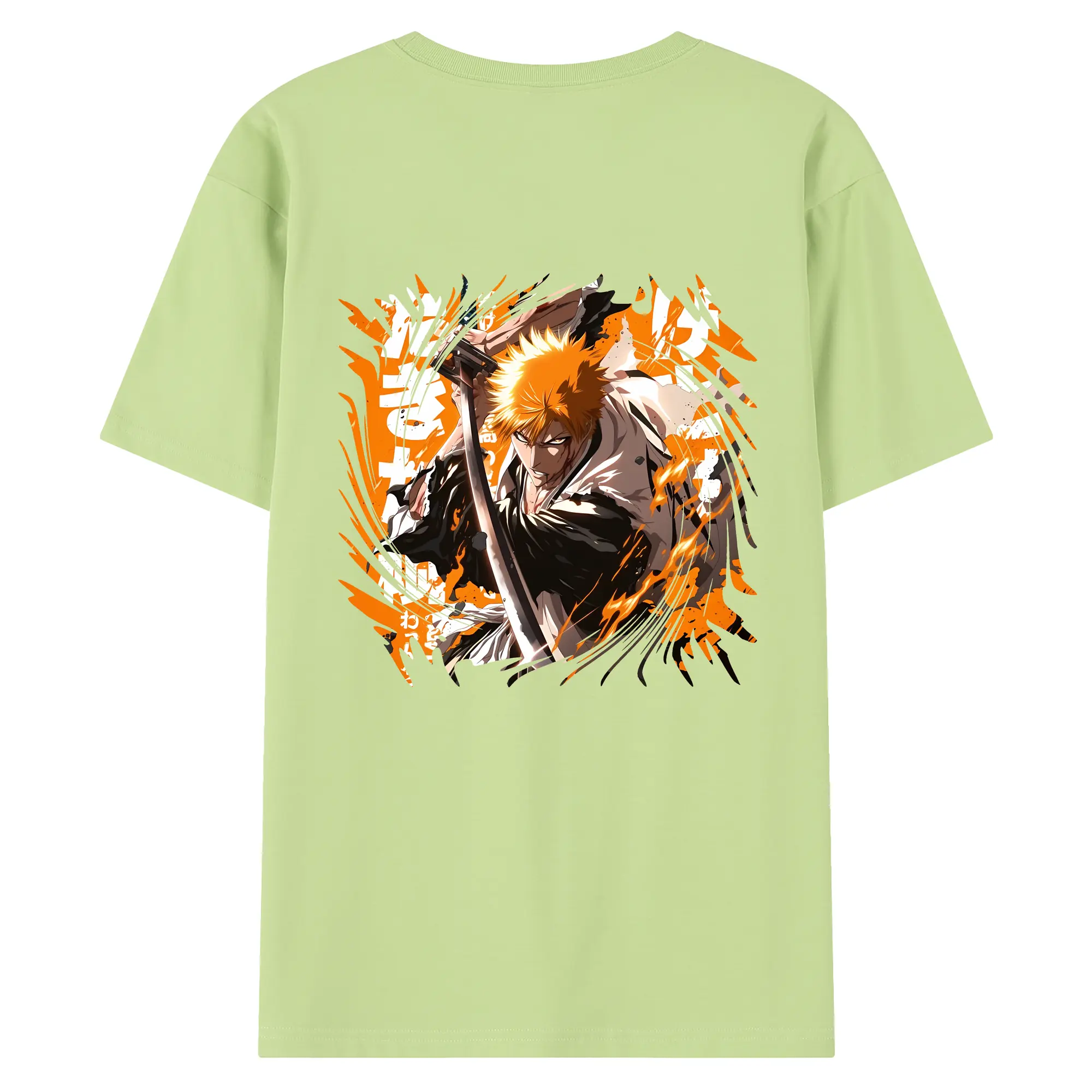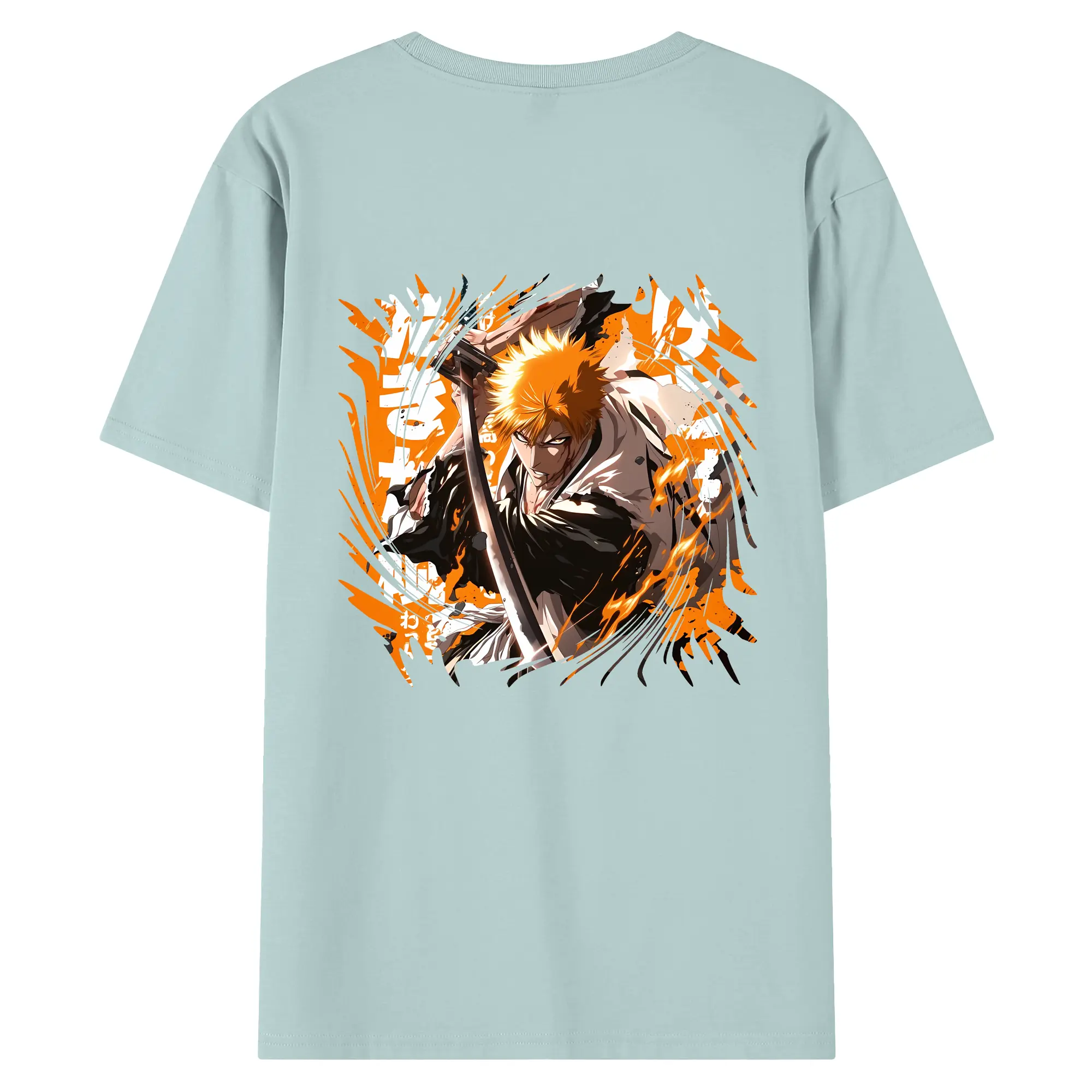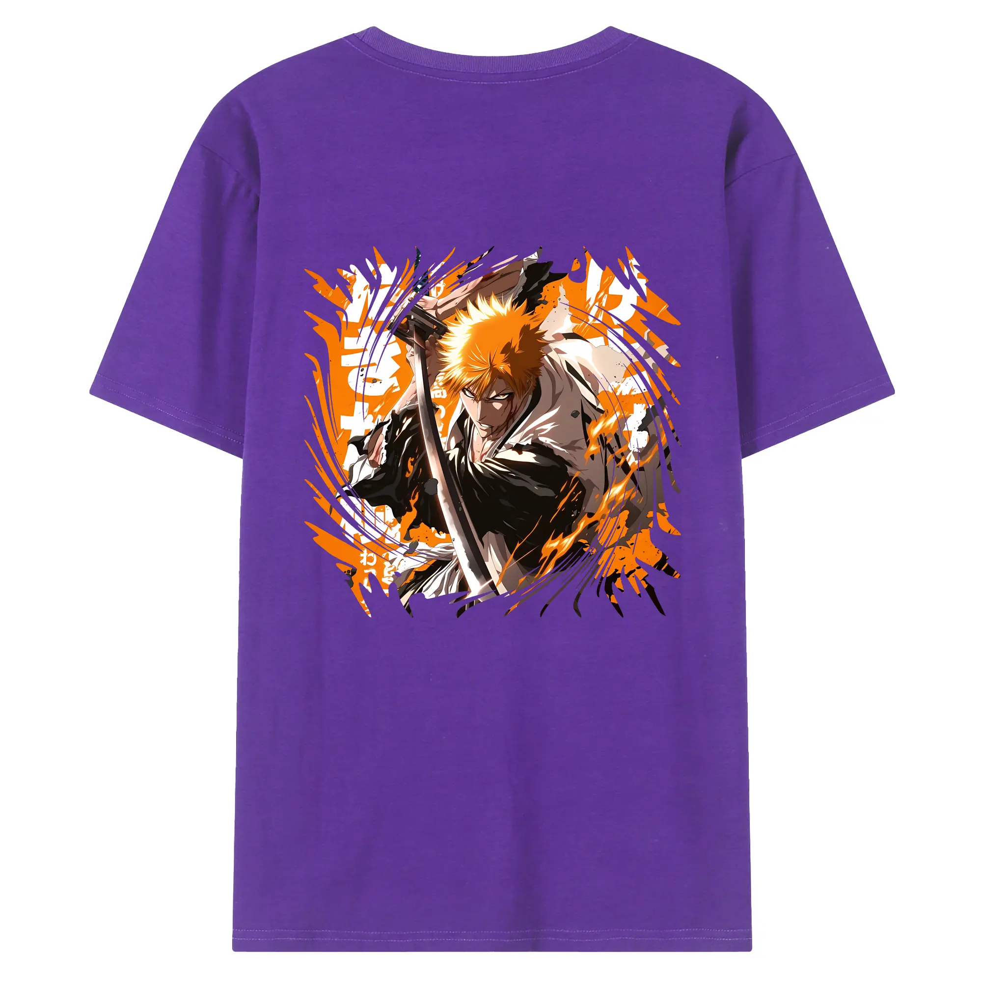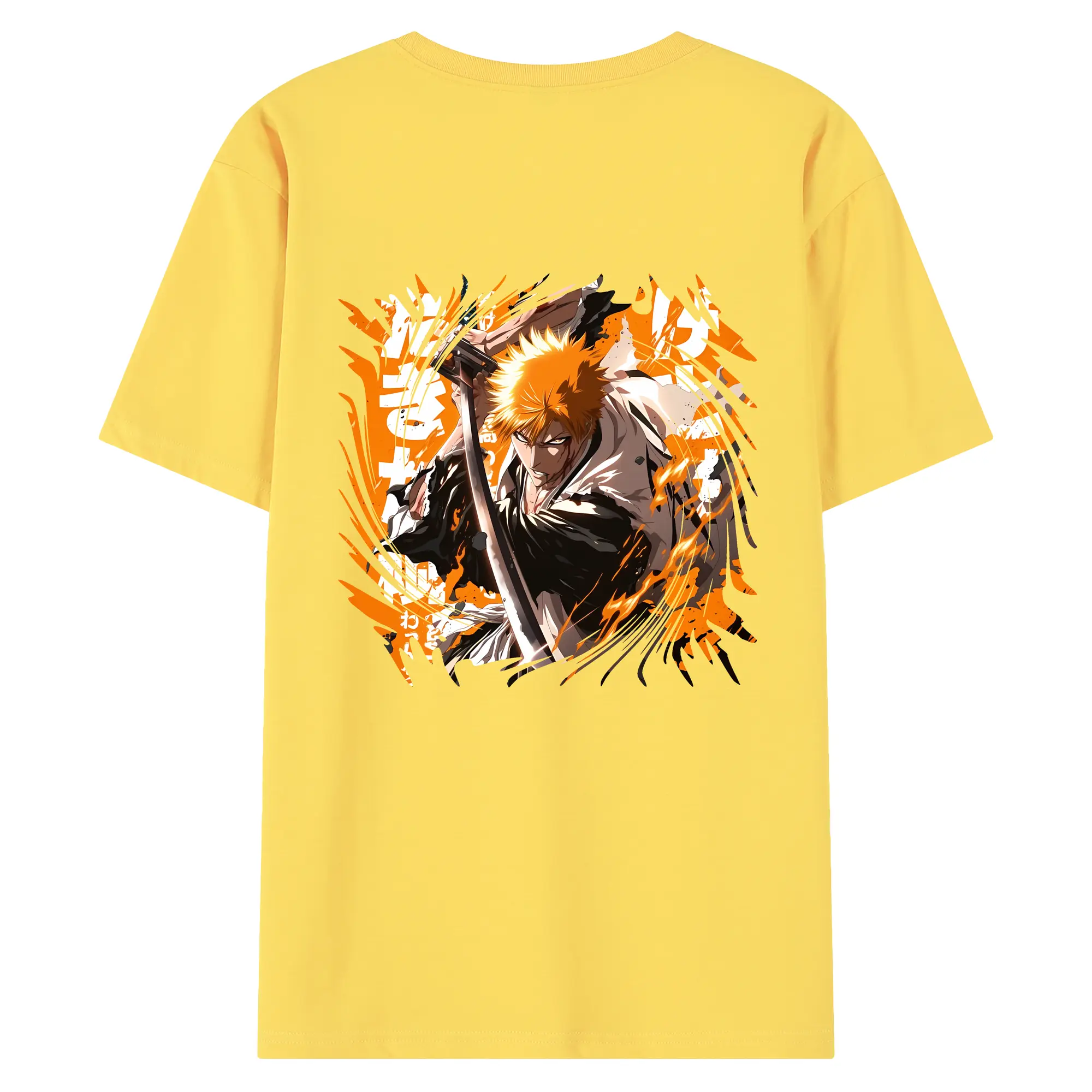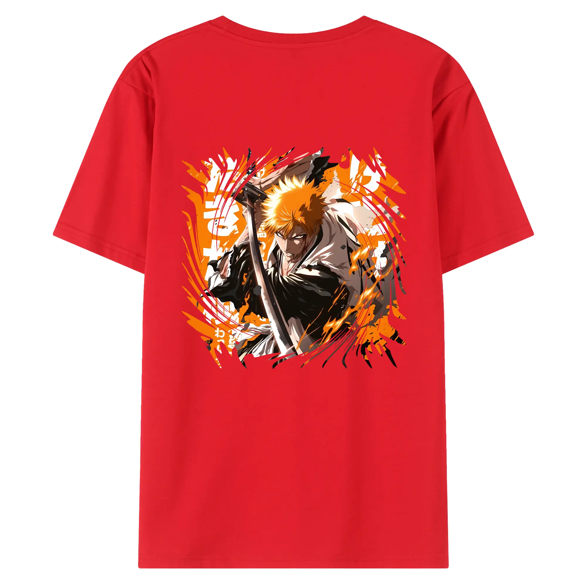 ブリーチ グッズ 黒崎 一護 - 綿100% 半袖Tシャツ ・ フロントプリント ・ 快適 通気性 ・ 日常使い 散歩 スポーツ用
