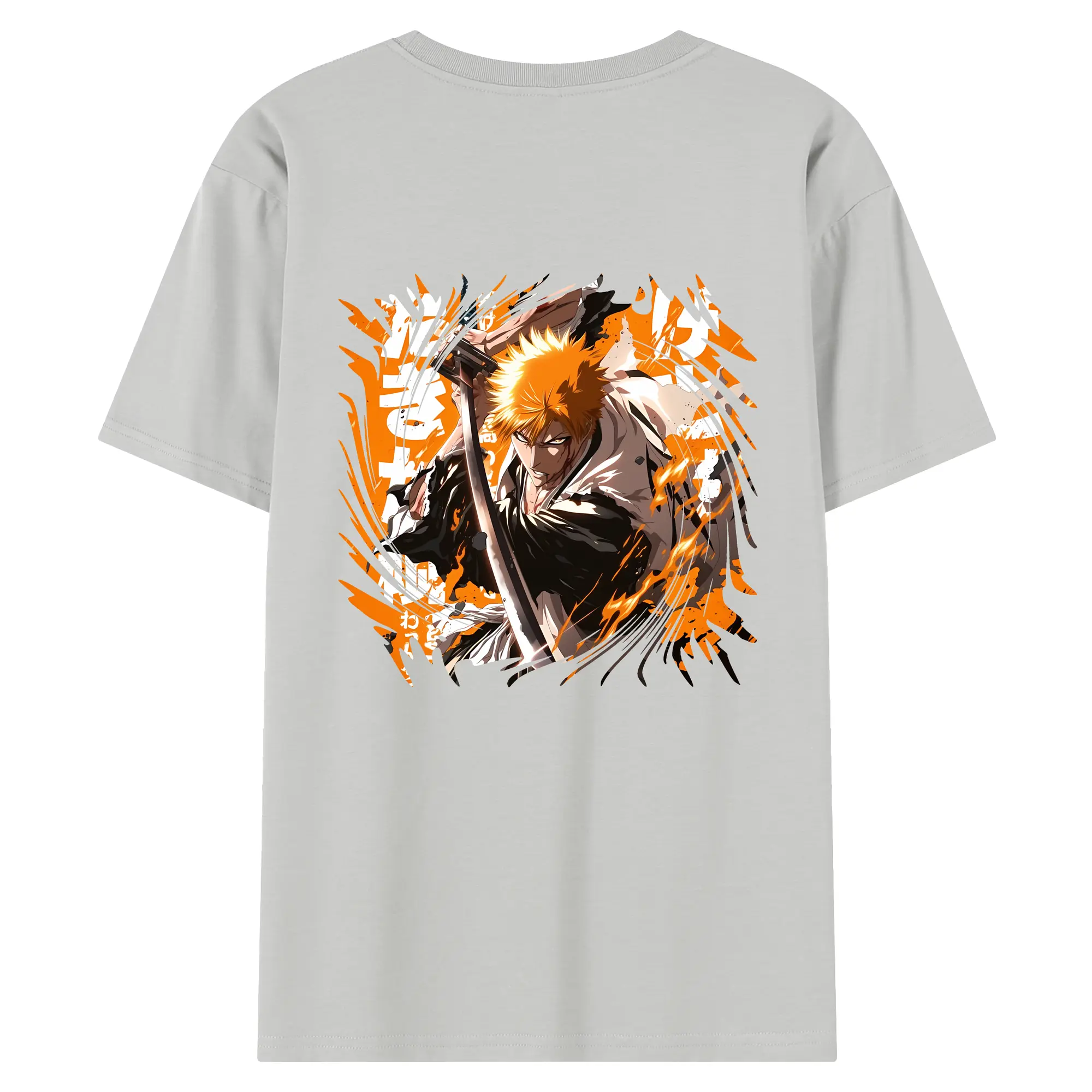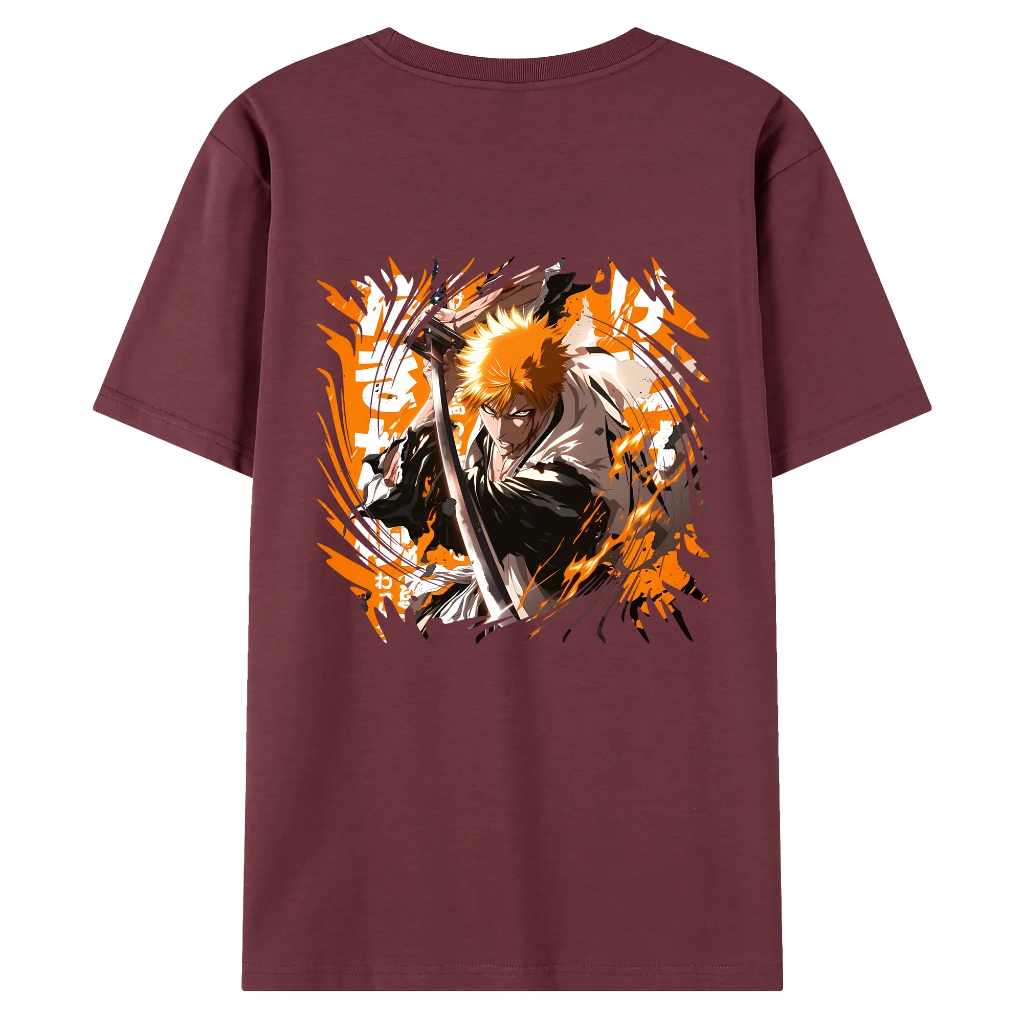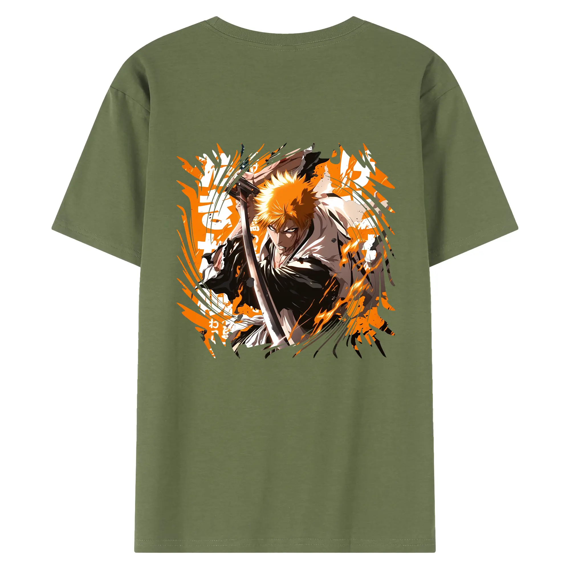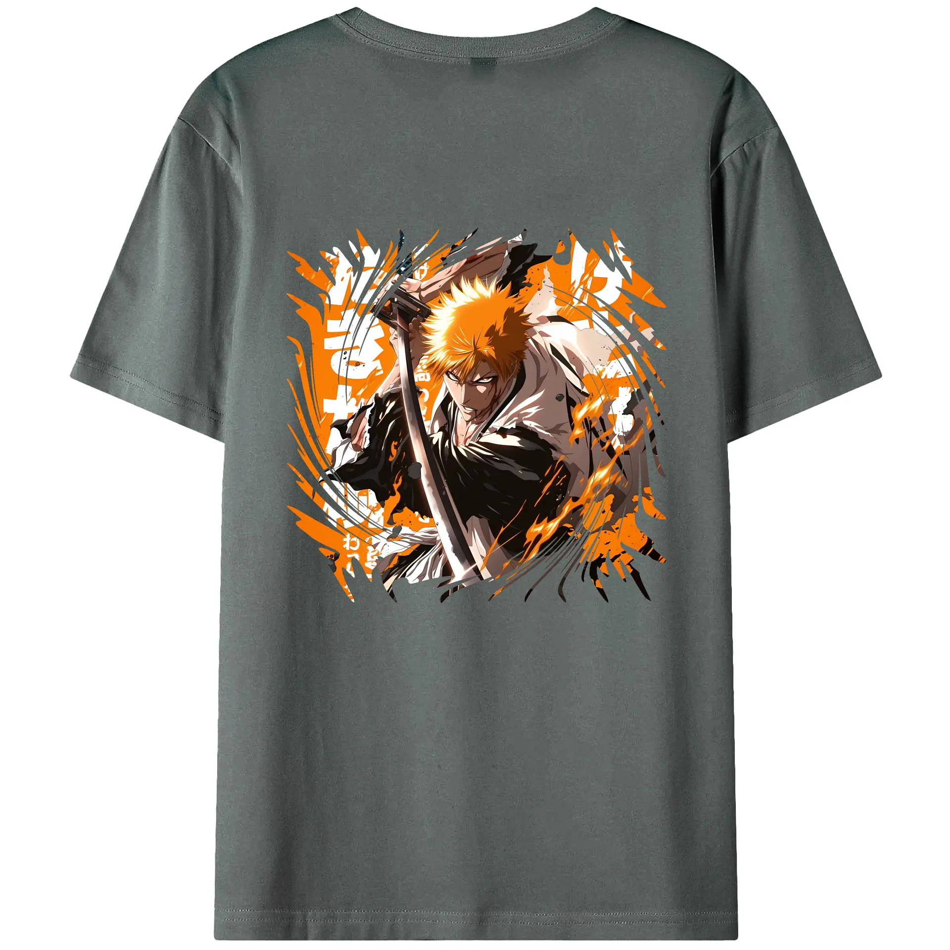 ブリーチ グッズ 黒崎 一護 - 綿100% 半袖Tシャツ ・ フロントプリント ・ 快適 通気性 ・ 日常使い 散歩 スポーツ用