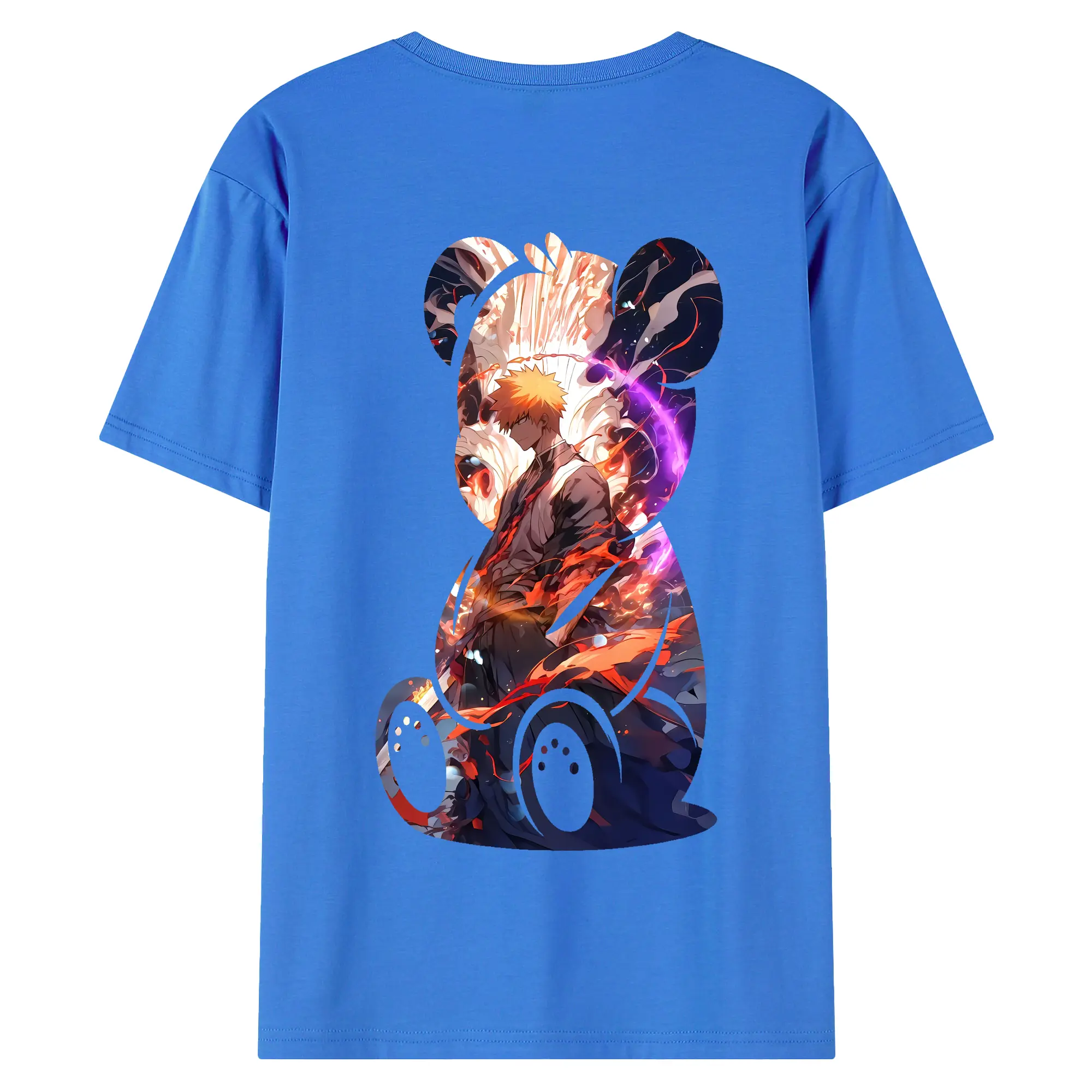 ブリーチ グッズ 黒崎 一護 - 綿100% 半袖Tシャツ ・ バックプリント ・ 快適 通気性 ・ 日常使い 散歩 スポーツ用