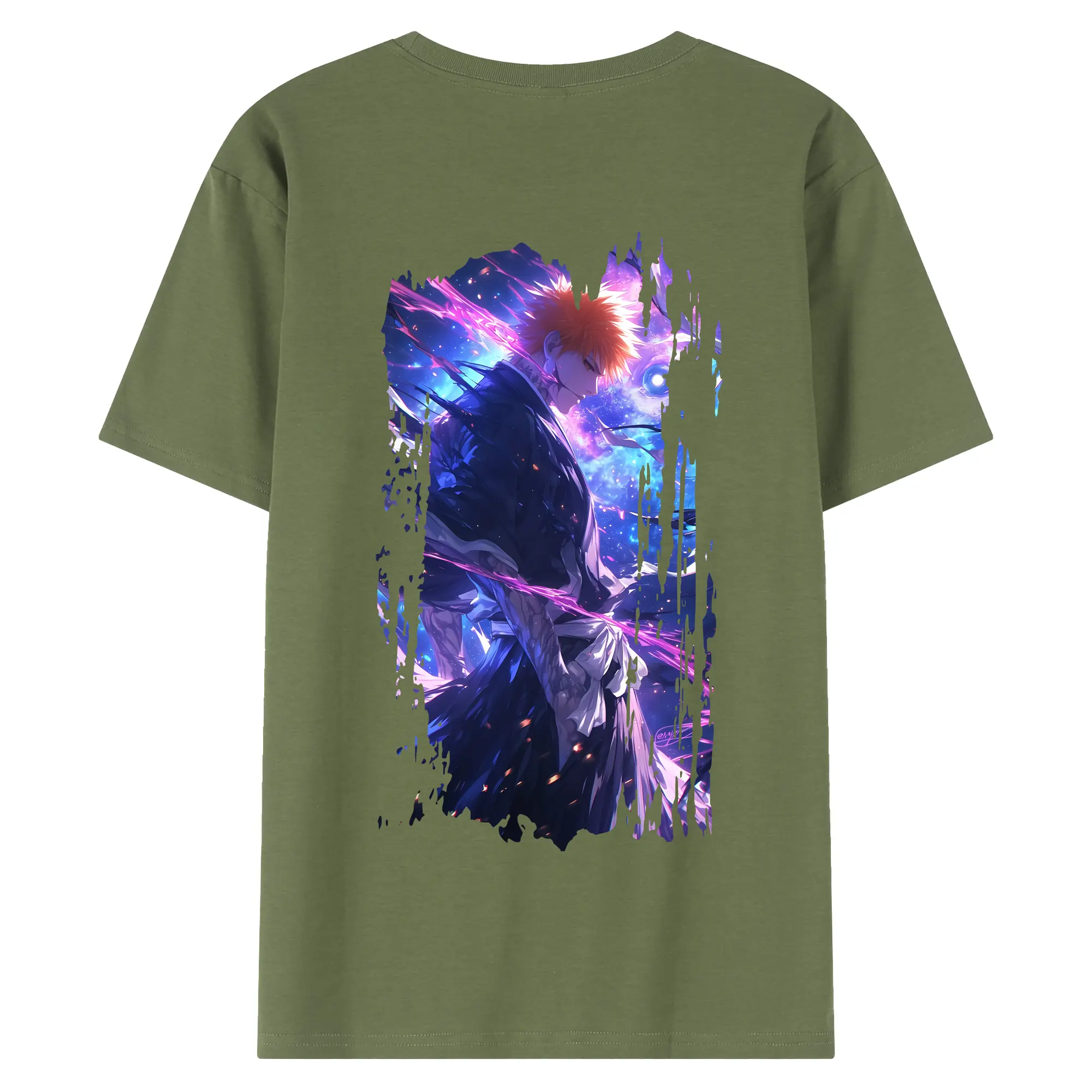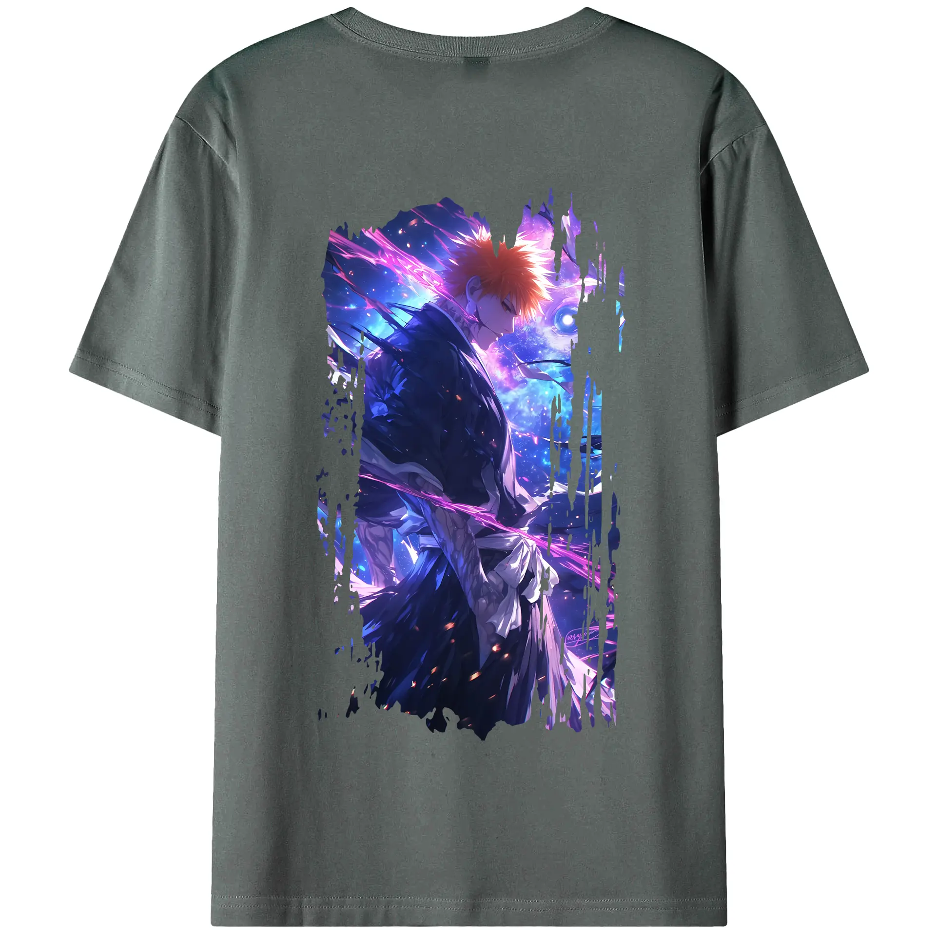 ブリーチ グッズ 黒崎 一護 - 綿100% 半袖Tシャツ ・ フロントプリント ・ 快適 通気性 ・ 日常使い 散歩 スポーツ用