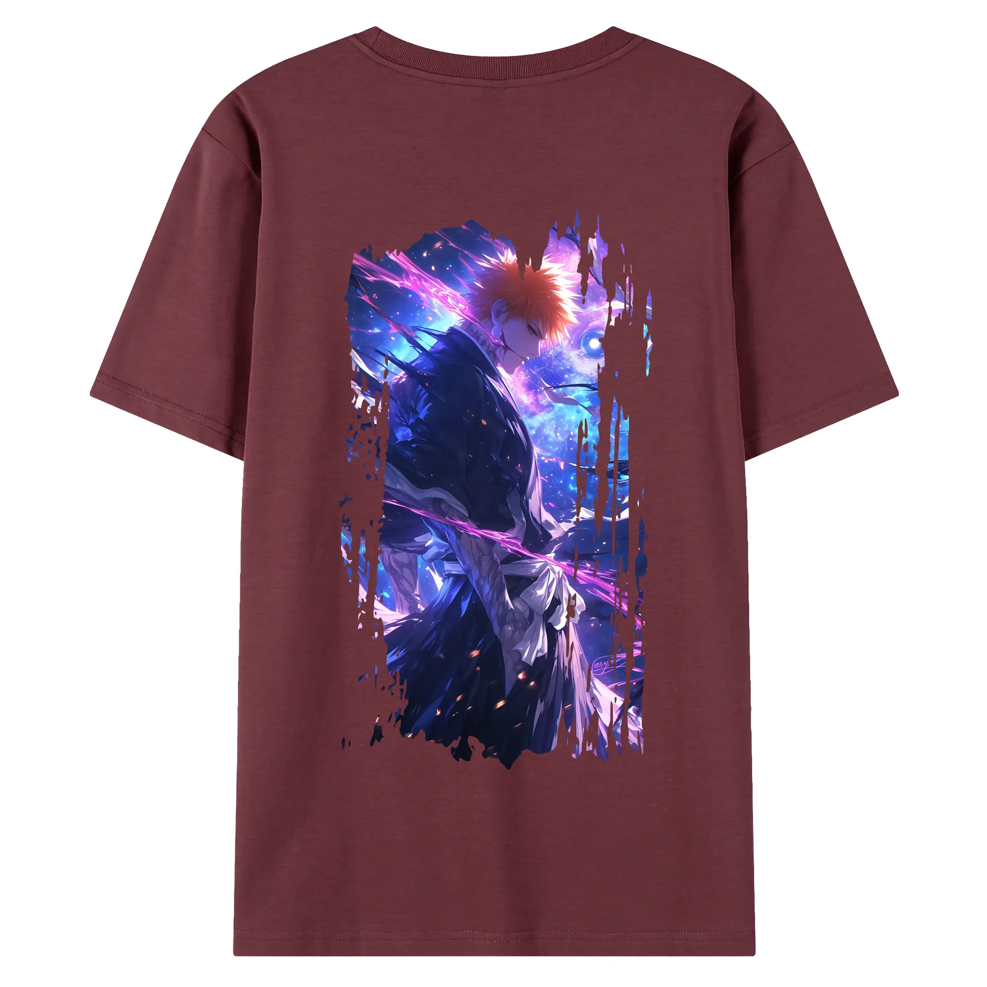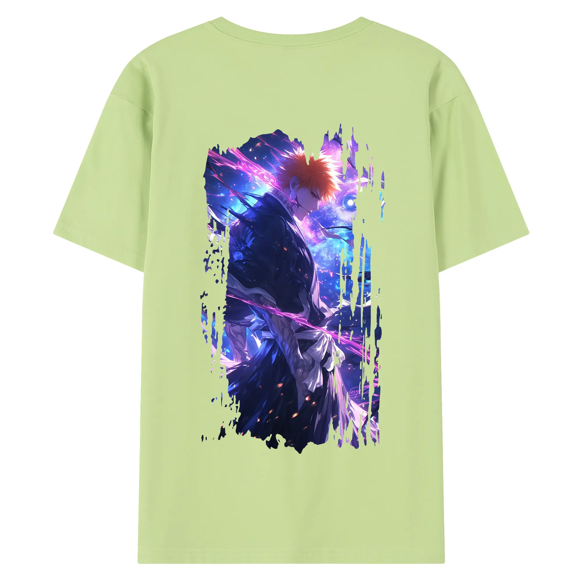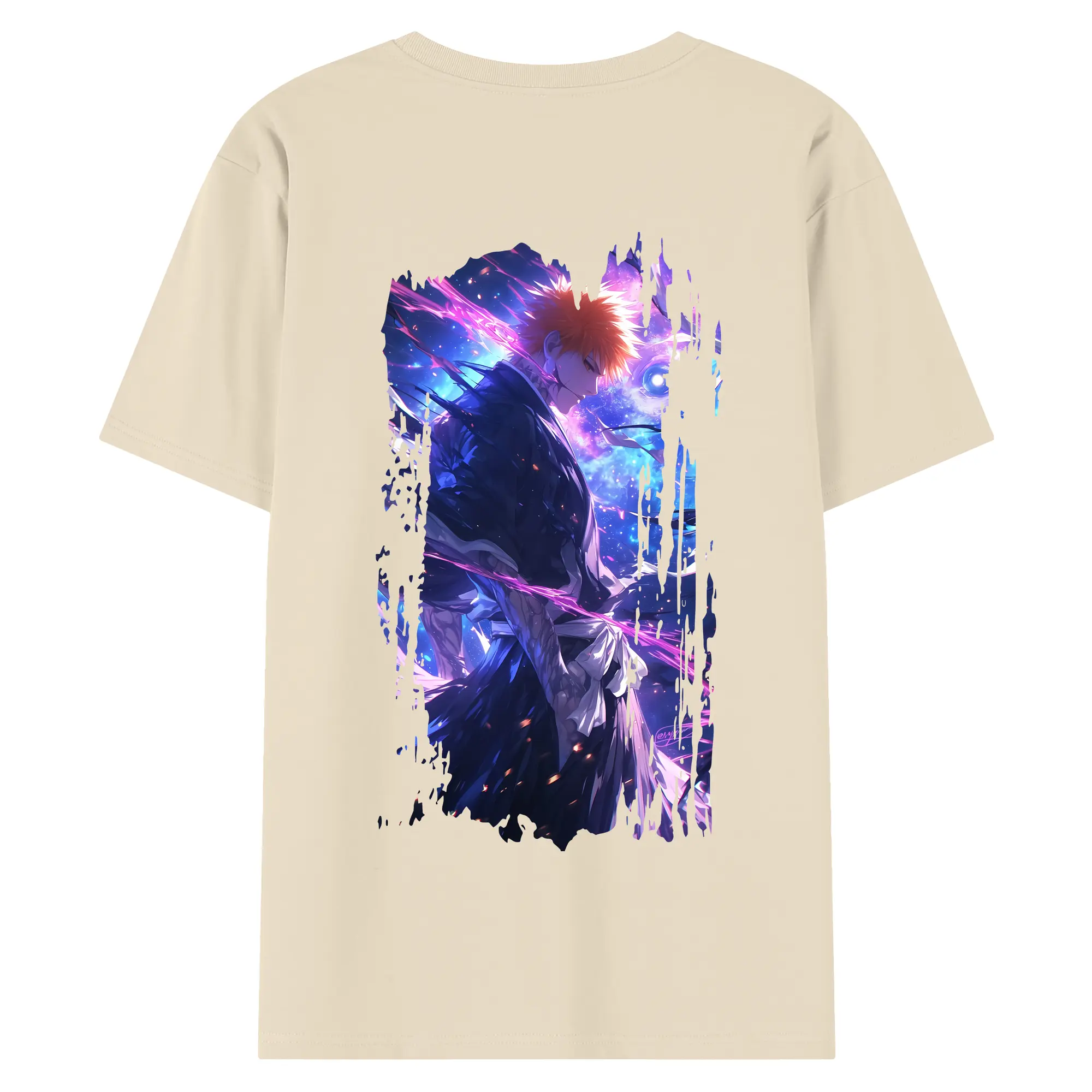 ブリーチ グッズ 黒崎 一護 - 綿100% ヴィンテージ風 半袖Tシャツ ・ 背面プリント ・ 柔らか肌触り ・ 通気性 快適 ・ スポーツ カジュアル 外出用