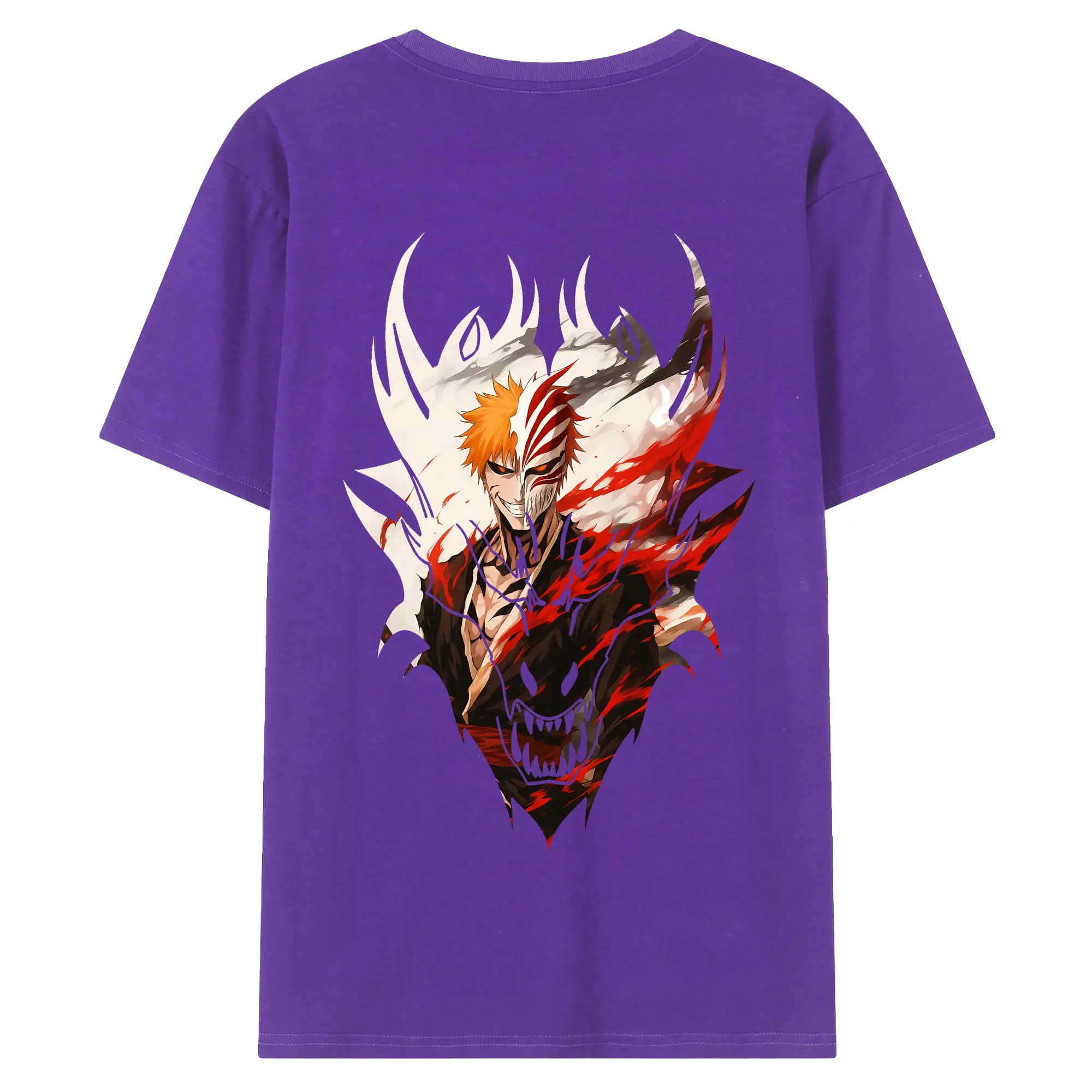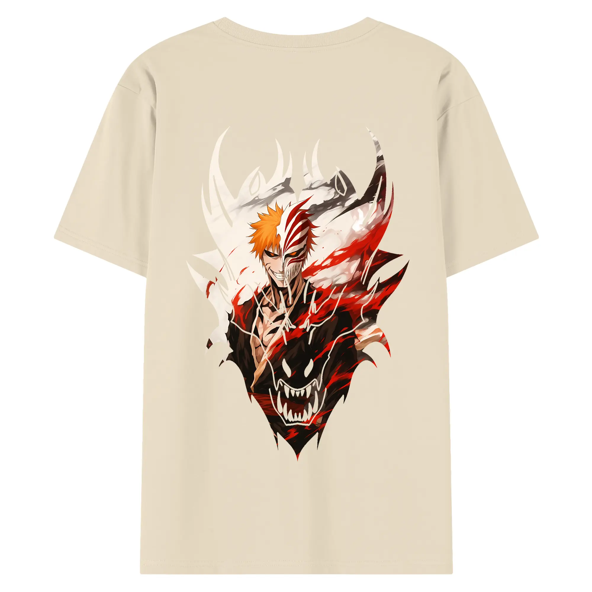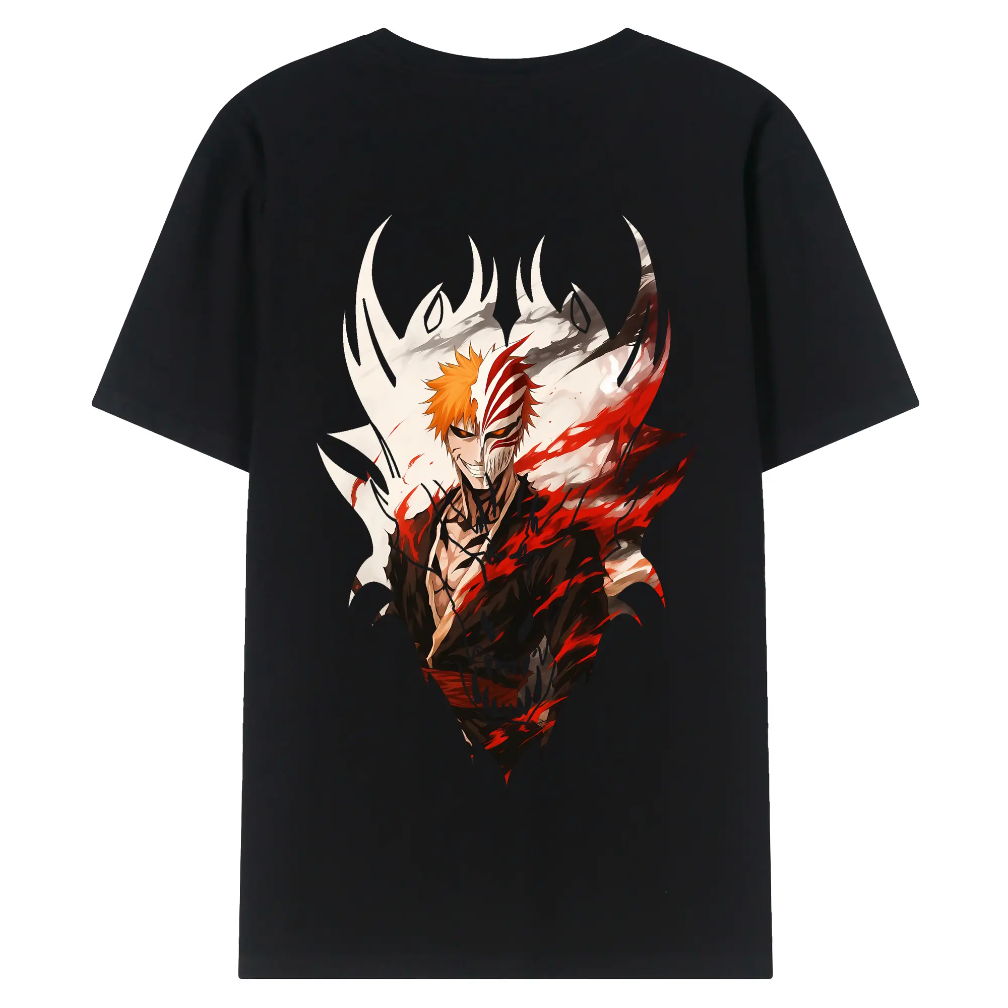 ブリーチ グッズ 黒崎 一護 - 綿100% ヴィンテージ風 半袖Tシャツ ・ 背面プリント ・ 柔らか肌触り ・ 通気性 快適 ・ スポーツ カジュアル 外出用