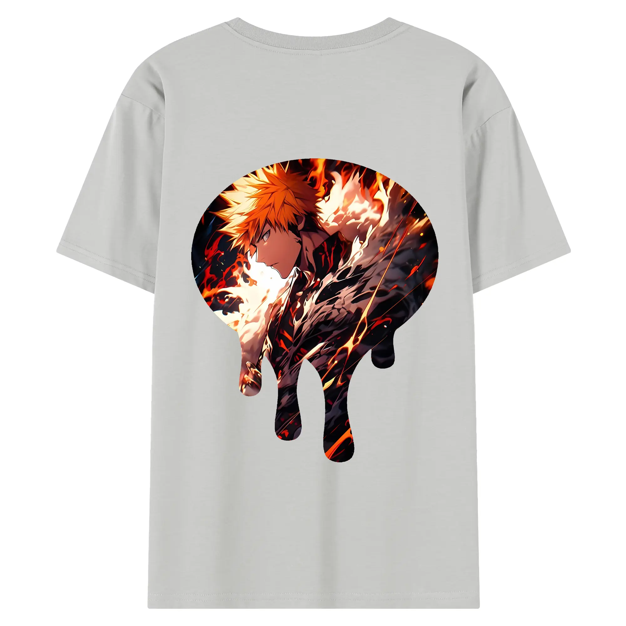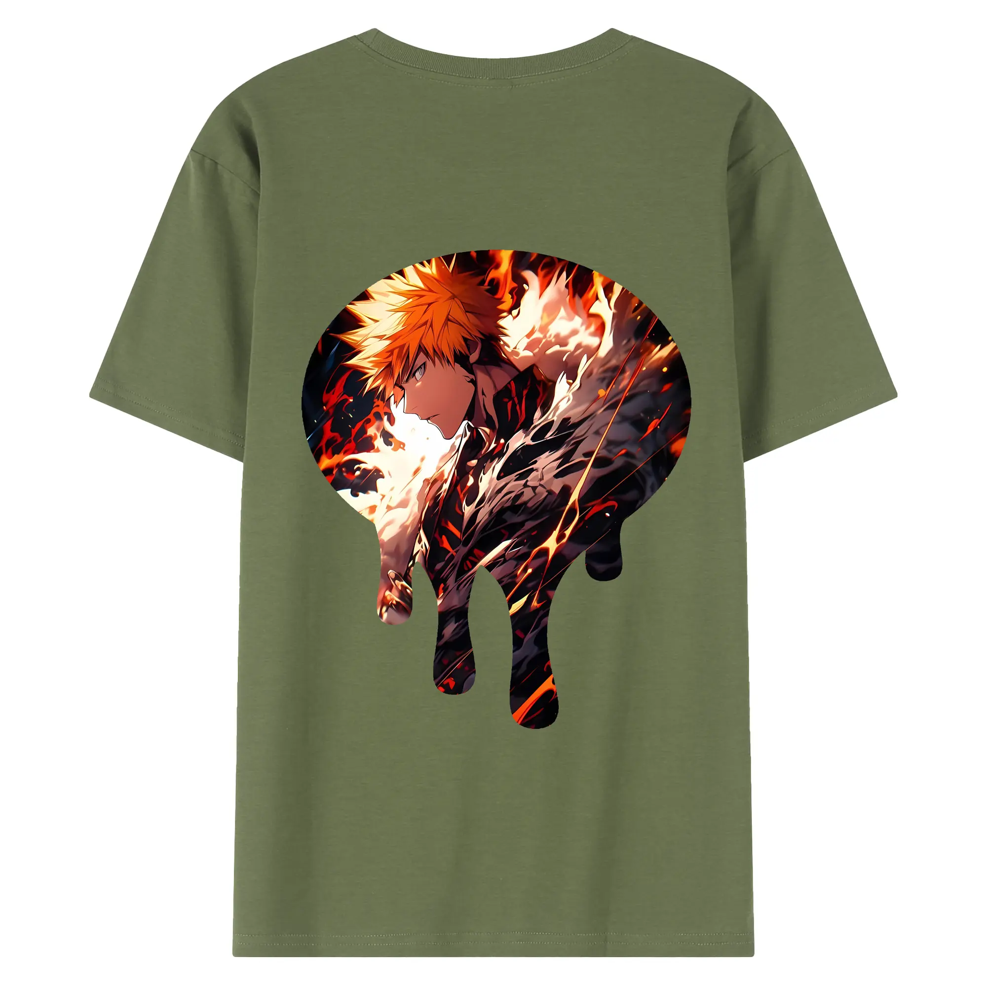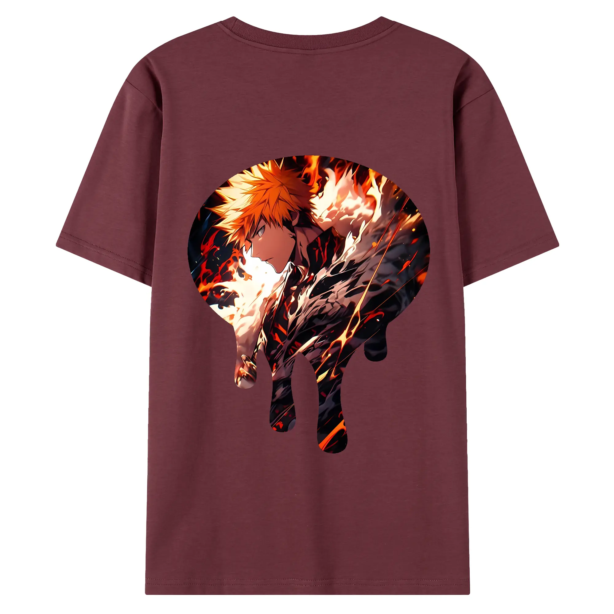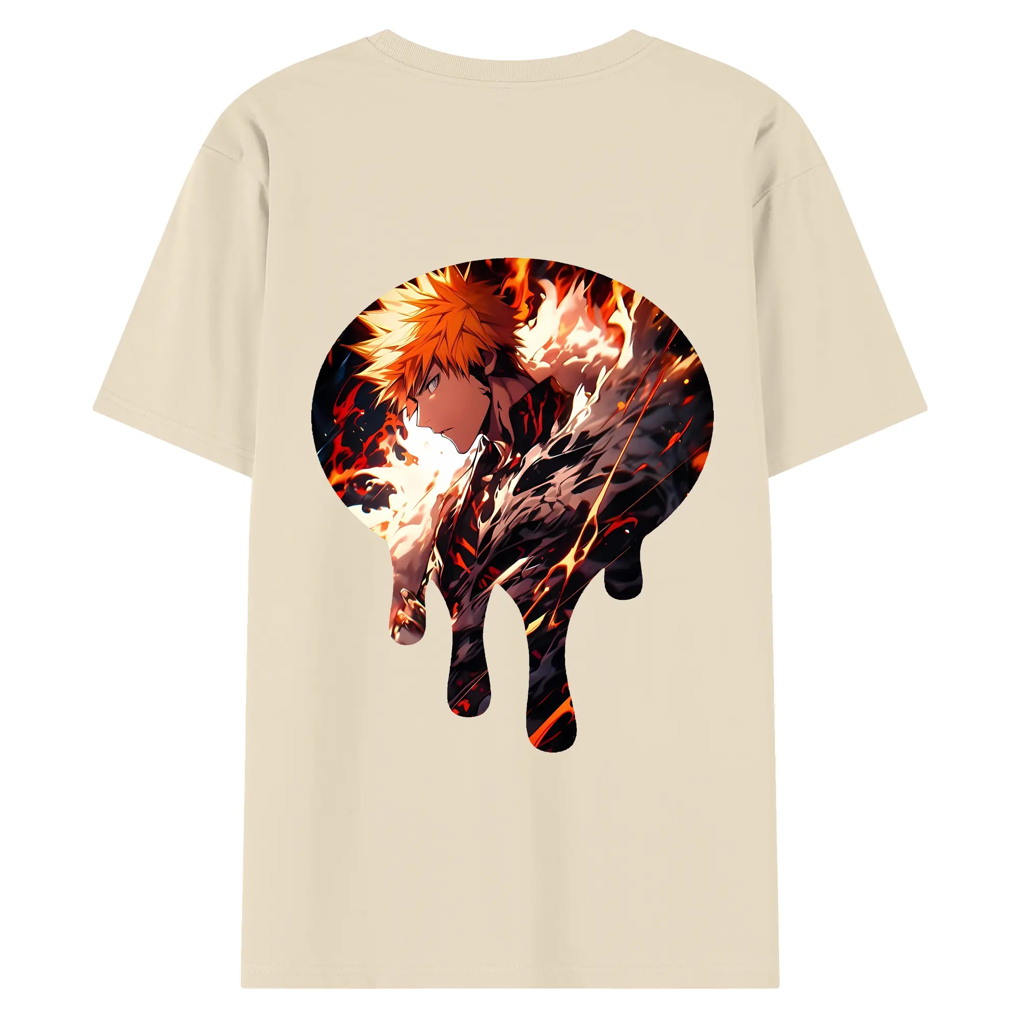 ブリーチ グッズ 黒崎 一護 - 綿100% ヴィンテージ風 半袖Tシャツ ・ 背面プリント ・ 柔らか肌触り ・ 通気性 快適 ・ スポーツ カジュアル 外出用