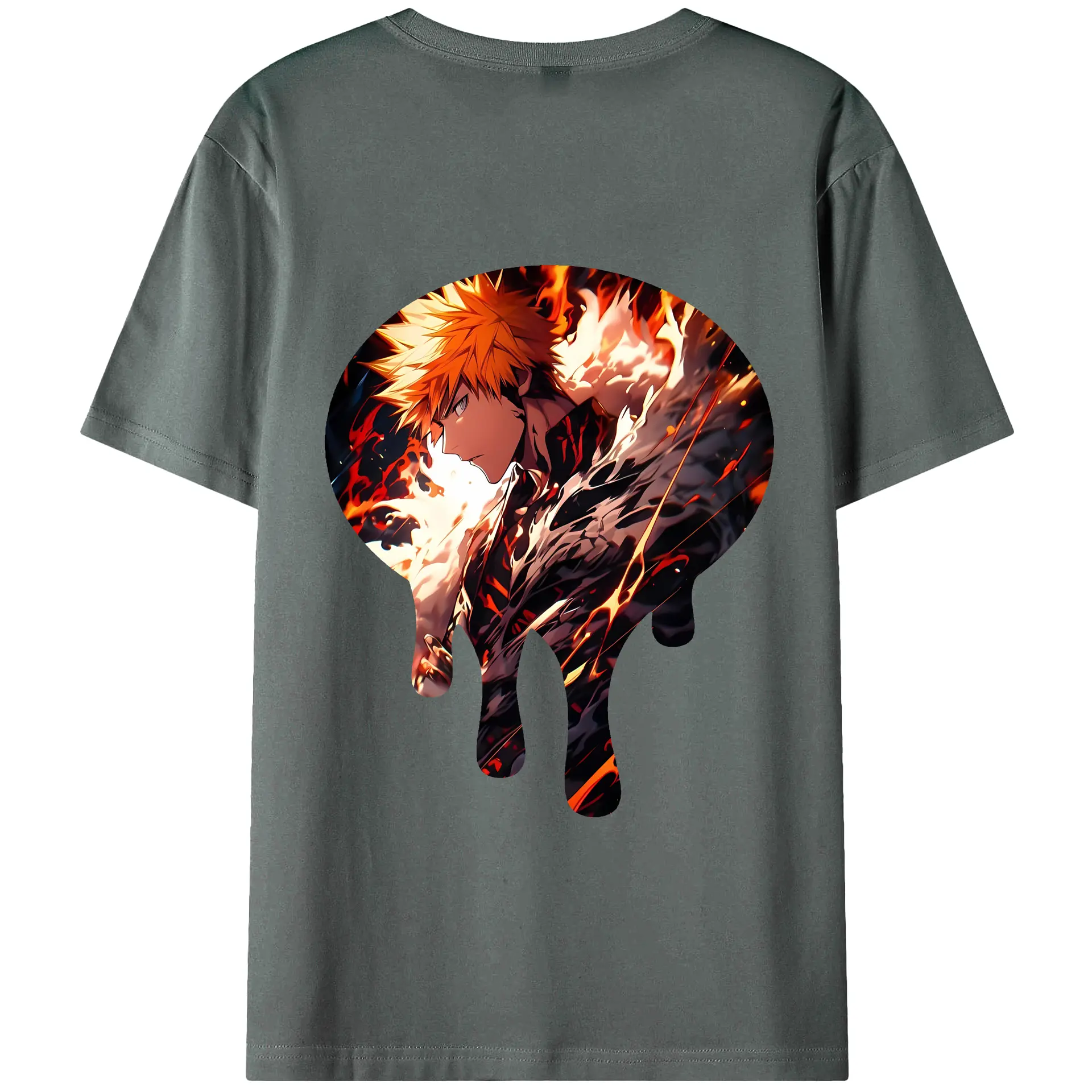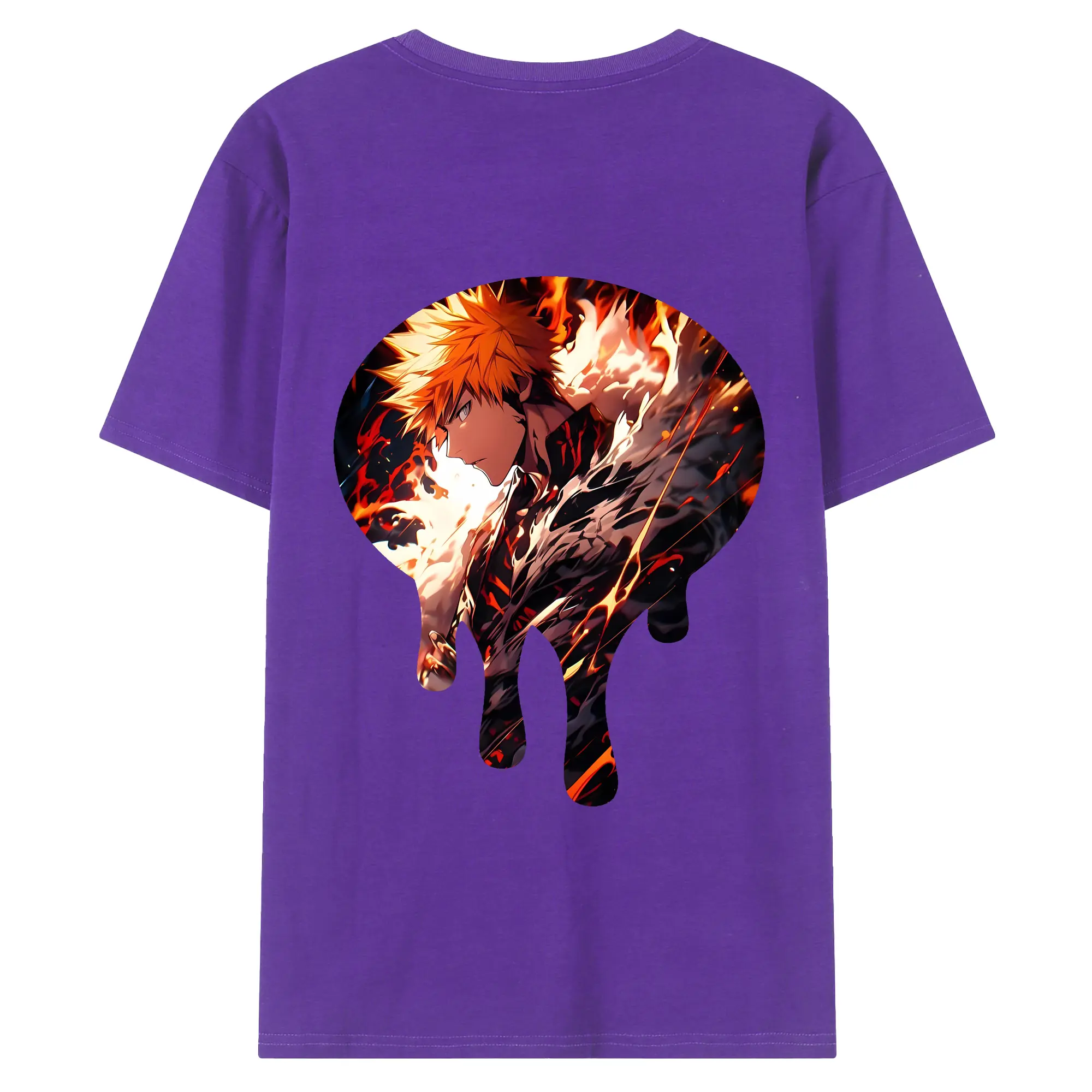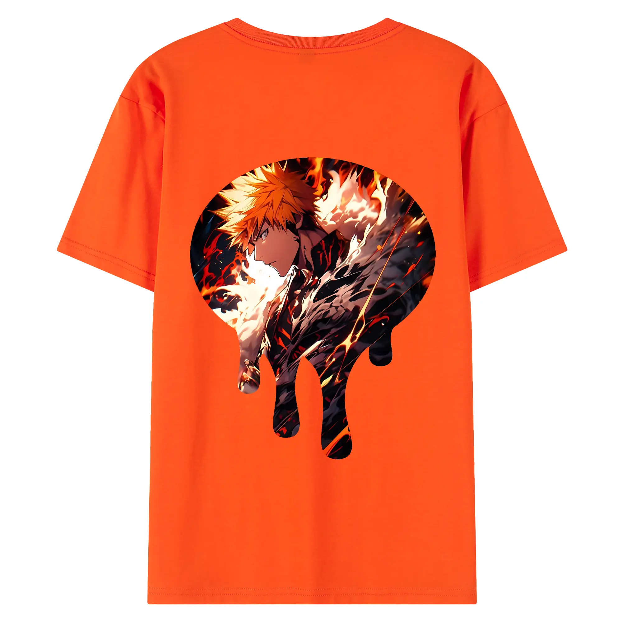 ブリーチ グッズ 黒崎 一護 - 綿100% 半袖Tシャツ ・ フロントプリント ・ 快適 通気性 ・ 日常使い 散歩 スポーツ用