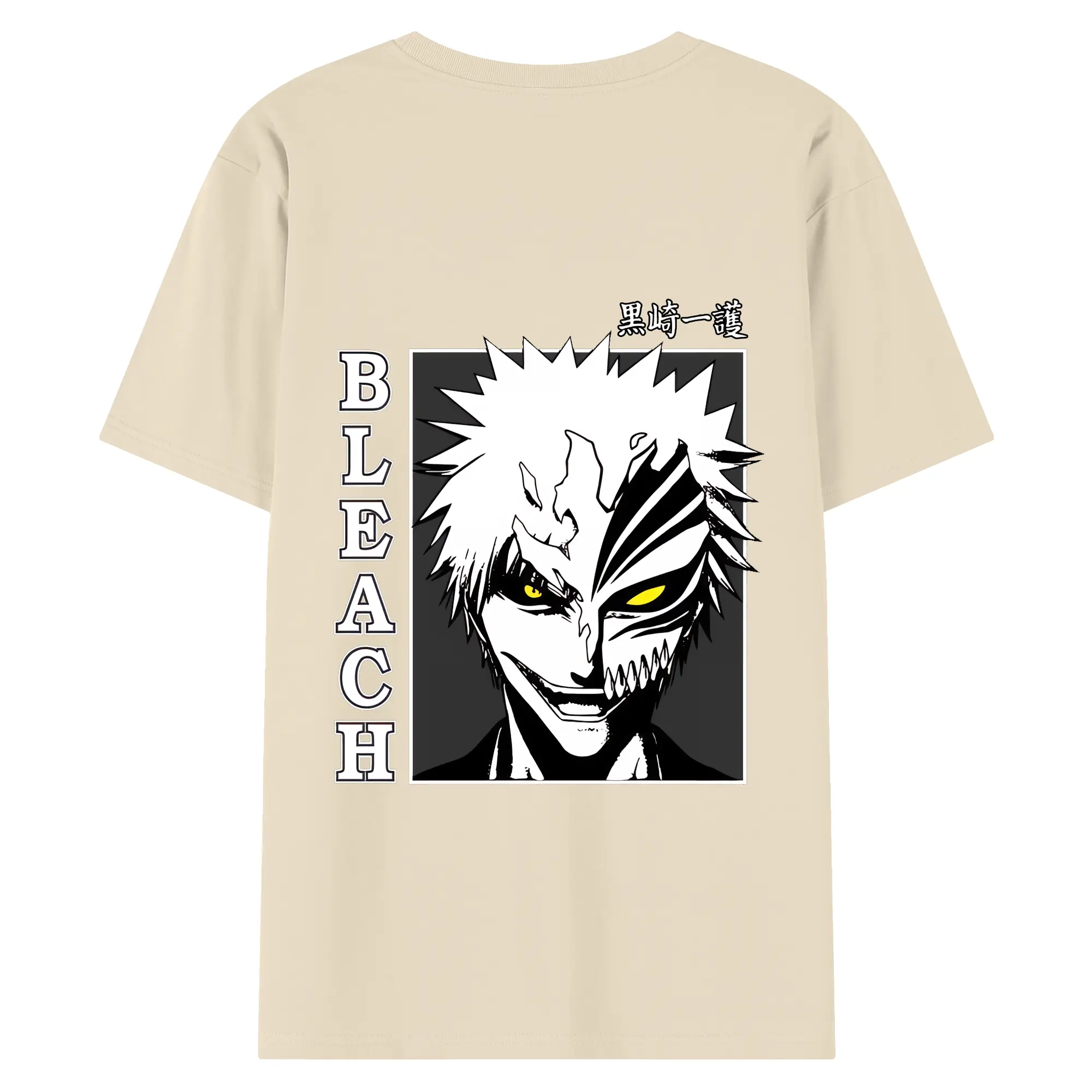 ブリーチ グッズ 黒崎 一護 - 綿100% ヴィンテージ風 半袖Tシャツ ・ 背面プリント ・ 柔らか肌触り ・ 通気性 快適 ・ スポーツ カジュアル 外出用