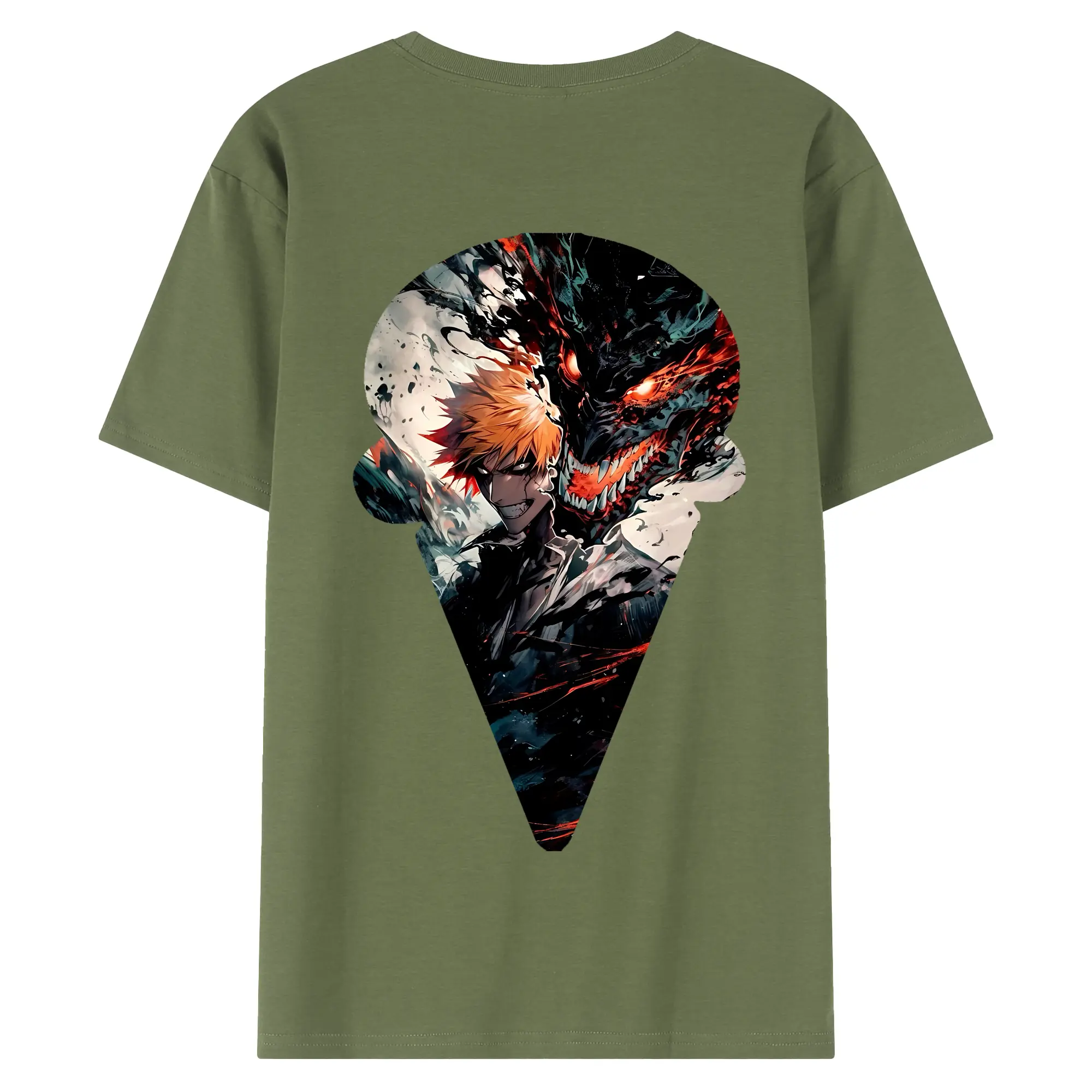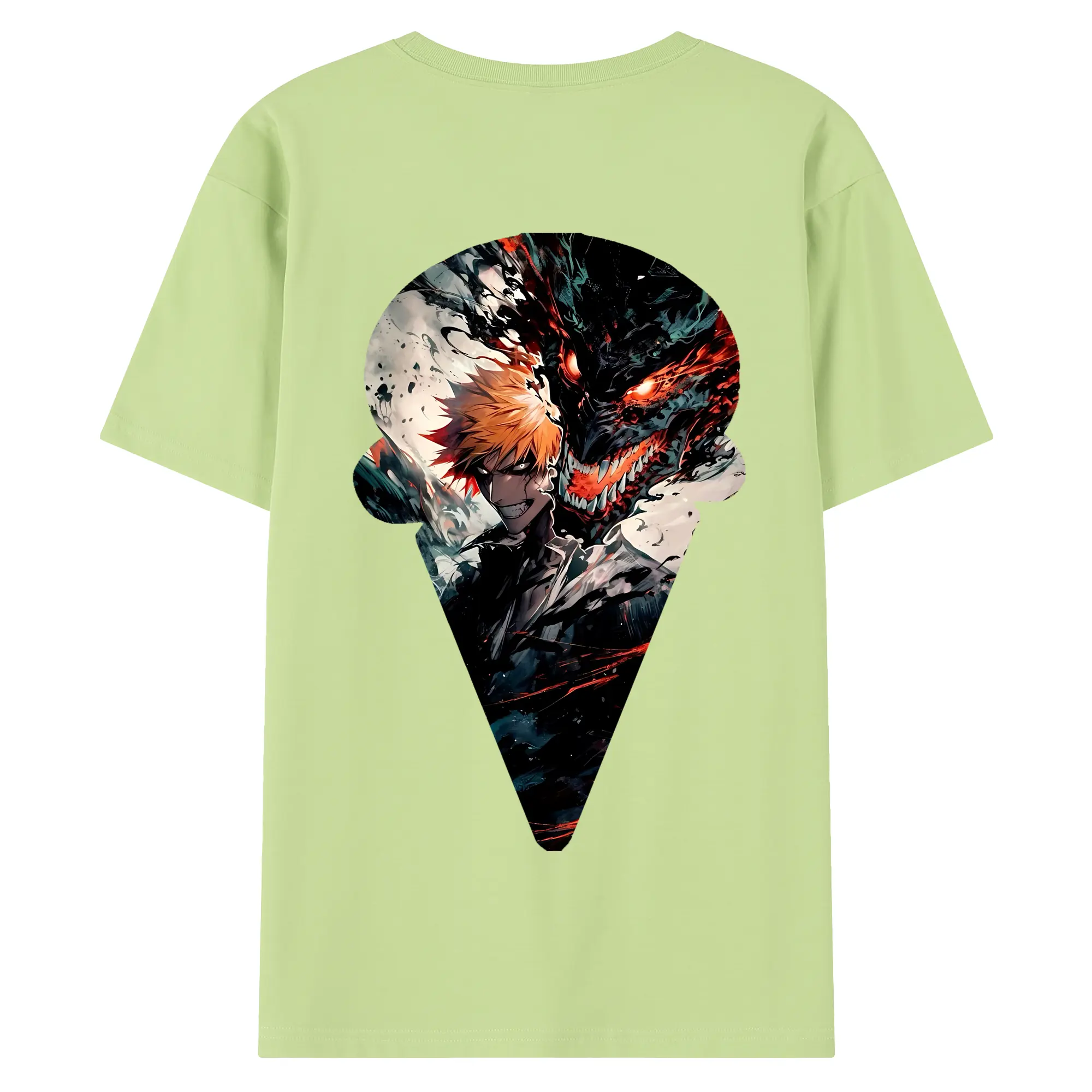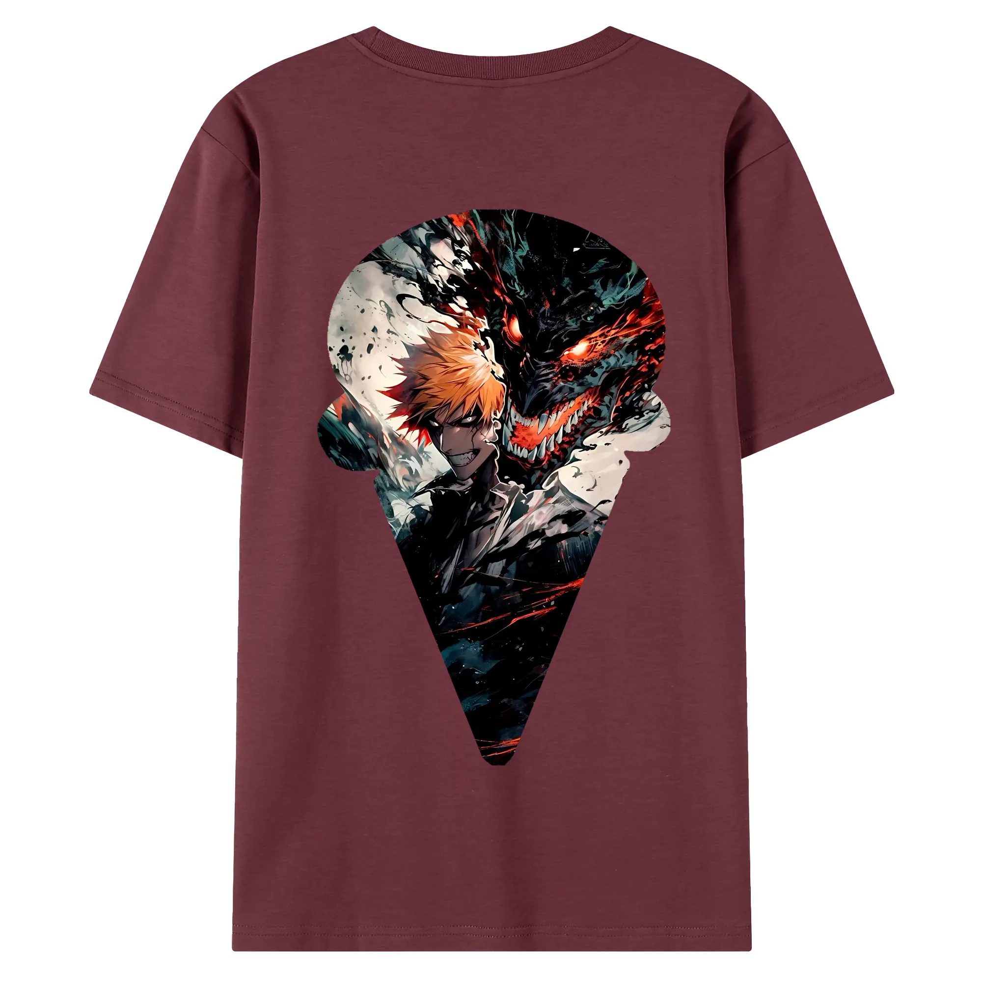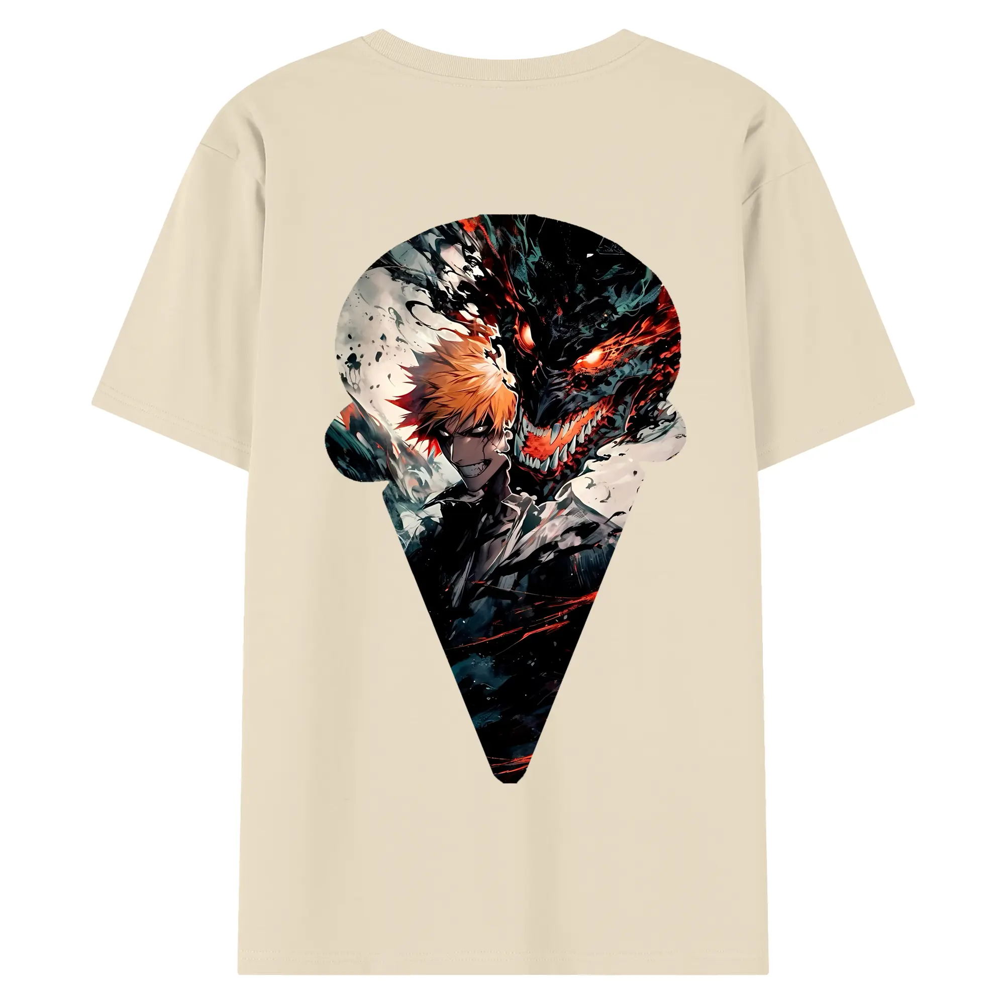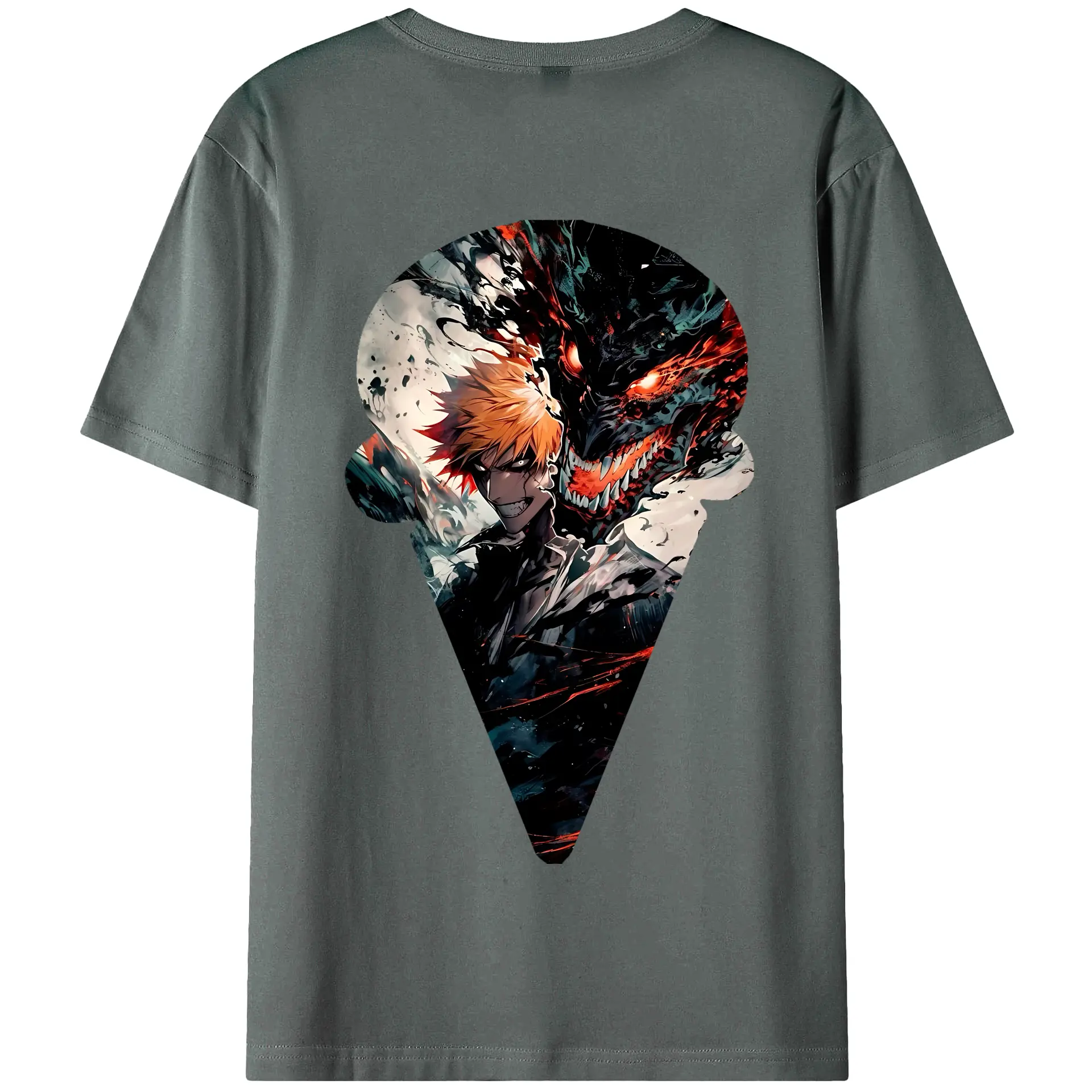 ブリーチ グッズ 黒崎 一護 - 綿100% ヴィンテージ風 半袖Tシャツ ・ 背面プリント ・ 柔らか肌触り ・ 通気性 快適 ・ スポーツ カジュアル 外出用
