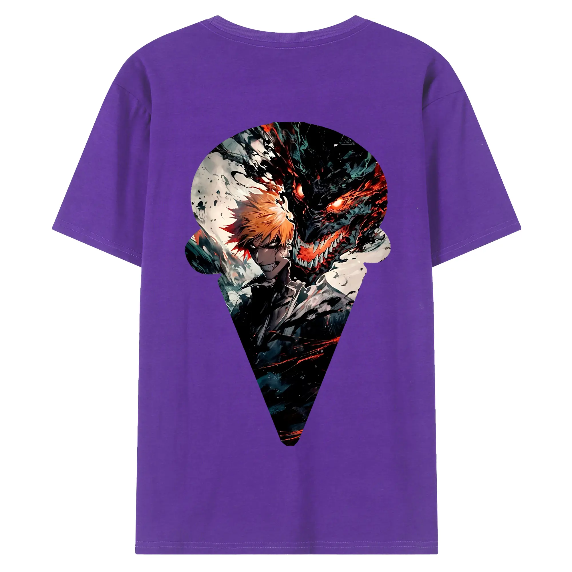 ブリーチ グッズ 黒崎 一護 - 綿100% 半袖Tシャツ ・ フロントプリント ・ 快適 通気性 ・ 日常使い 散歩 スポーツ用