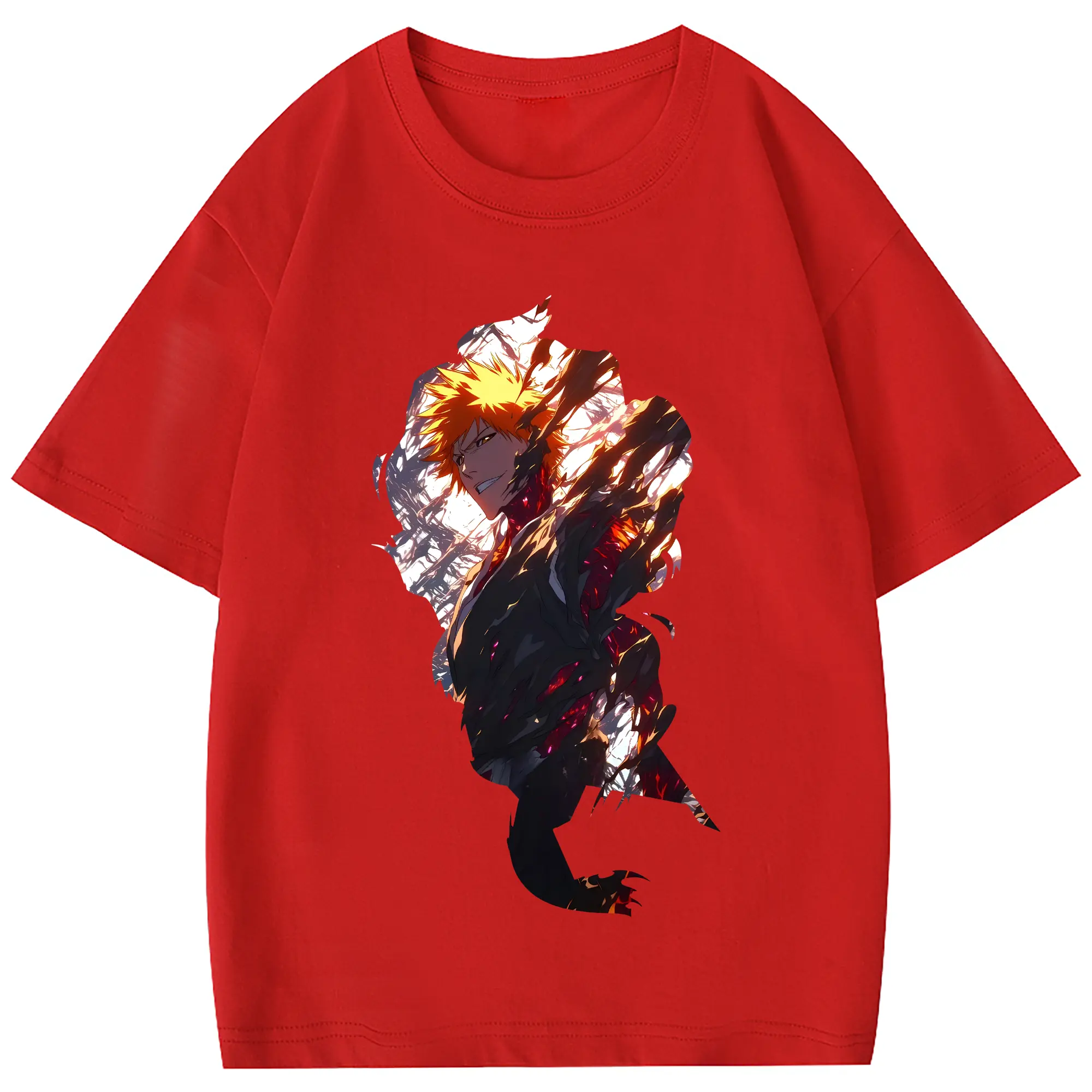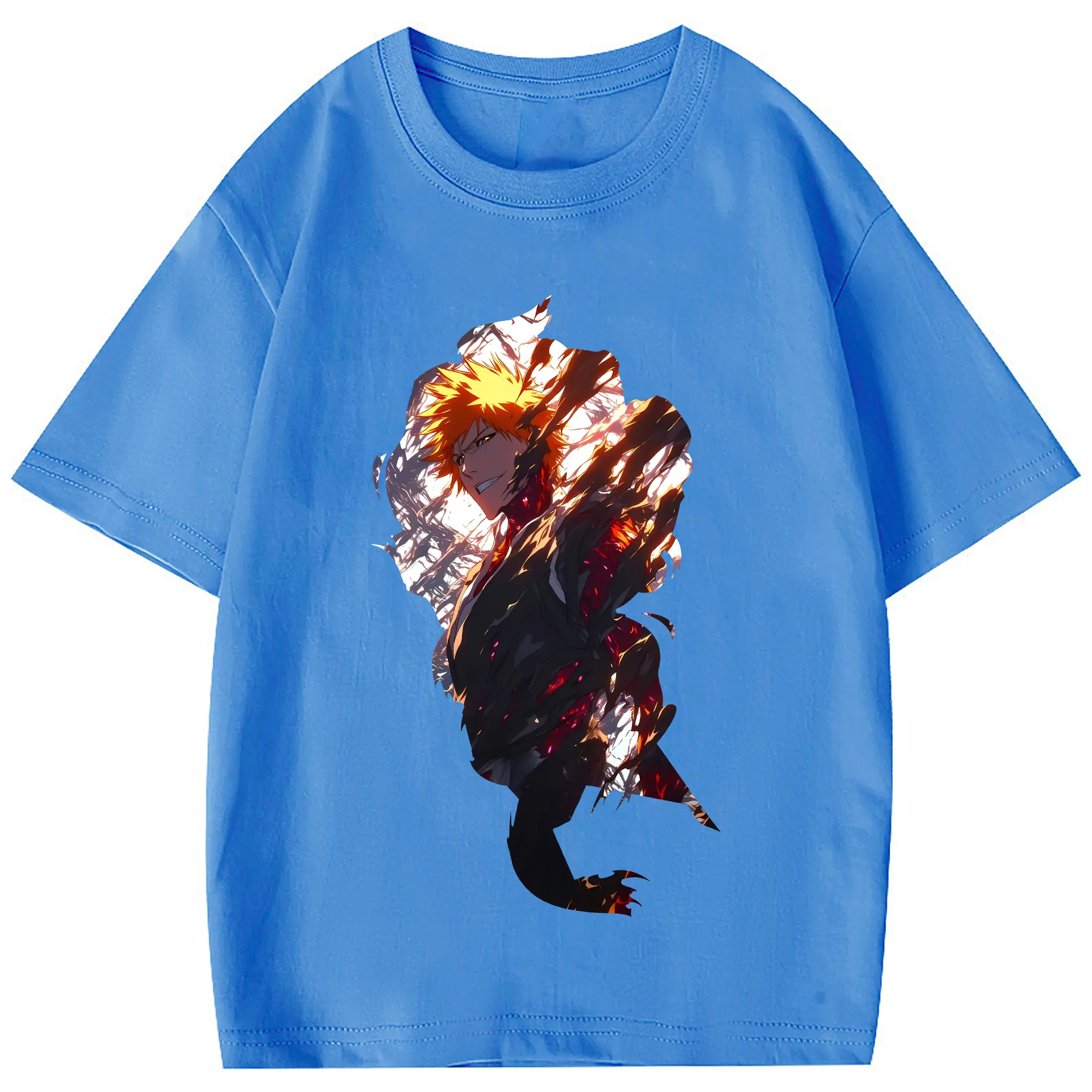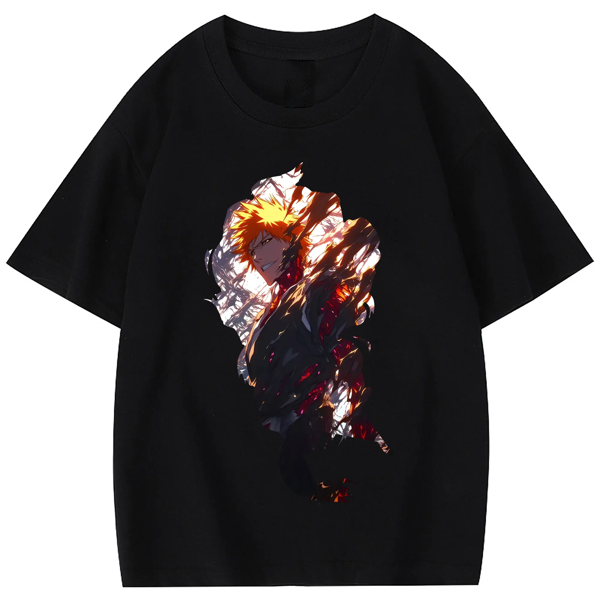 ブリーチ グッズ 黒崎 一護 - 綿100% 半袖Tシャツ ・ フロントプリント ・ 快適 通気性 ・ 日常使い 散歩 スポーツ用