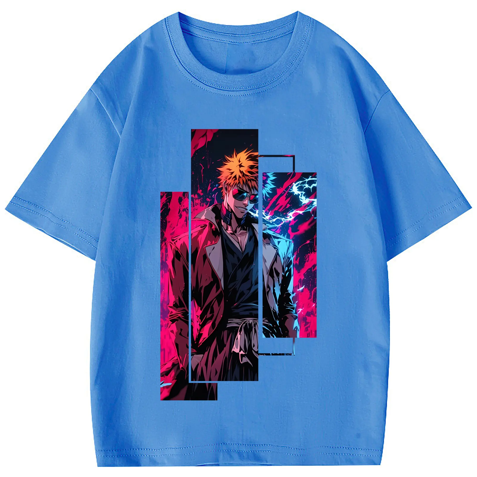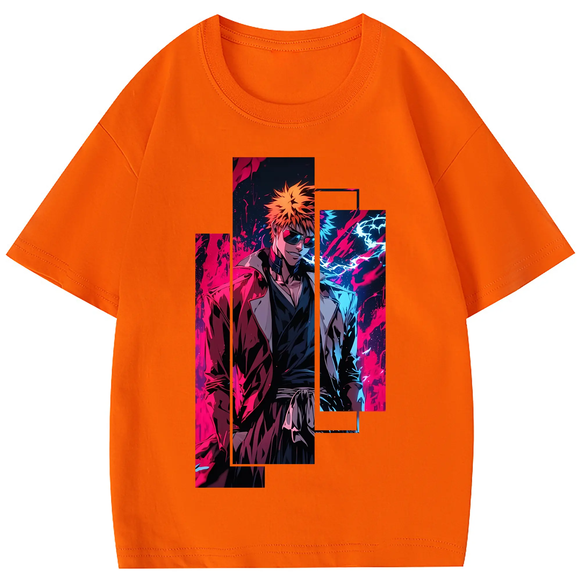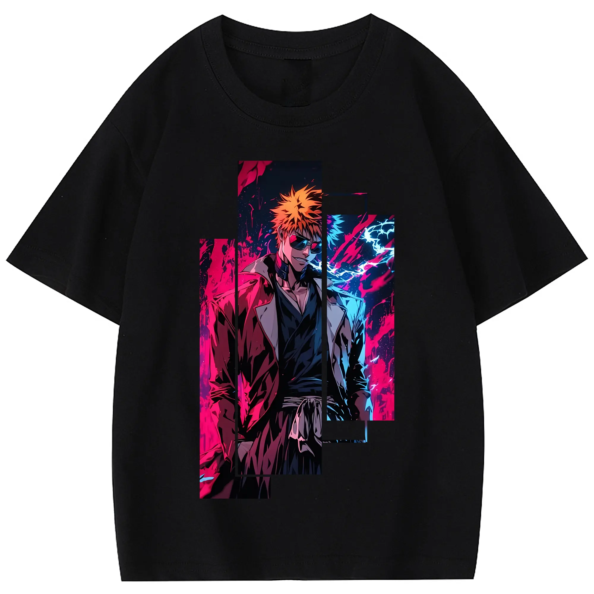 ブリーチ グッズ 黒崎 一護 - 綿100% 半袖Tシャツ ・ フロントプリント ・ 快適 通気性 ・ 日常使い 散歩 スポーツ用