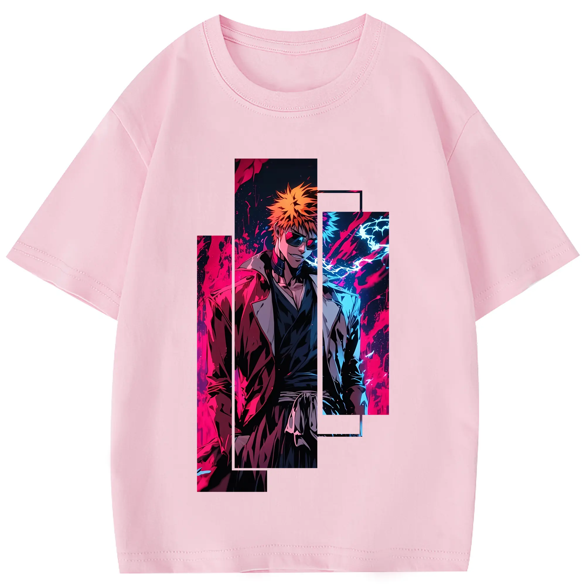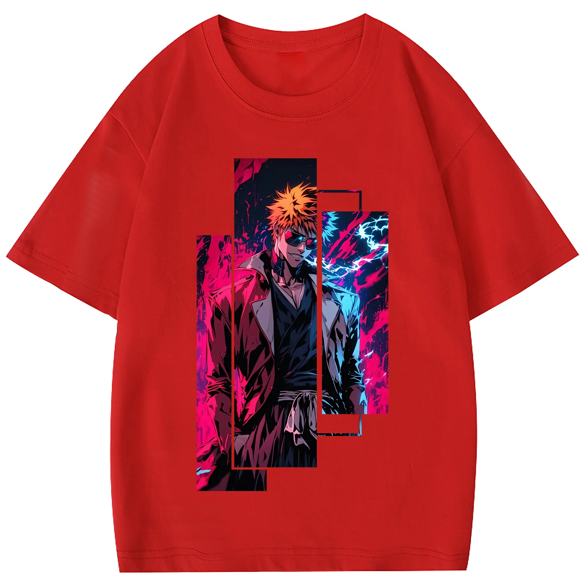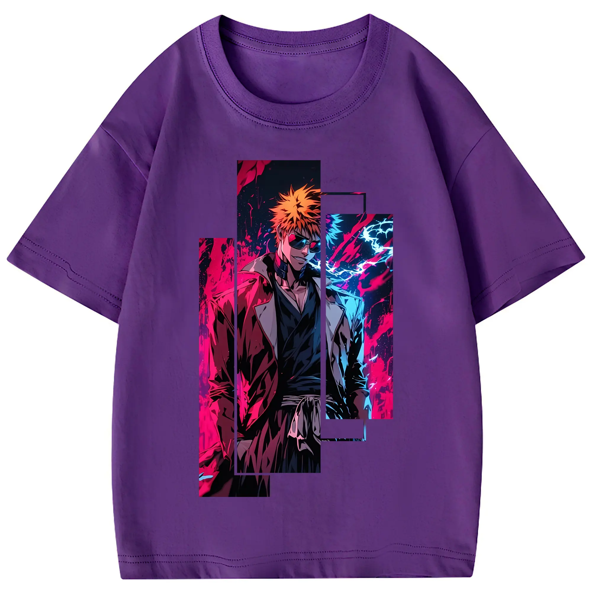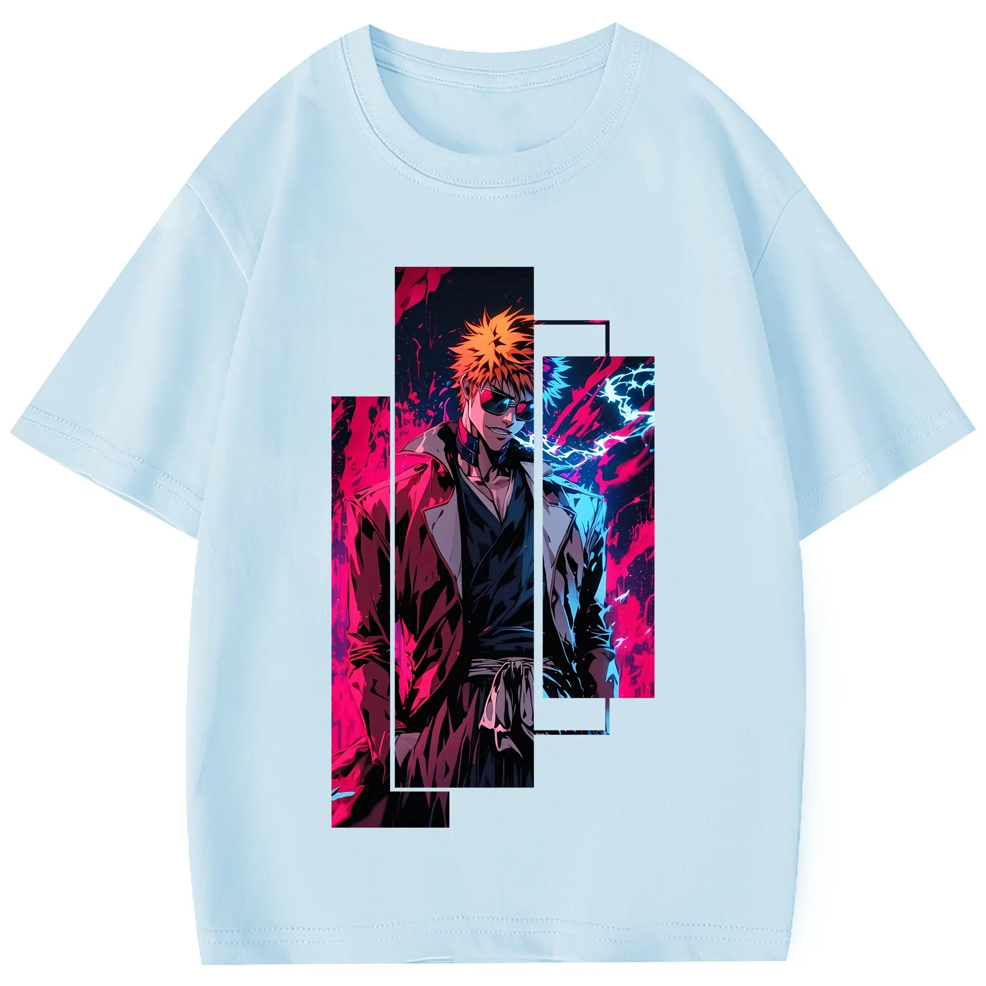 ブリーチ グッズ 黒崎 一護 - 綿100% 半袖Tシャツ ・ フロントプリント ・ 快適 通気性 ・ 日常使い 散歩 スポーツ用
