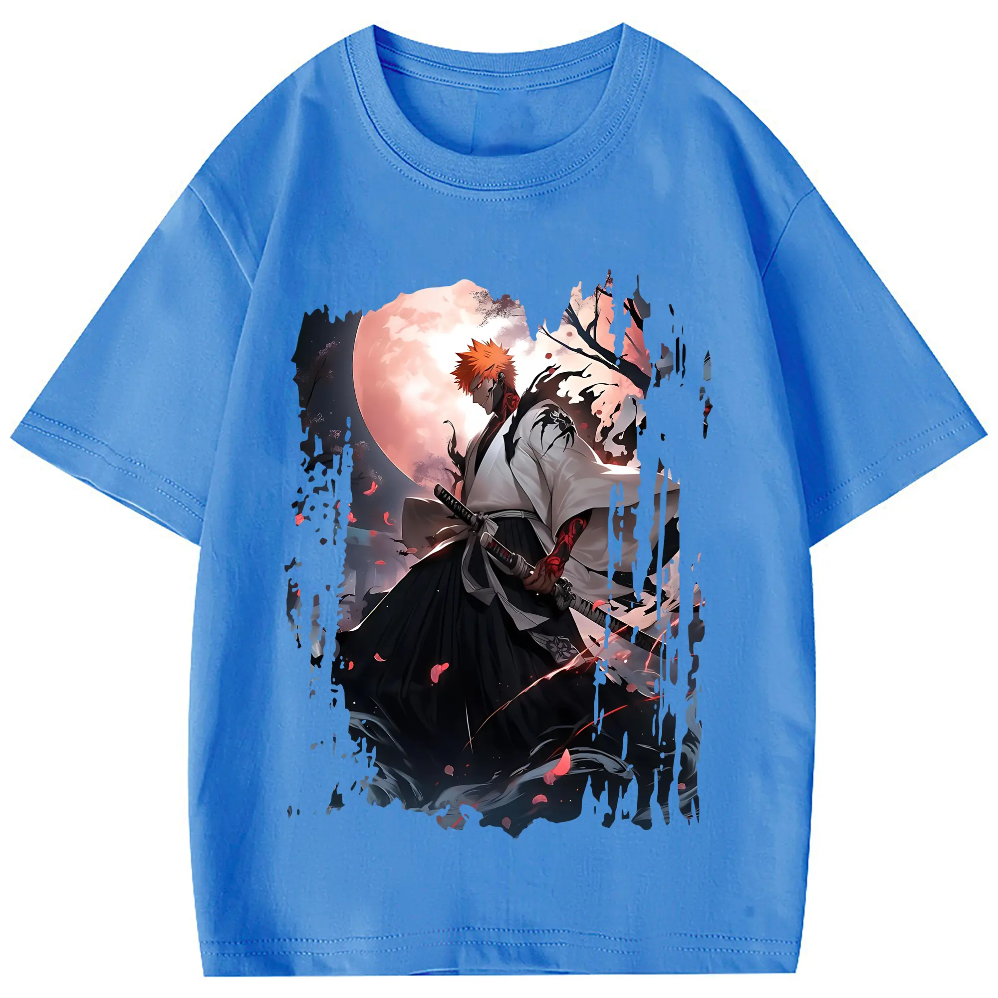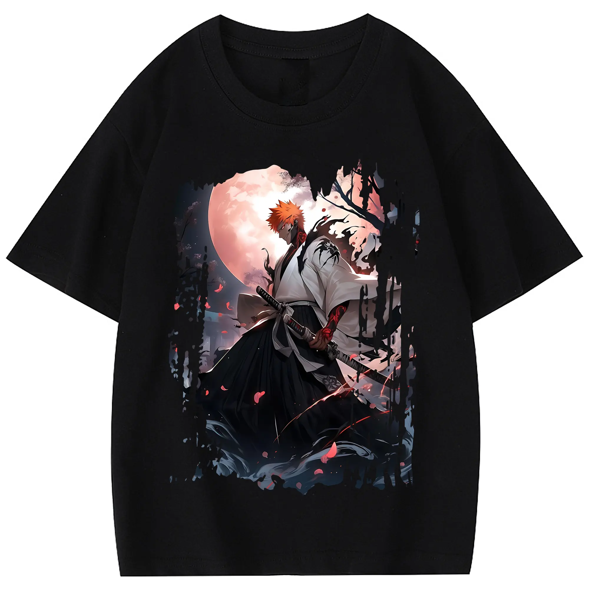 ブリーチ グッズ 黒崎 一護 - 綿100% 半袖Tシャツ ・ フロントプリント ・ 快適 通気性 ・ 日常使い 散歩 スポーツ用