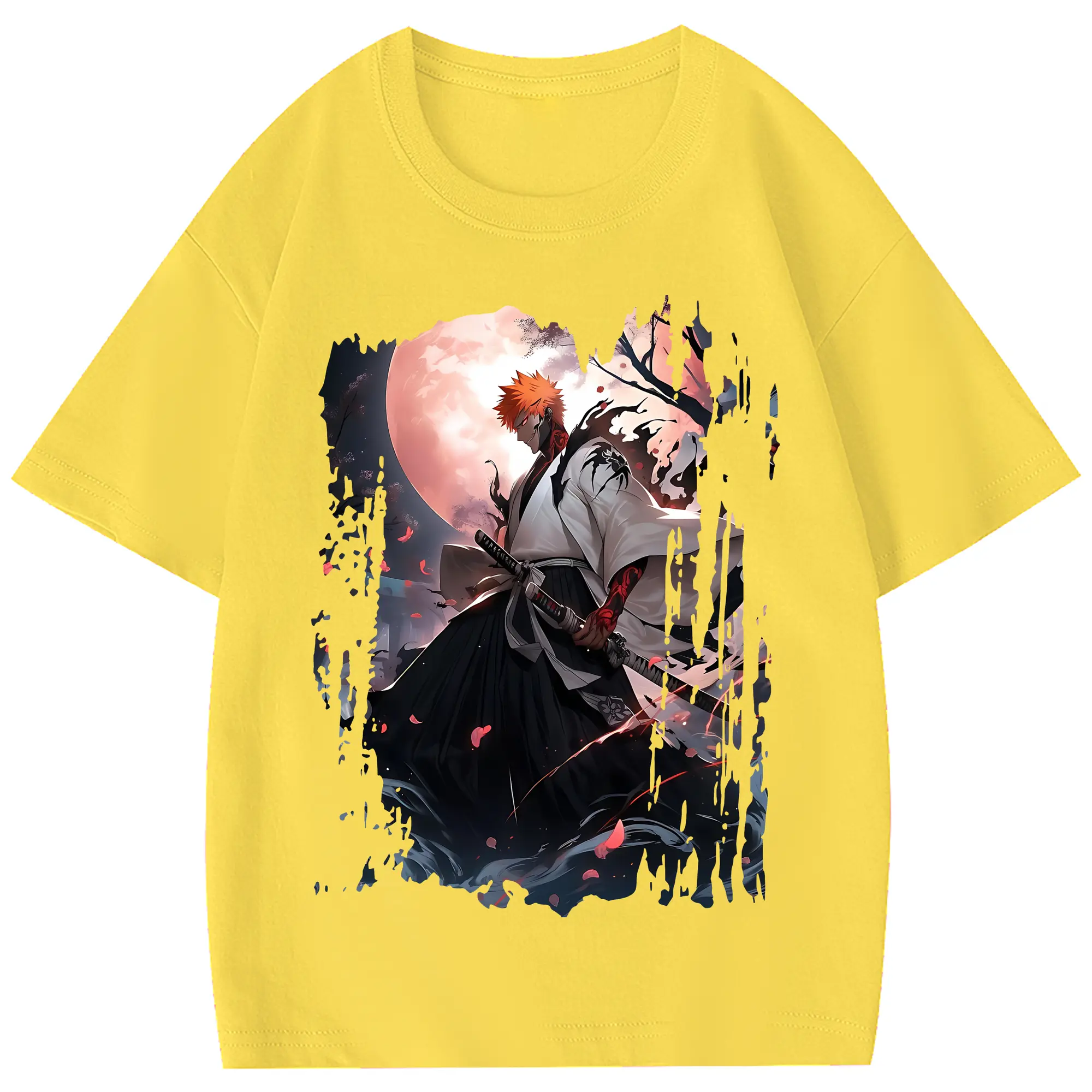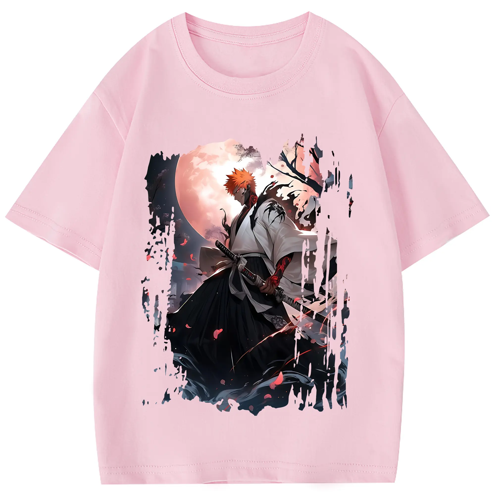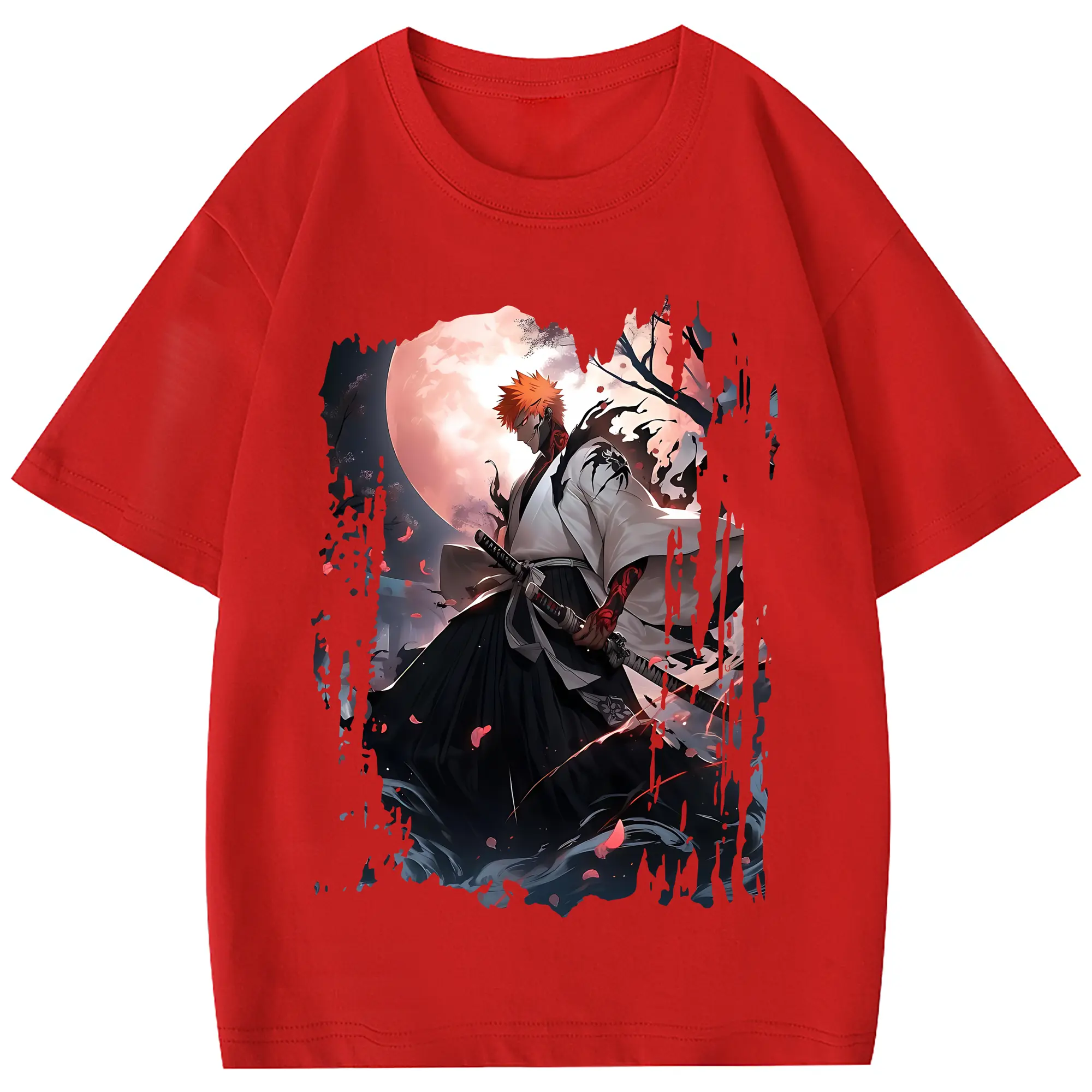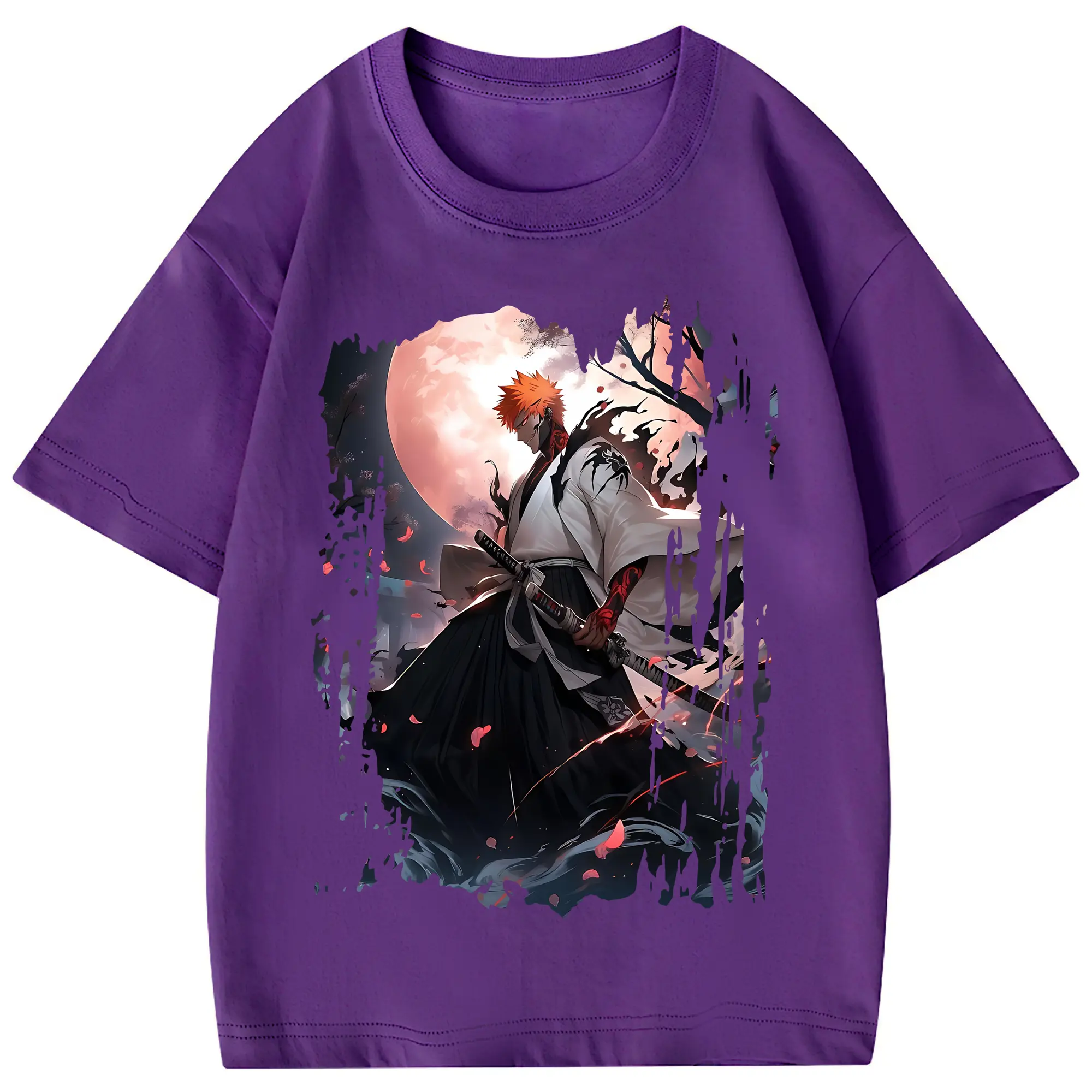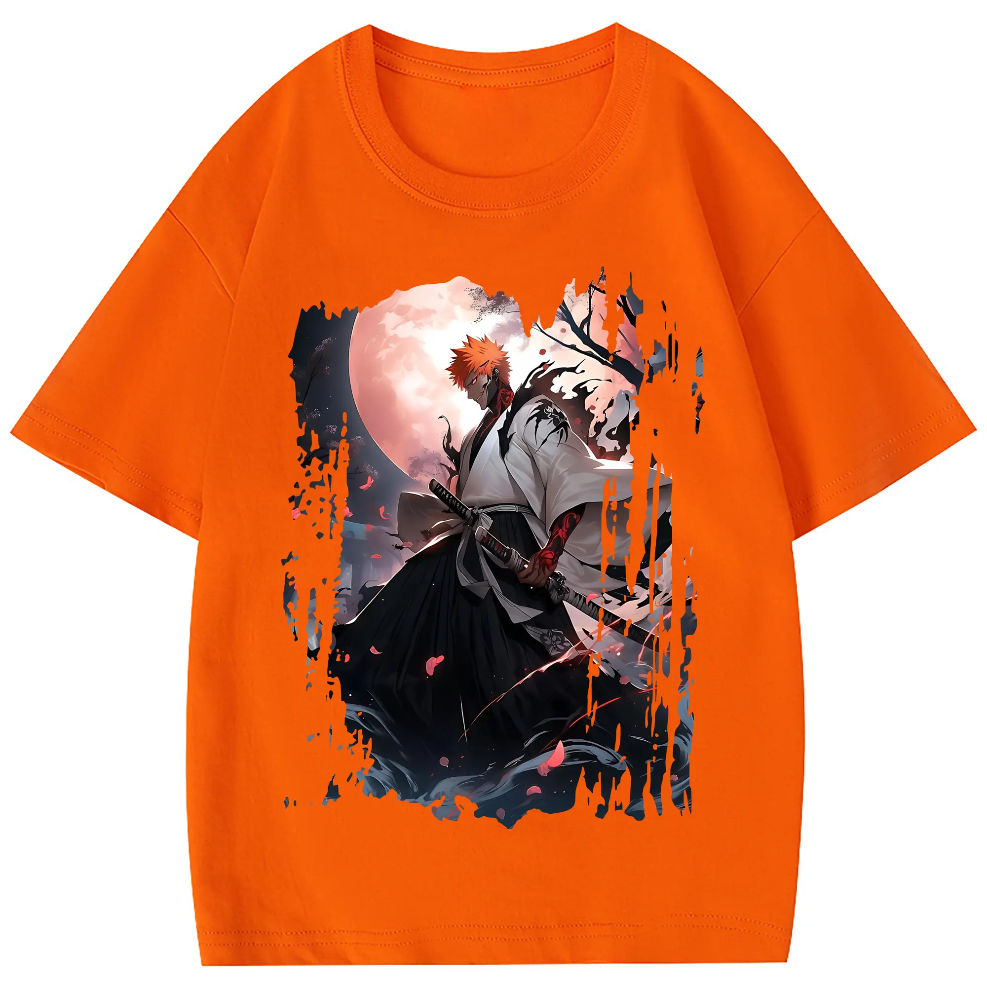 ブリーチ グッズ 黒崎 一護 - 綿100% ヴィンテージ風 半袖Tシャツ ・ フロントプリント ・ 柔らか肌触り ・ 通気性 快適 ・ スポーツ カジュアル 外出用