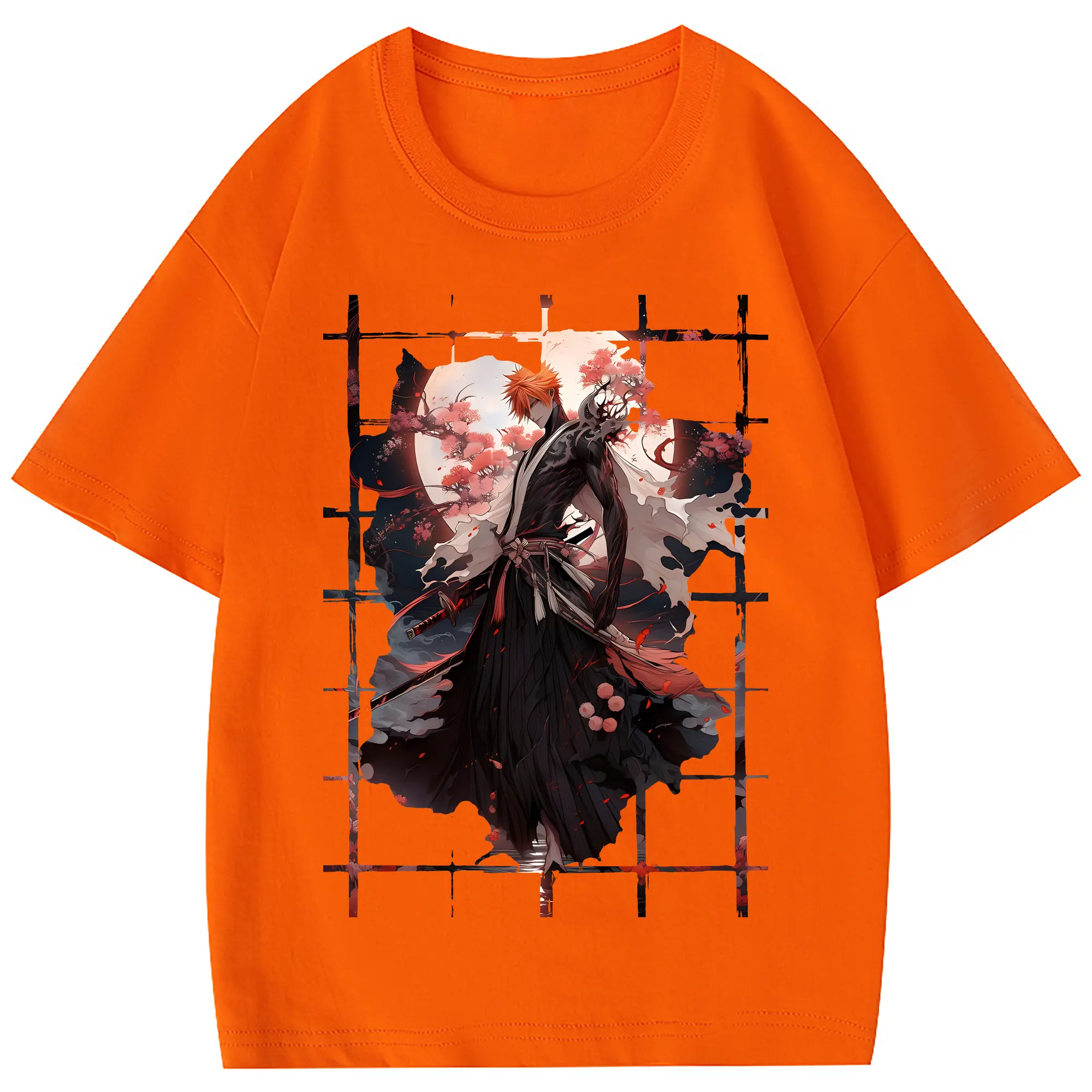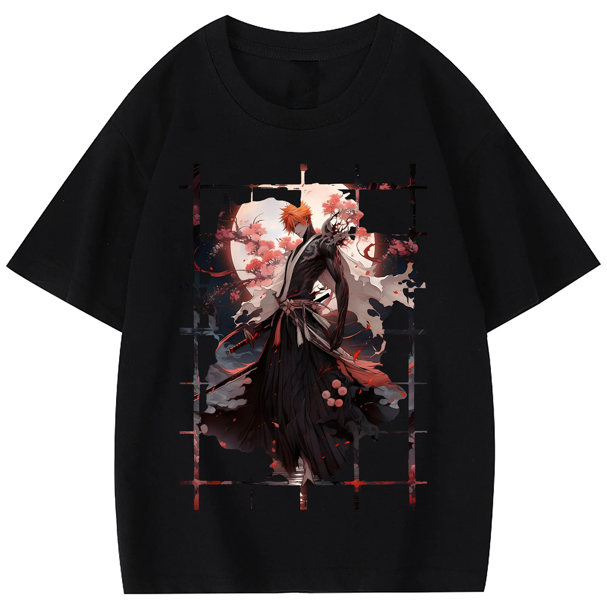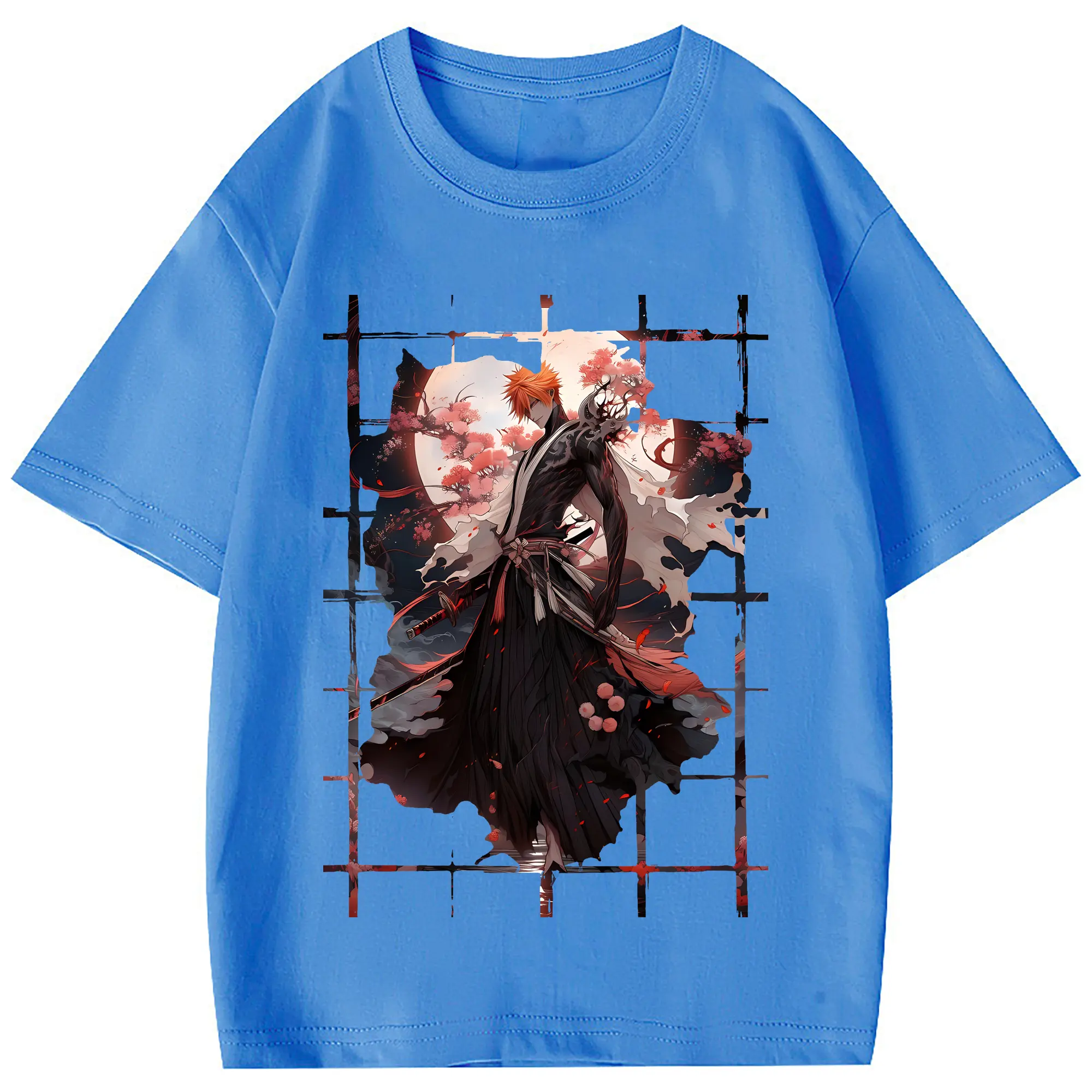 ブリーチ グッズ 黒崎 一護 - 綿100% 半袖Tシャツ ・ フロントプリント ・ 快適 通気性 ・ 日常使い 散歩 スポーツ用