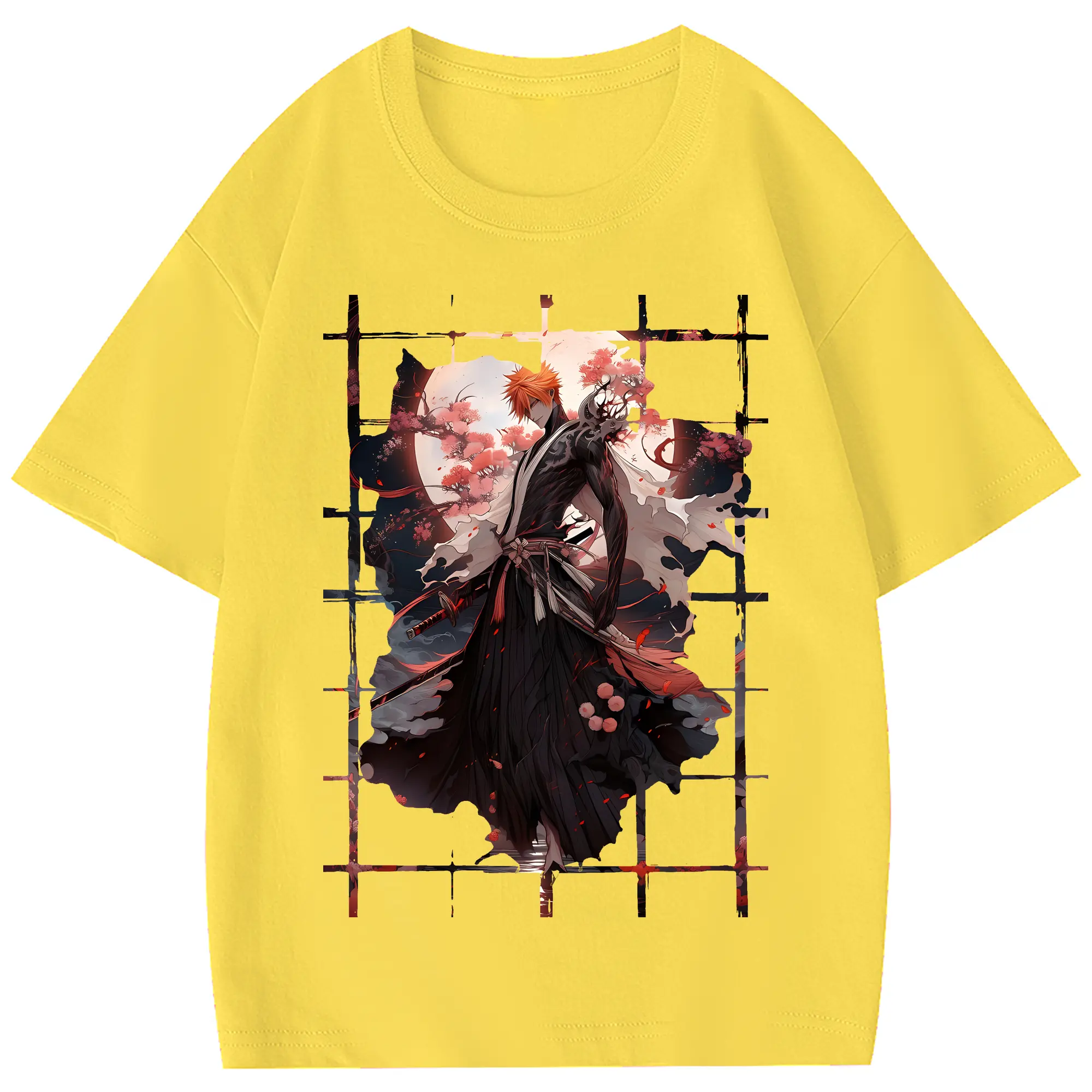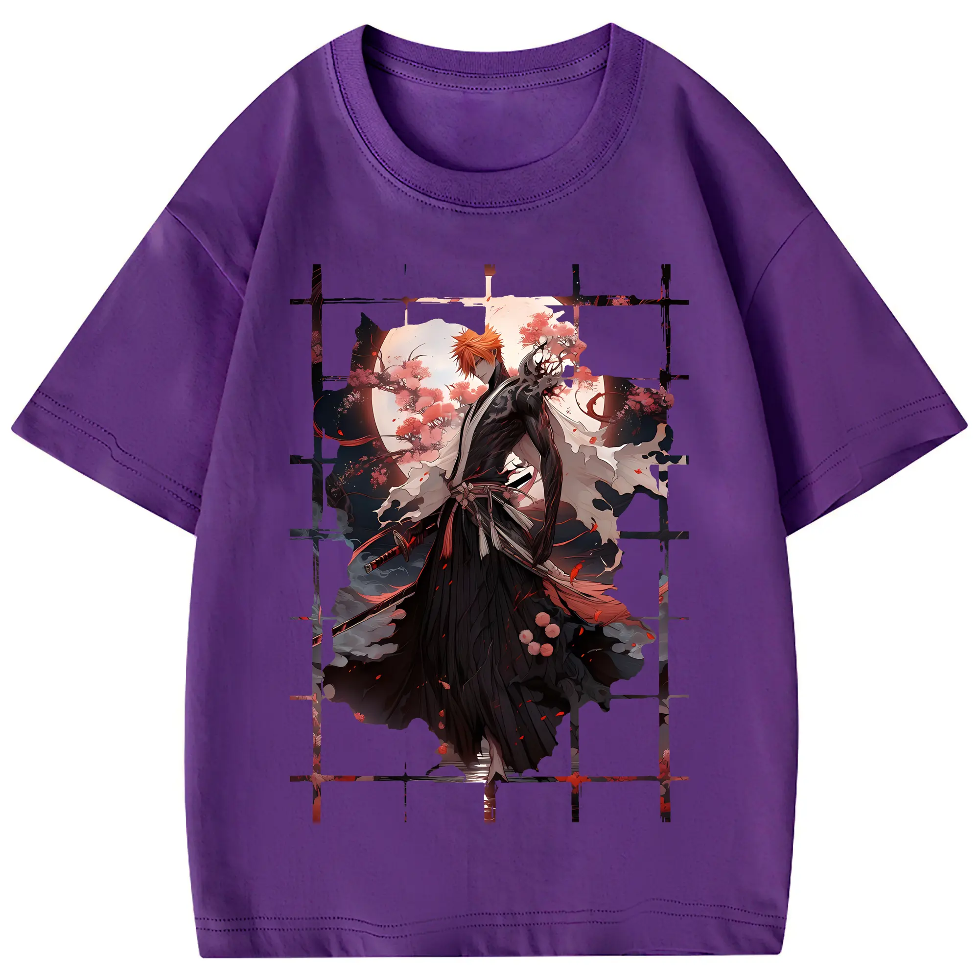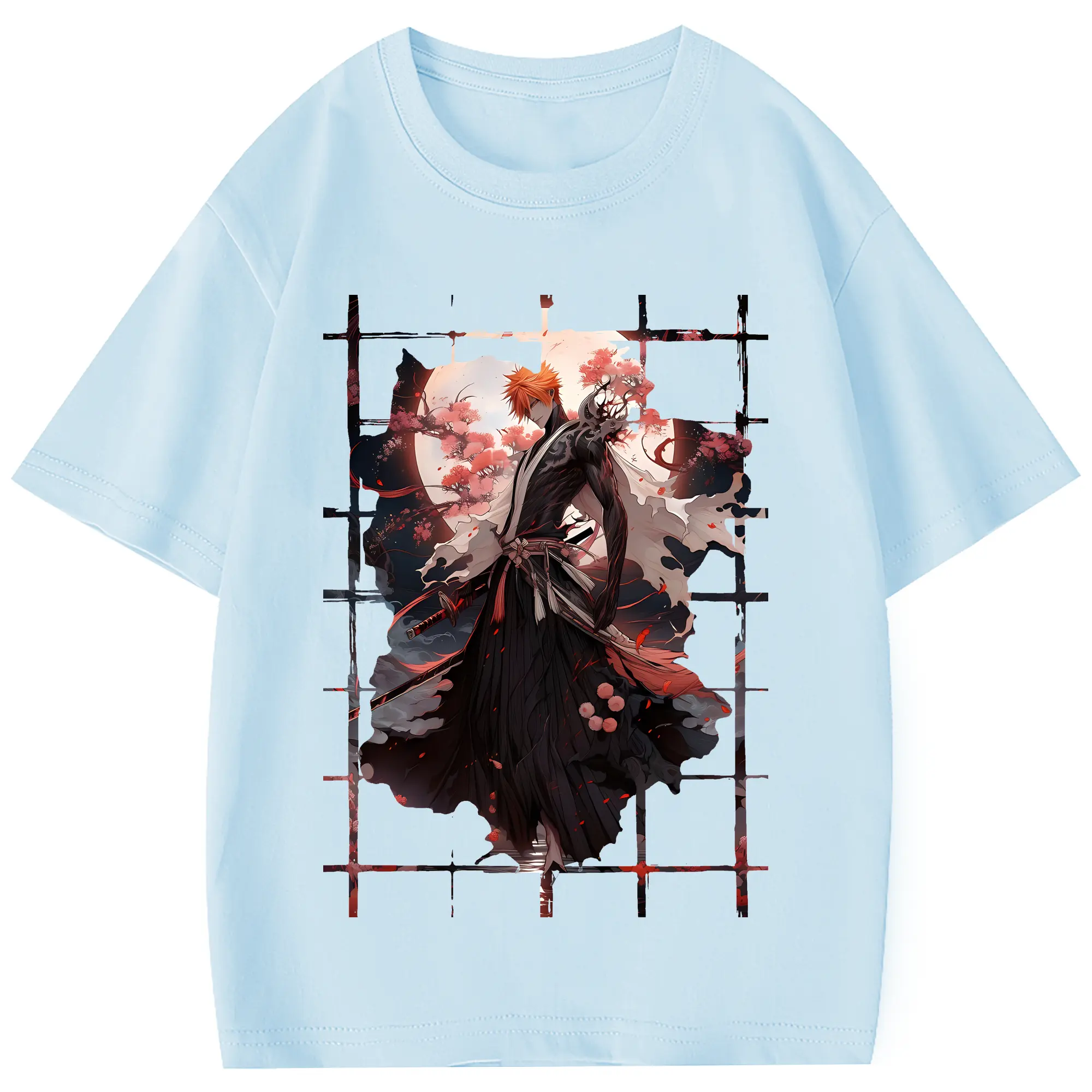 ブリーチ グッズ 黒崎 一護 - 綿100% 半袖Tシャツ ・ フロントプリント ・ 快適 通気性 ・ 日常使い 散歩 スポーツ用