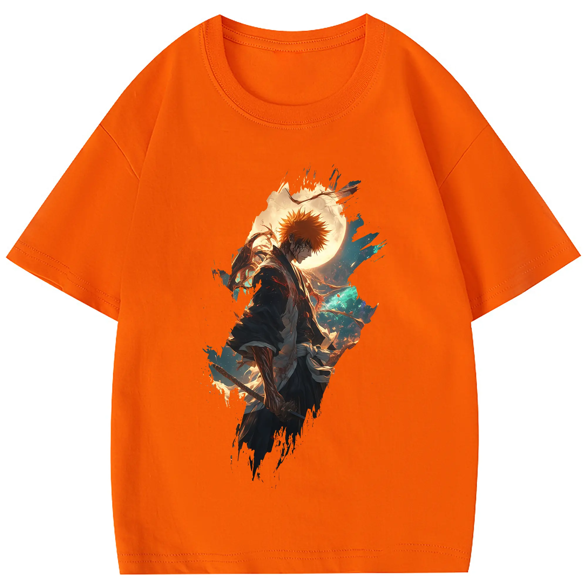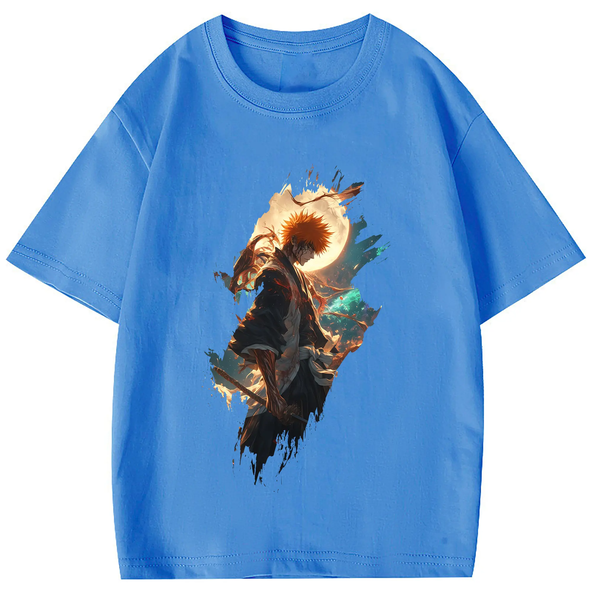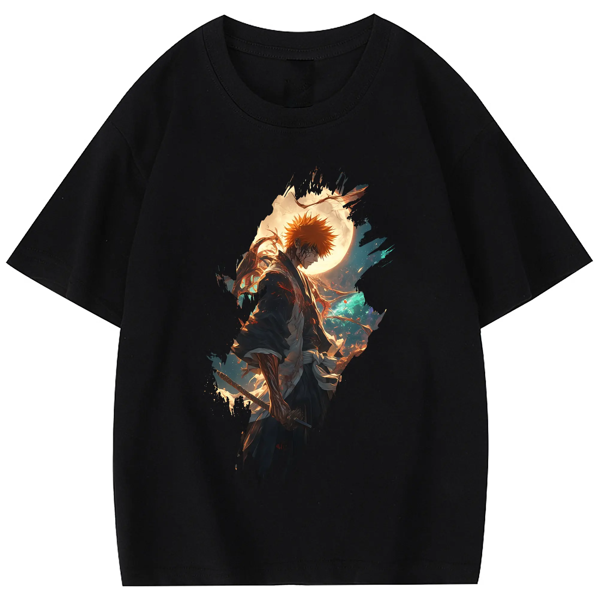 ブリーチ グッズ 黒崎 一護 - 綿100% 半袖Tシャツ ・ フロントプリント ・ 快適 通気性 ・ 日常使い 散歩 スポーツ用