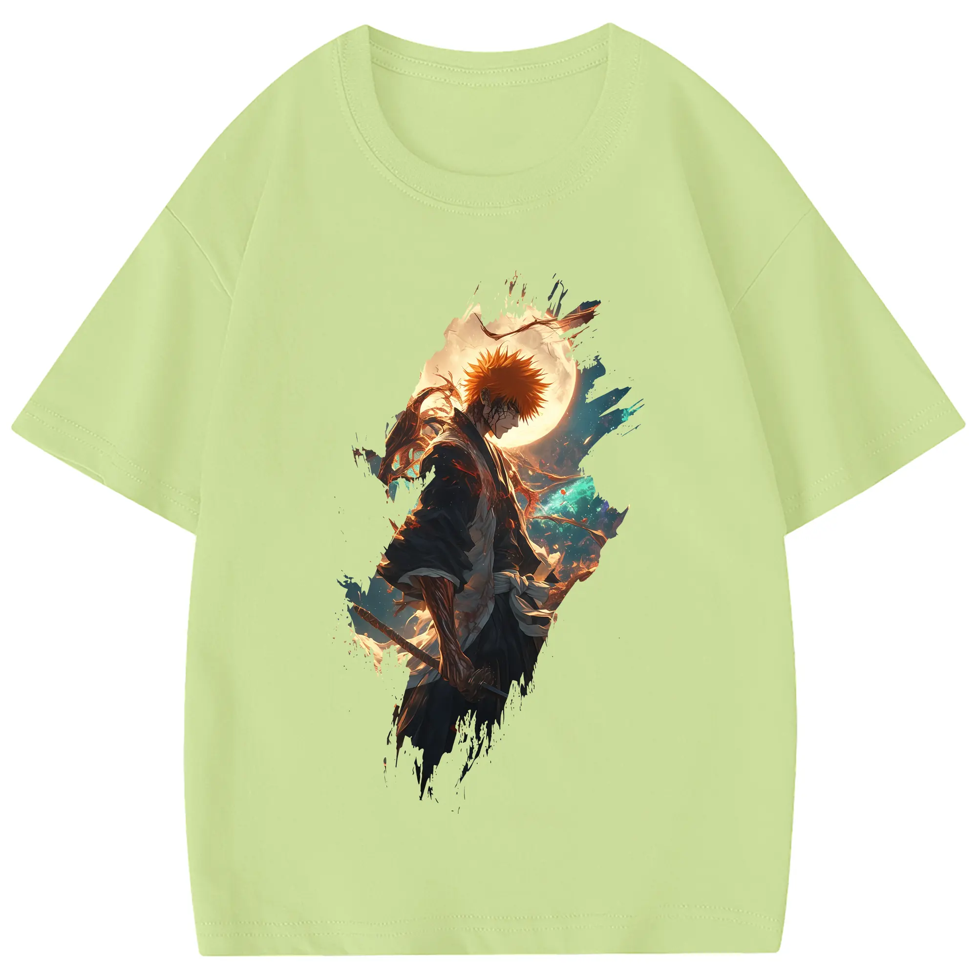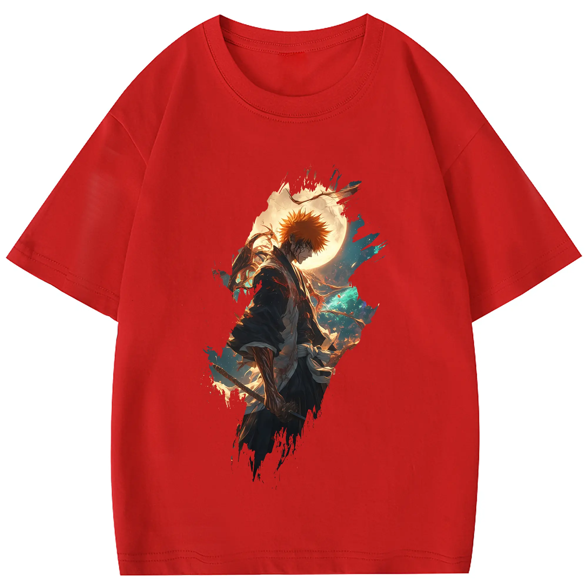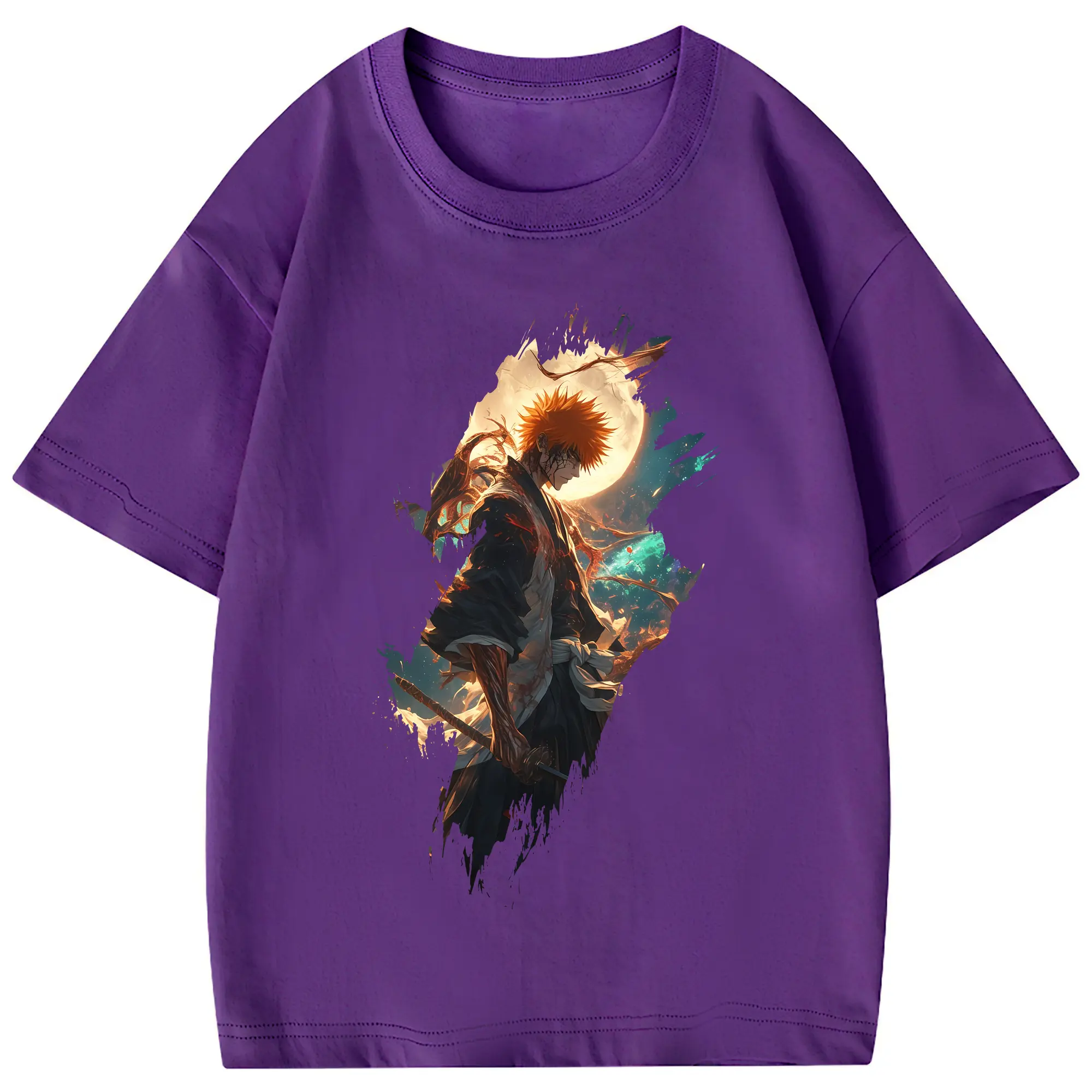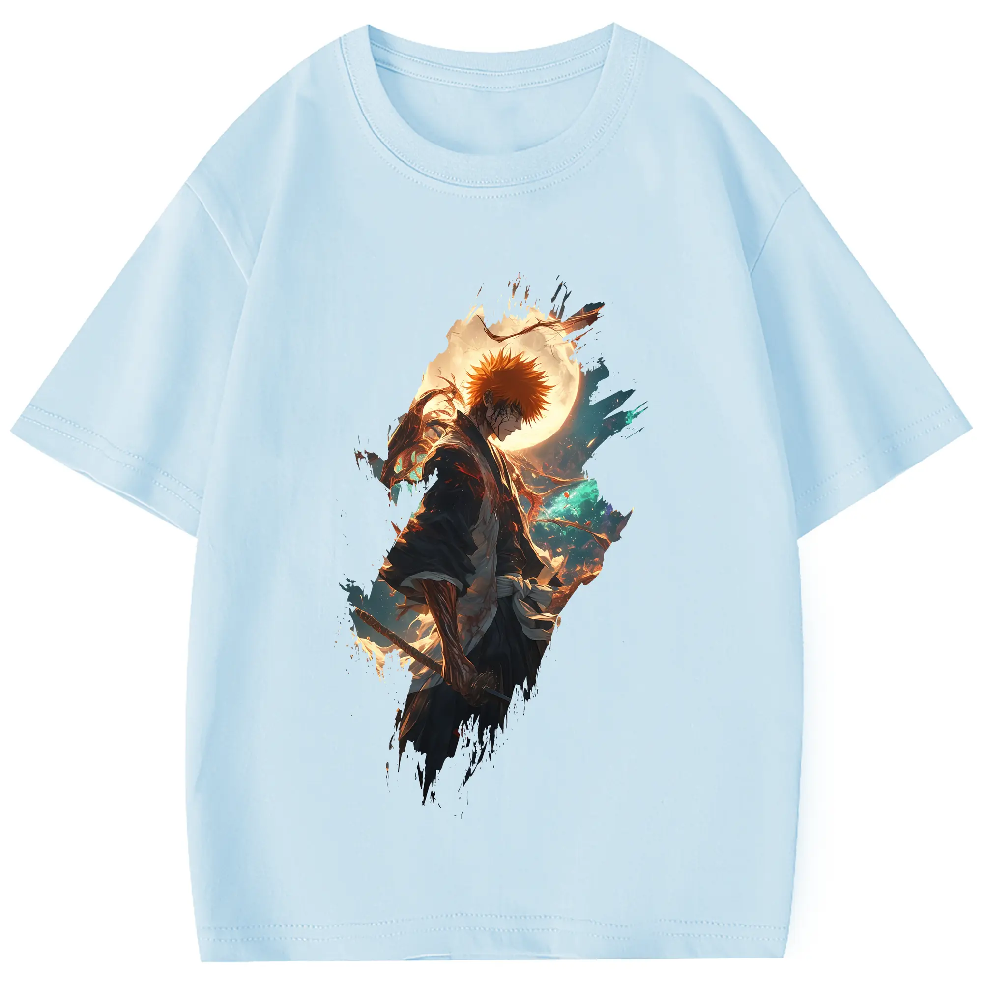 ブリーチ グッズ 黒崎 一護 - 綿100% 半袖Tシャツ ・ フロントプリント ・ 快適 通気性 ・ 日常使い 散歩 スポーツ用
