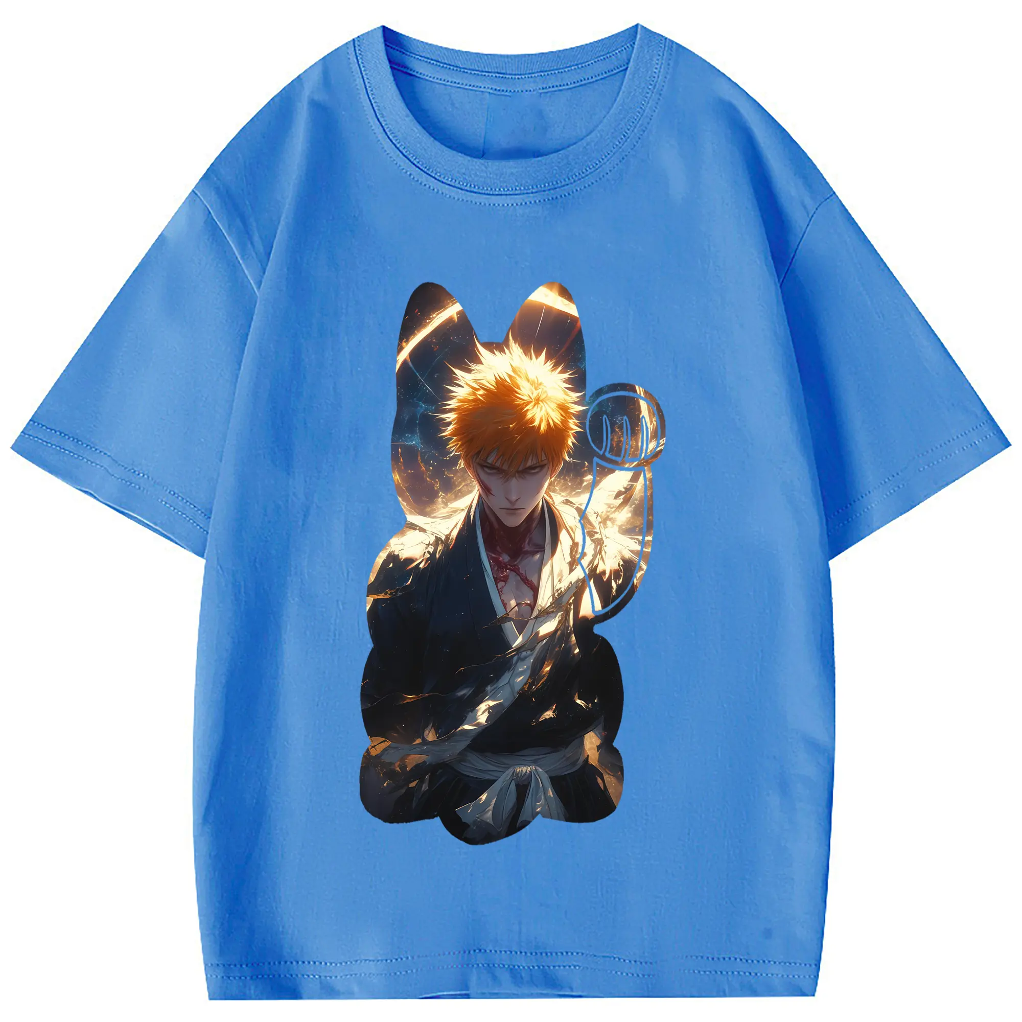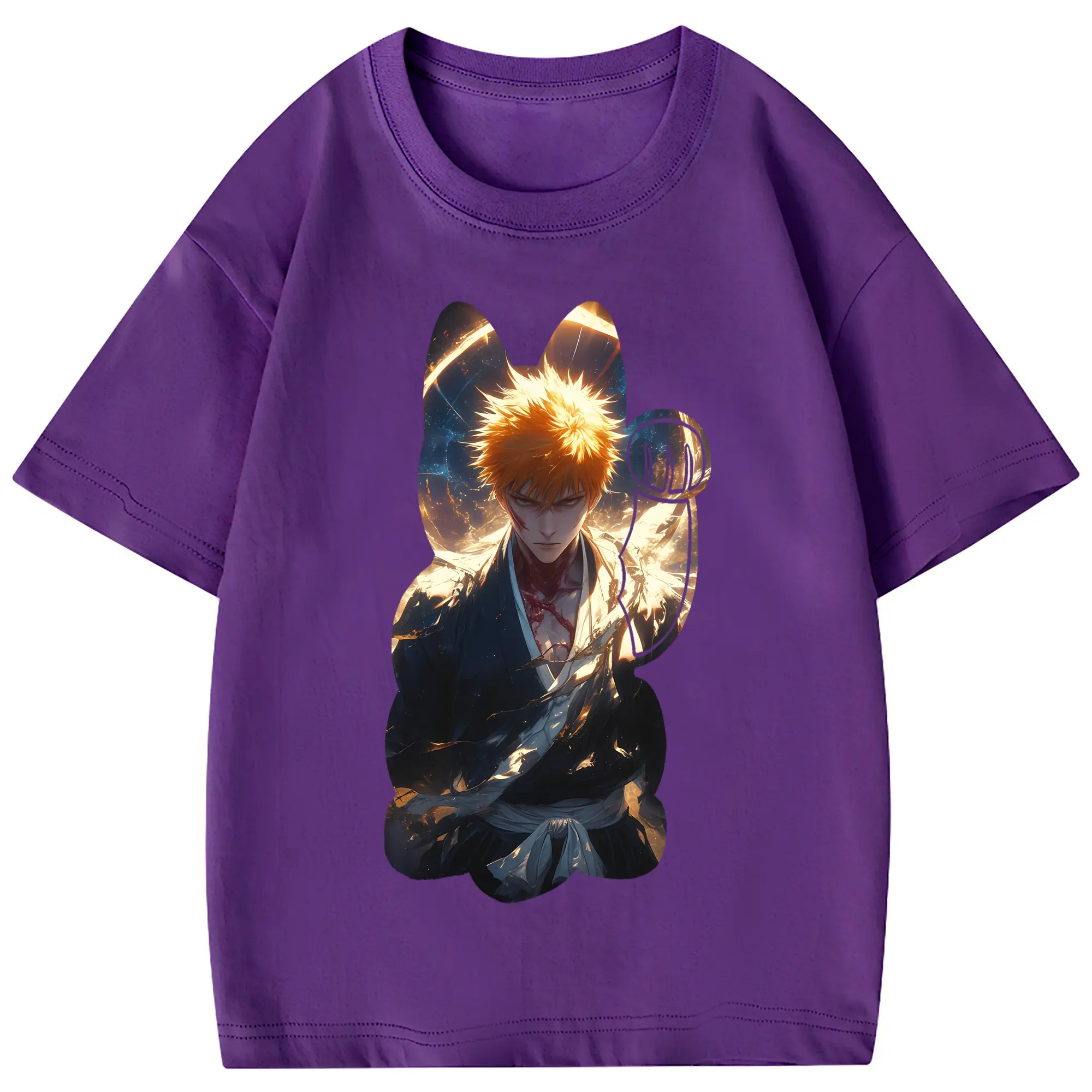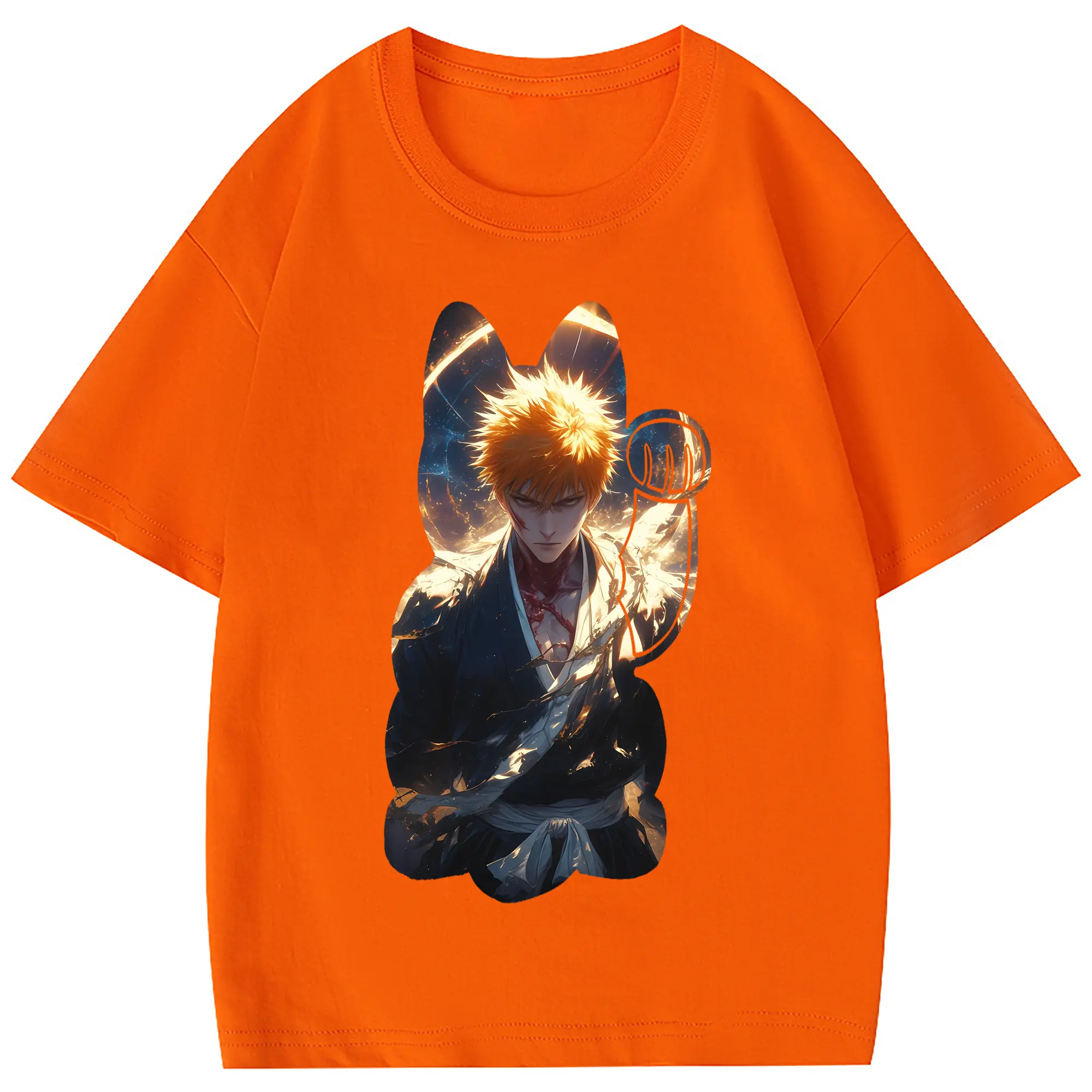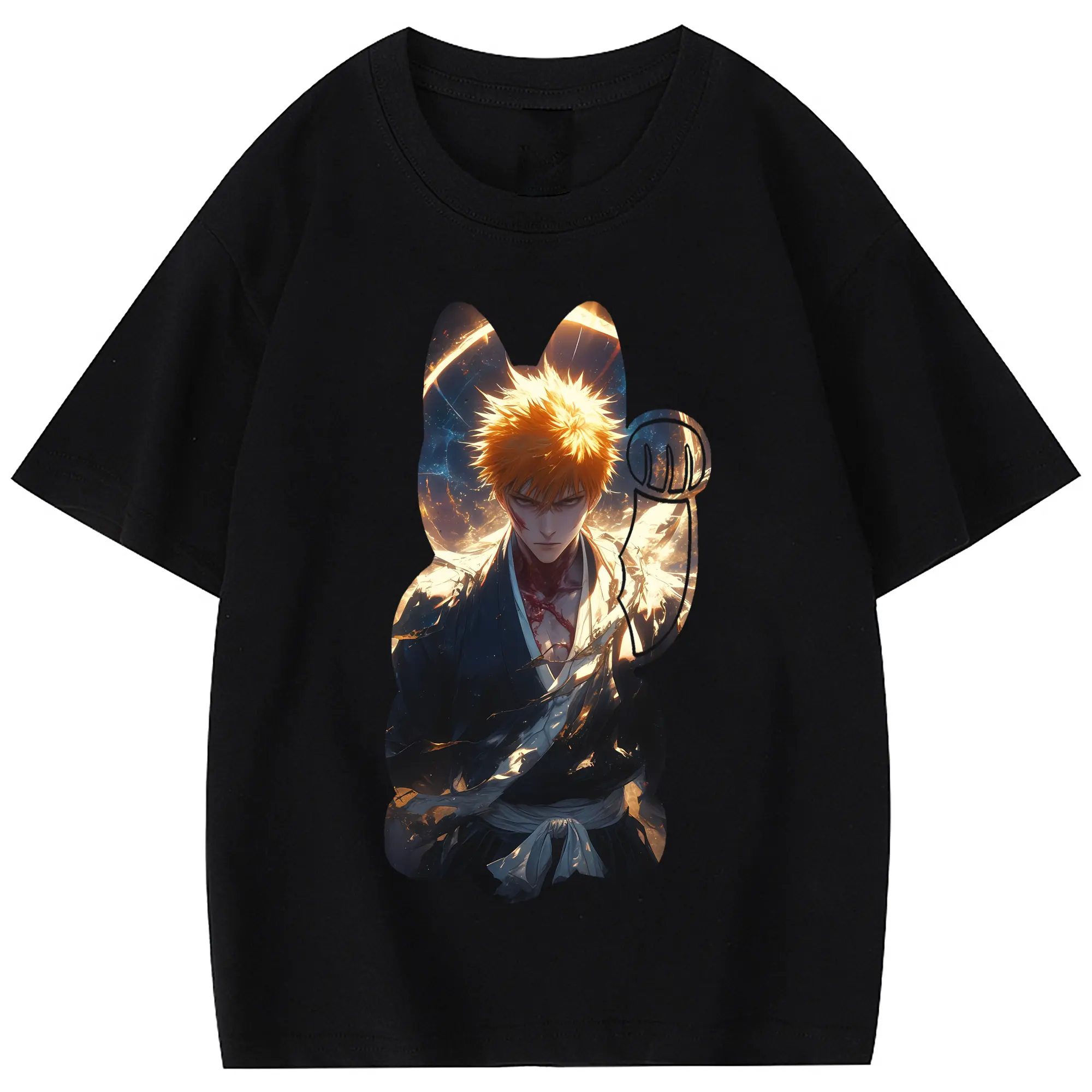 ブリーチ グッズ 黒崎 一護 - 綿100% 半袖Tシャツ ・ フロントプリント ・ 快適 通気性 ・ 日常使い 散歩 スポーツ用