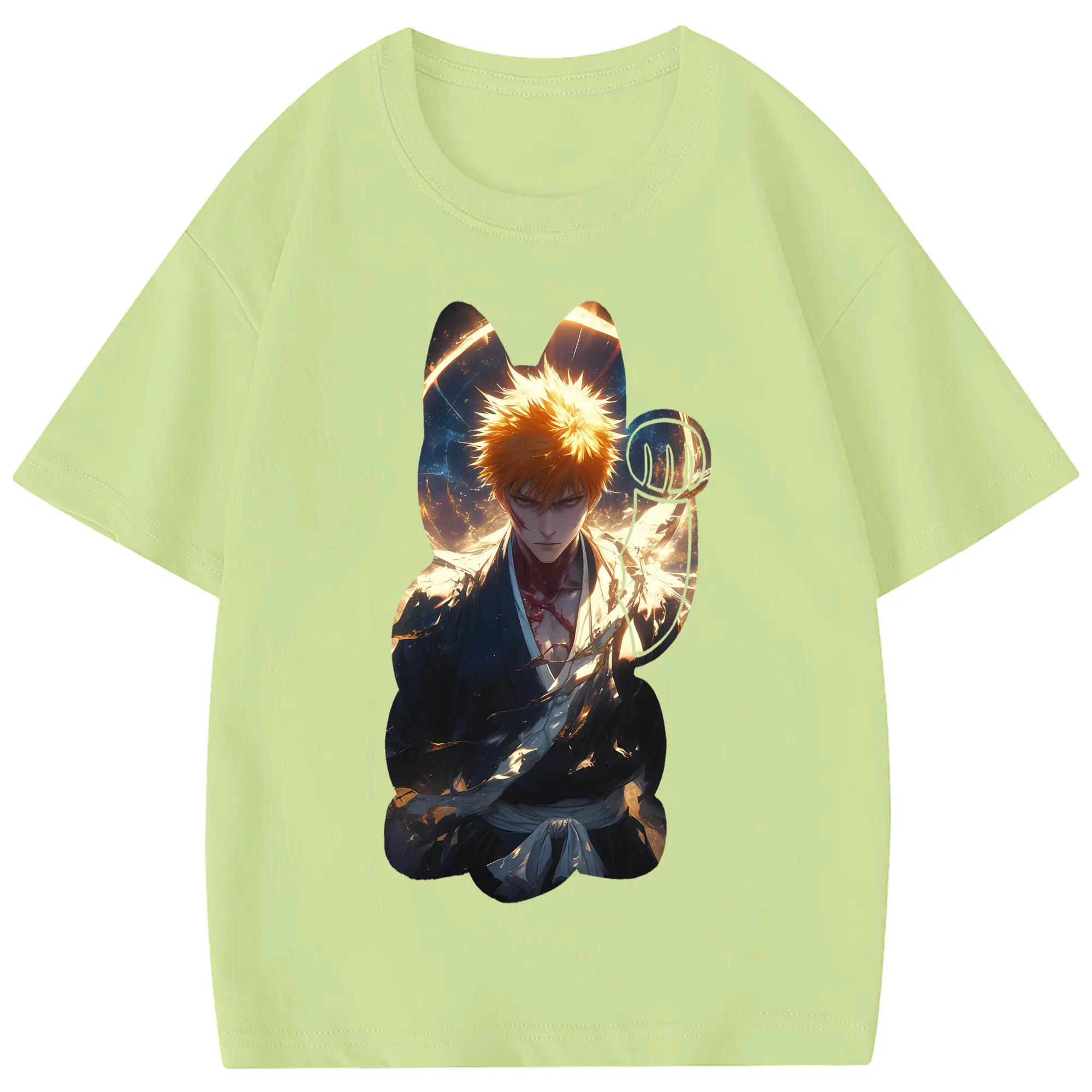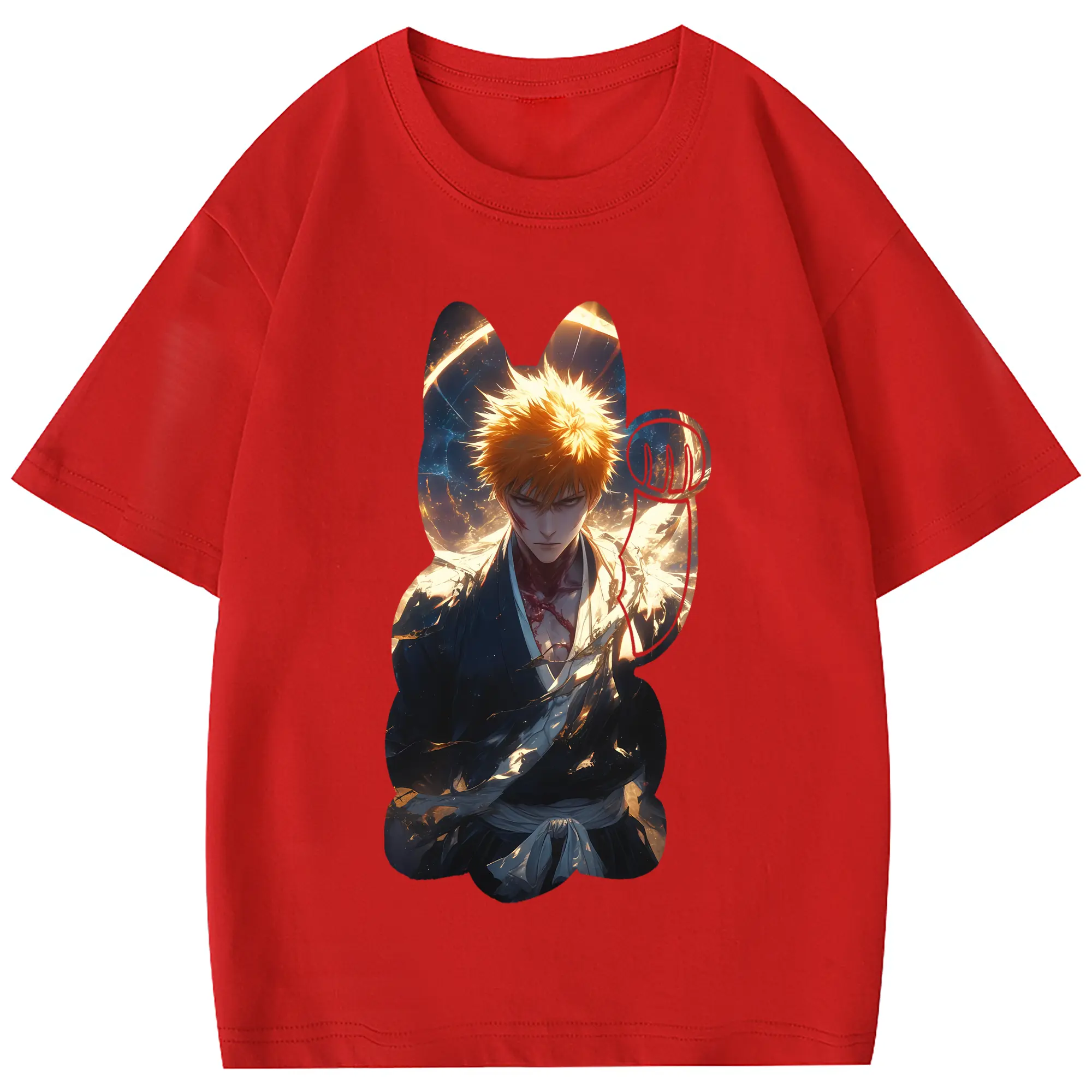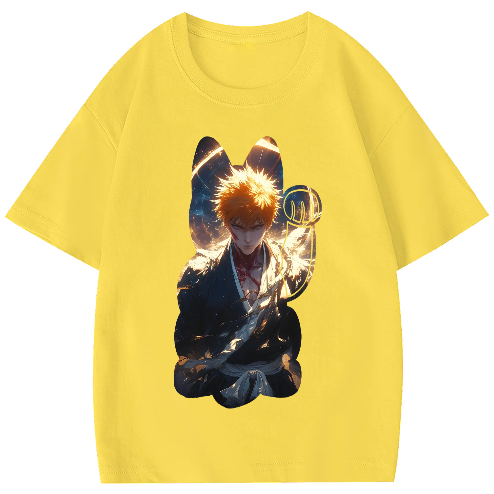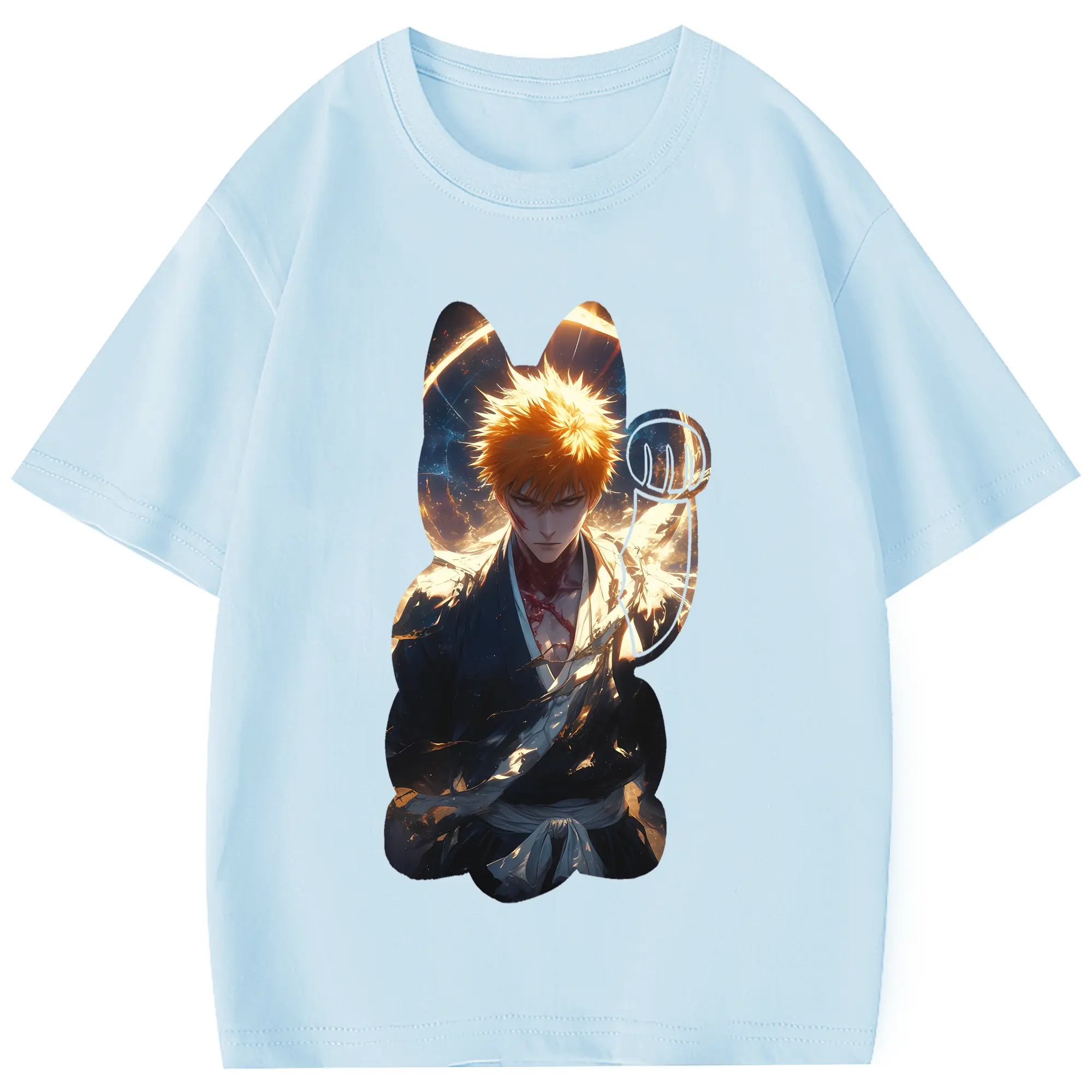 ブリーチ グッズ 黒崎 一護 - 綿100% 半袖Tシャツ ・ フロントプリント ・ 快適 通気性 ・ 日常使い 散歩 スポーツ用