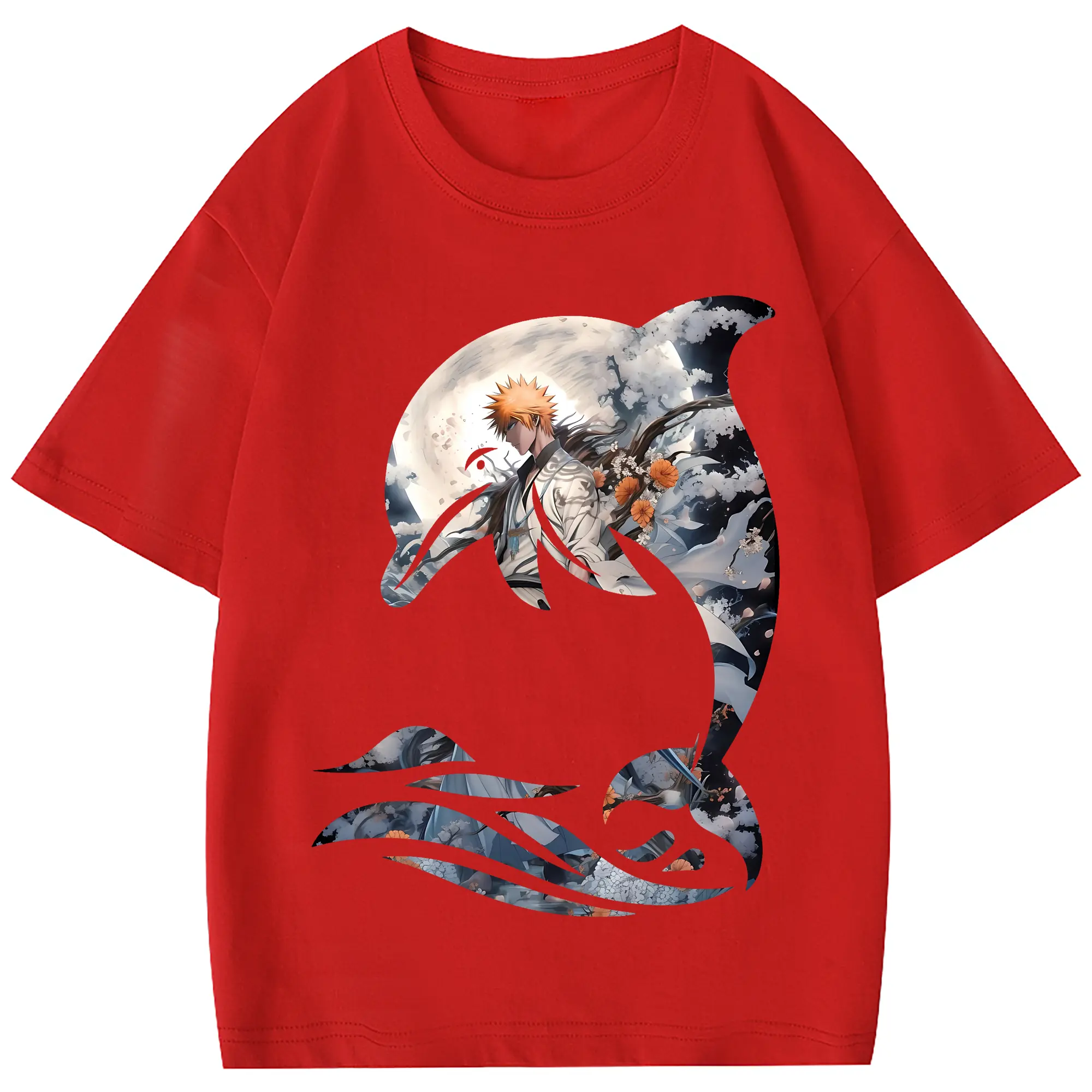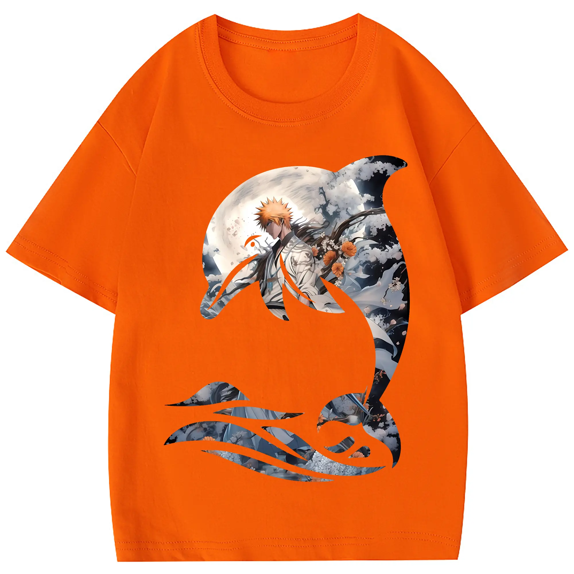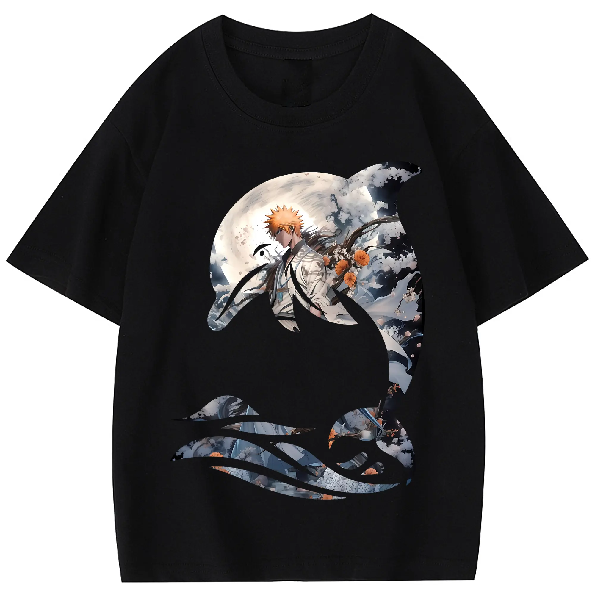 ブリーチ グッズ 黒崎 一護 - 綿100% 半袖Tシャツ ・ フロントプリント ・ 快適 通気性 ・ 日常使い 散歩 スポーツ用