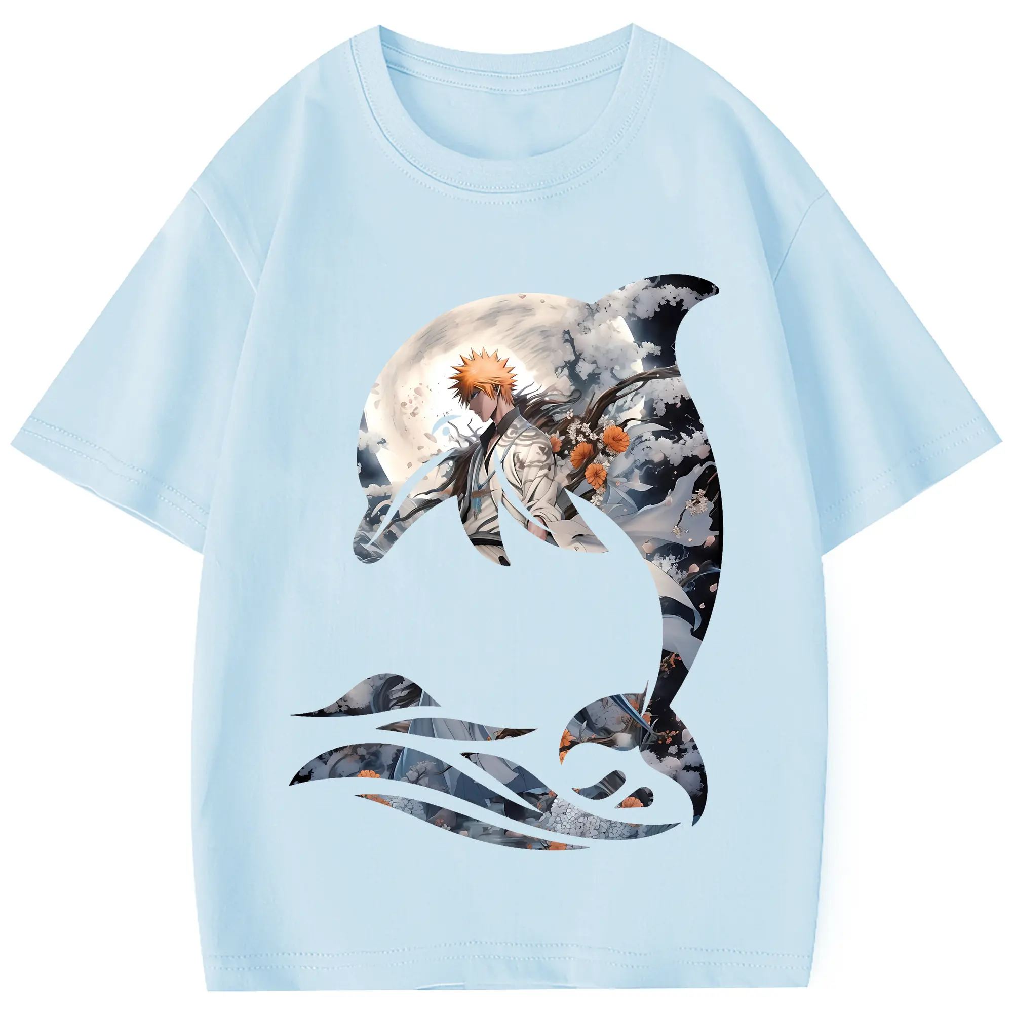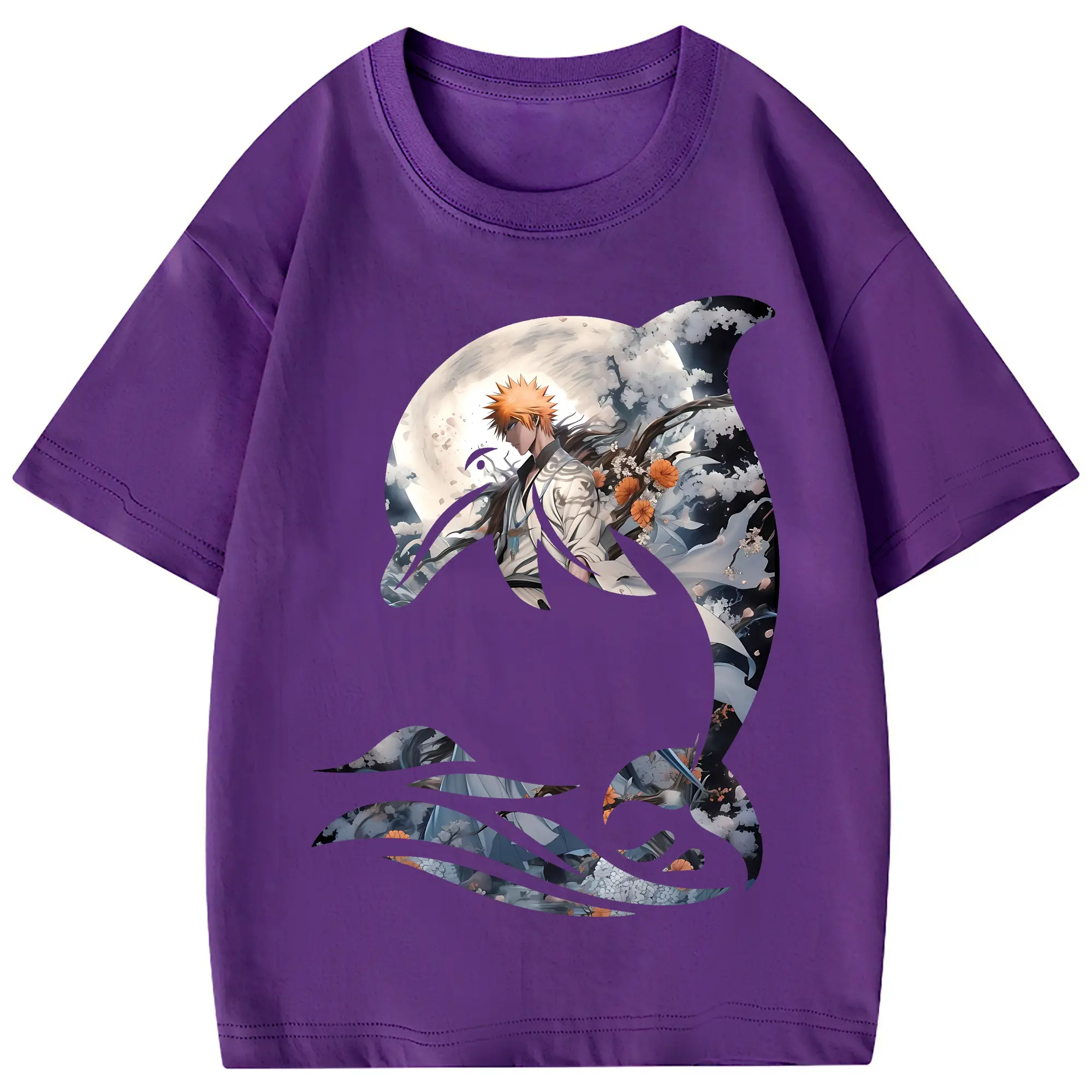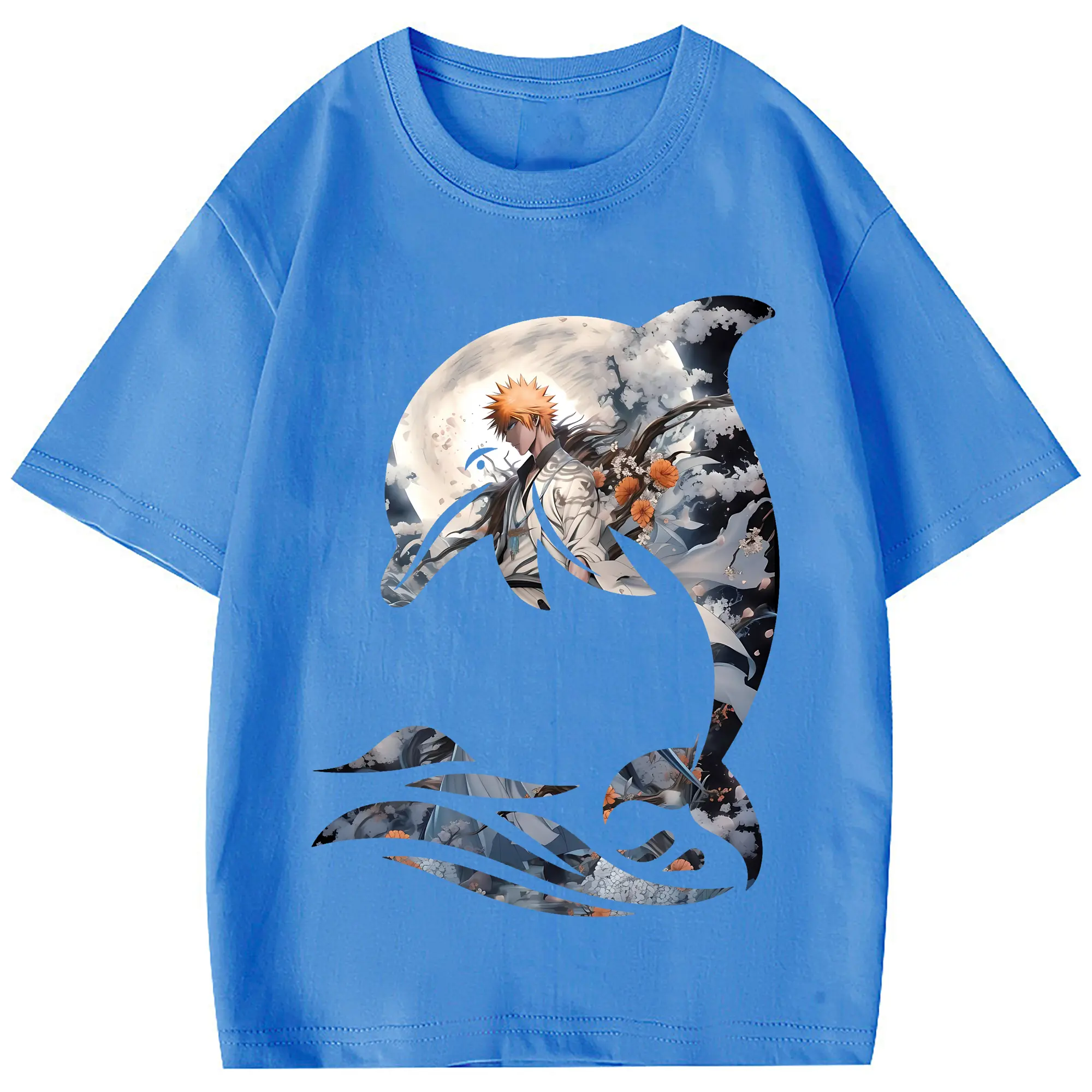ブリーチ グッズ 黒崎 一護 - 綿100% 半袖Tシャツ ・ フロントプリント ・ 快適 通気性 ・ 日常使い 散歩 スポーツ用