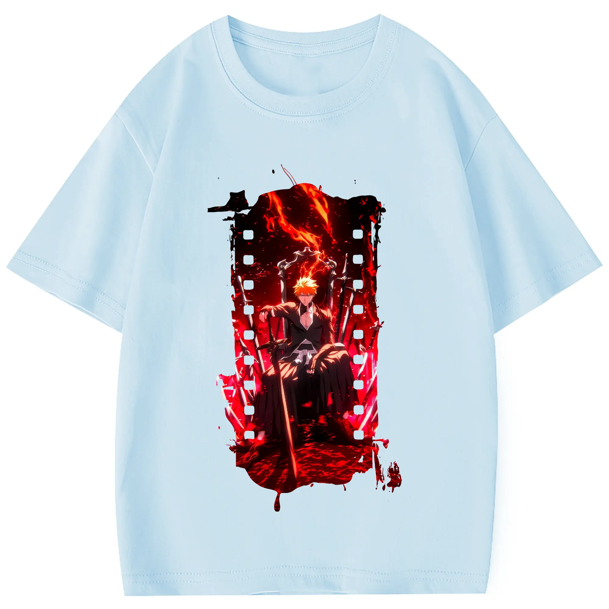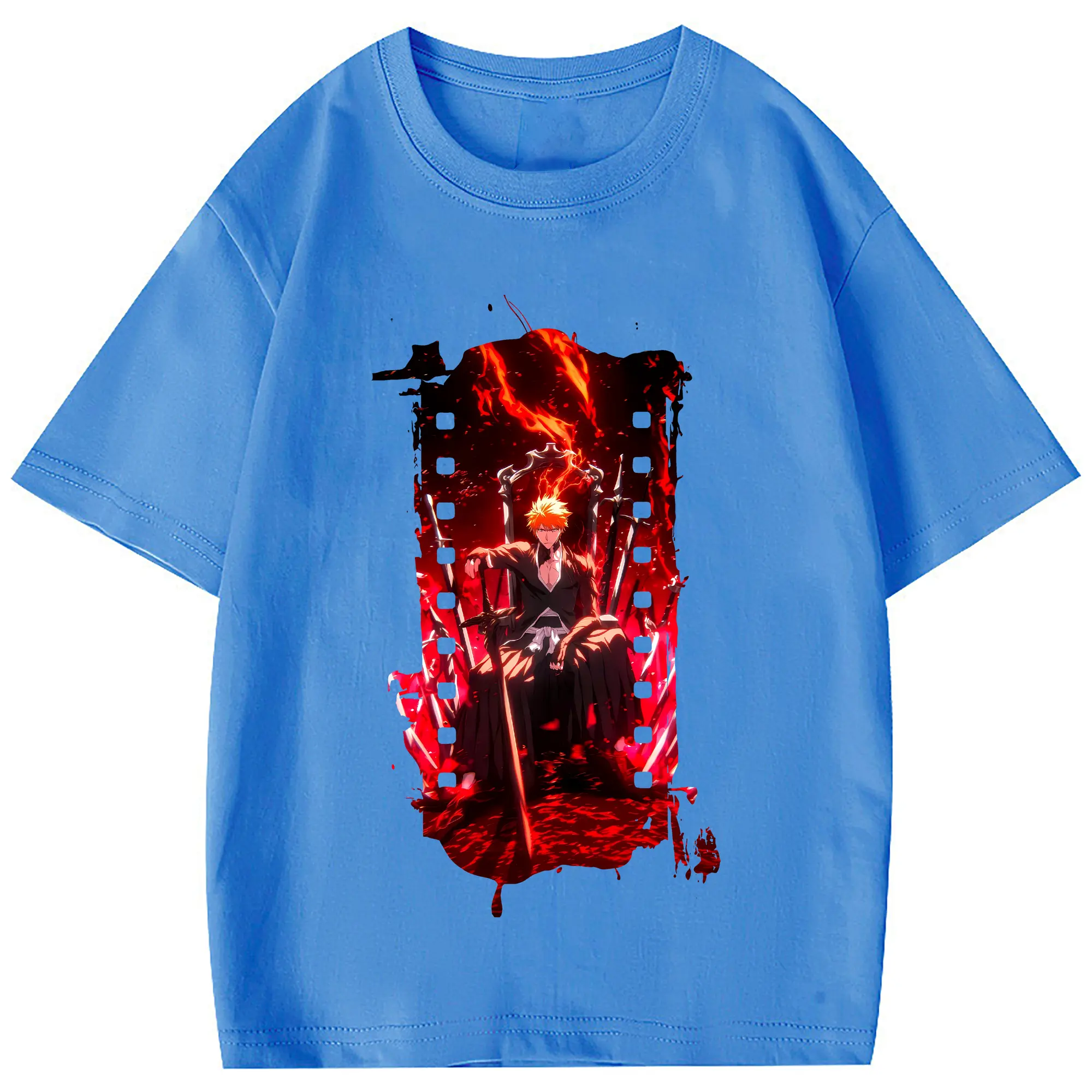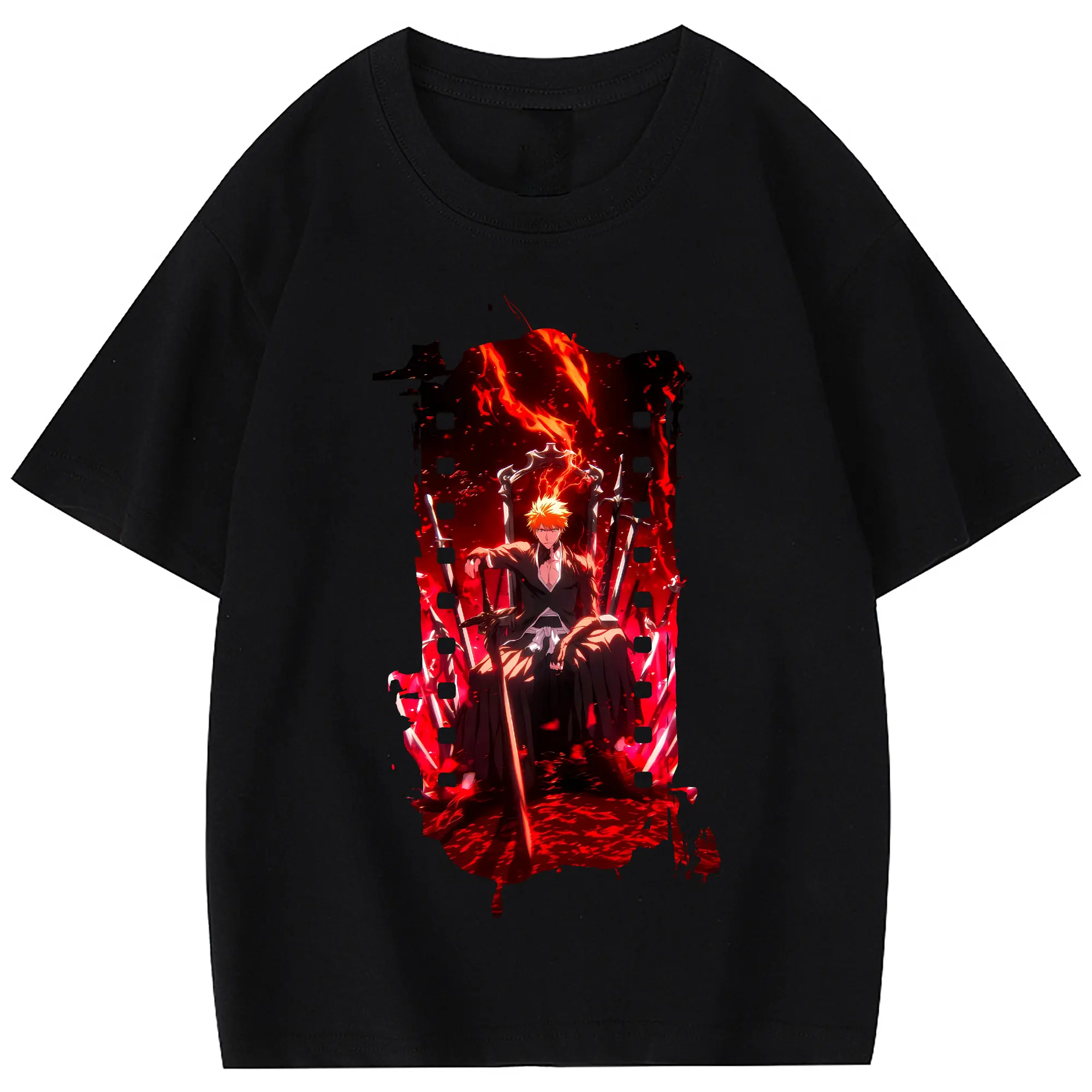 ブリーチ グッズ 黒崎 一護 - 綿100% 半袖Tシャツ ・ フロントプリント ・ 快適 通気性 ・ 日常使い 散歩 スポーツ用