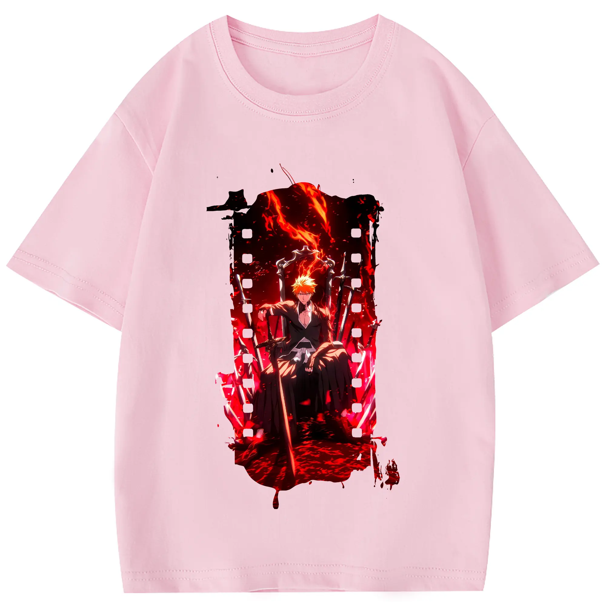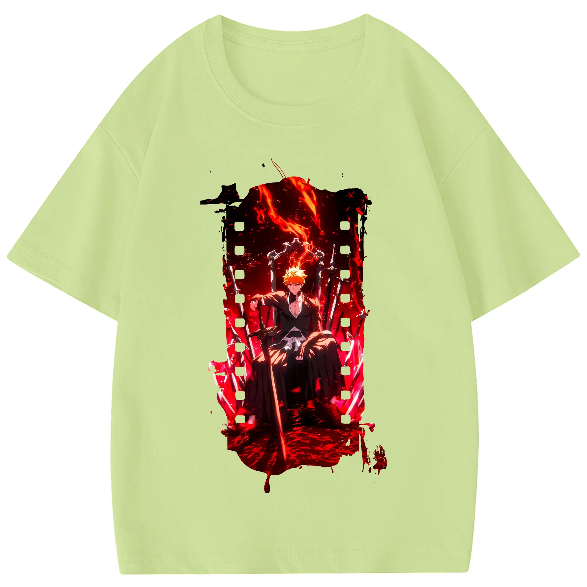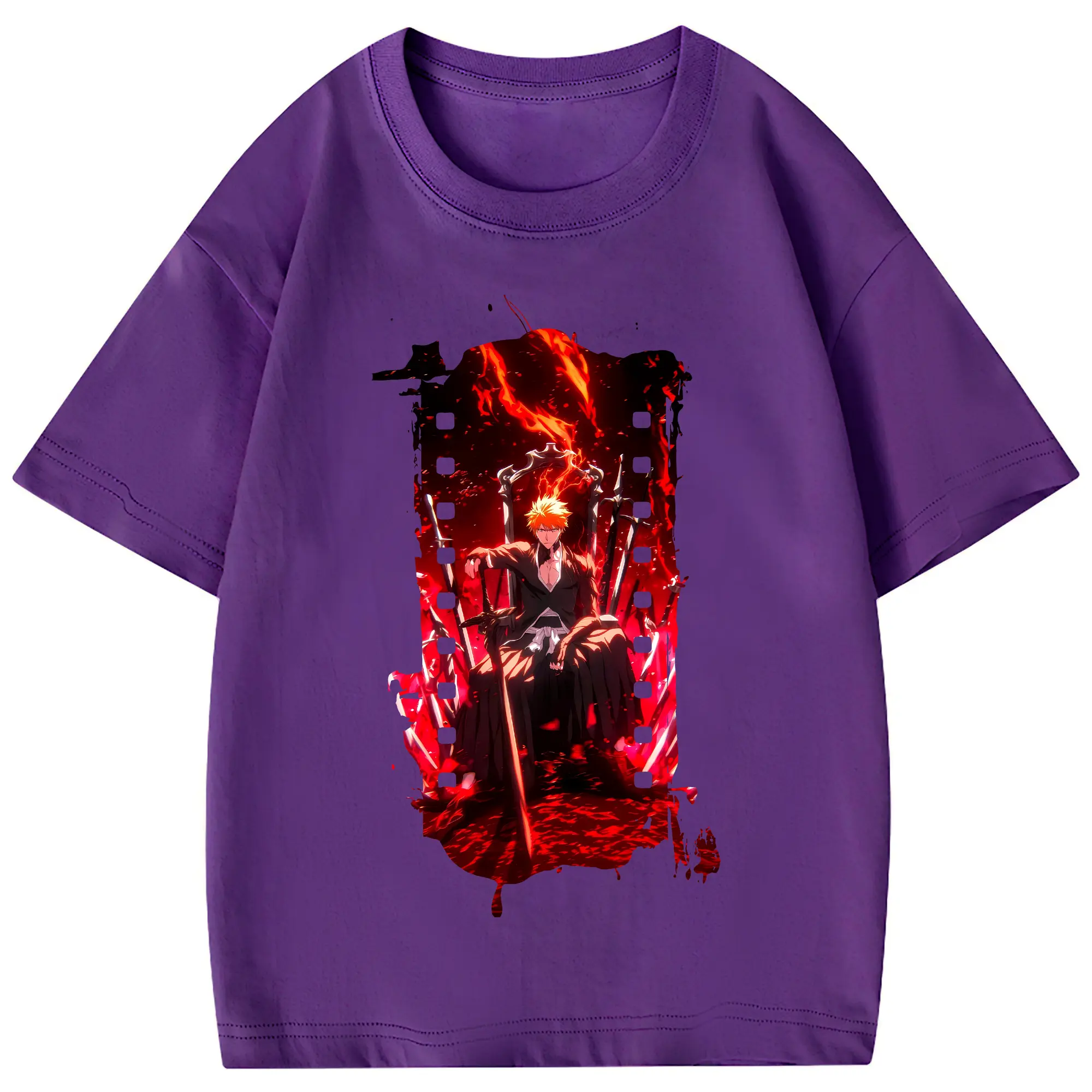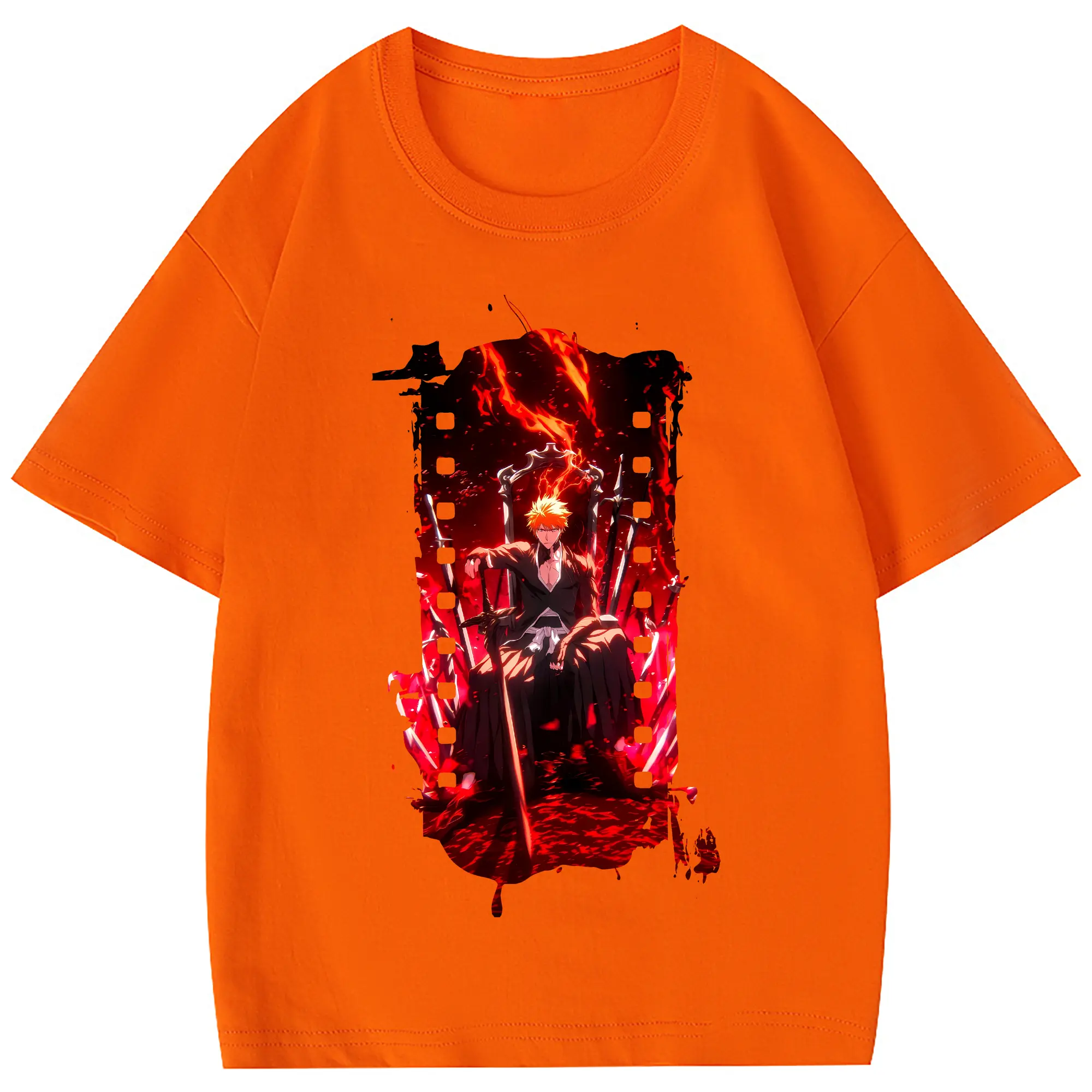 ブリーチ グッズ 黒崎 一護 - 綿100% 半袖Tシャツ ・ フロントプリント ・ 快適 通気性 ・ 日常使い 散歩 スポーツ用