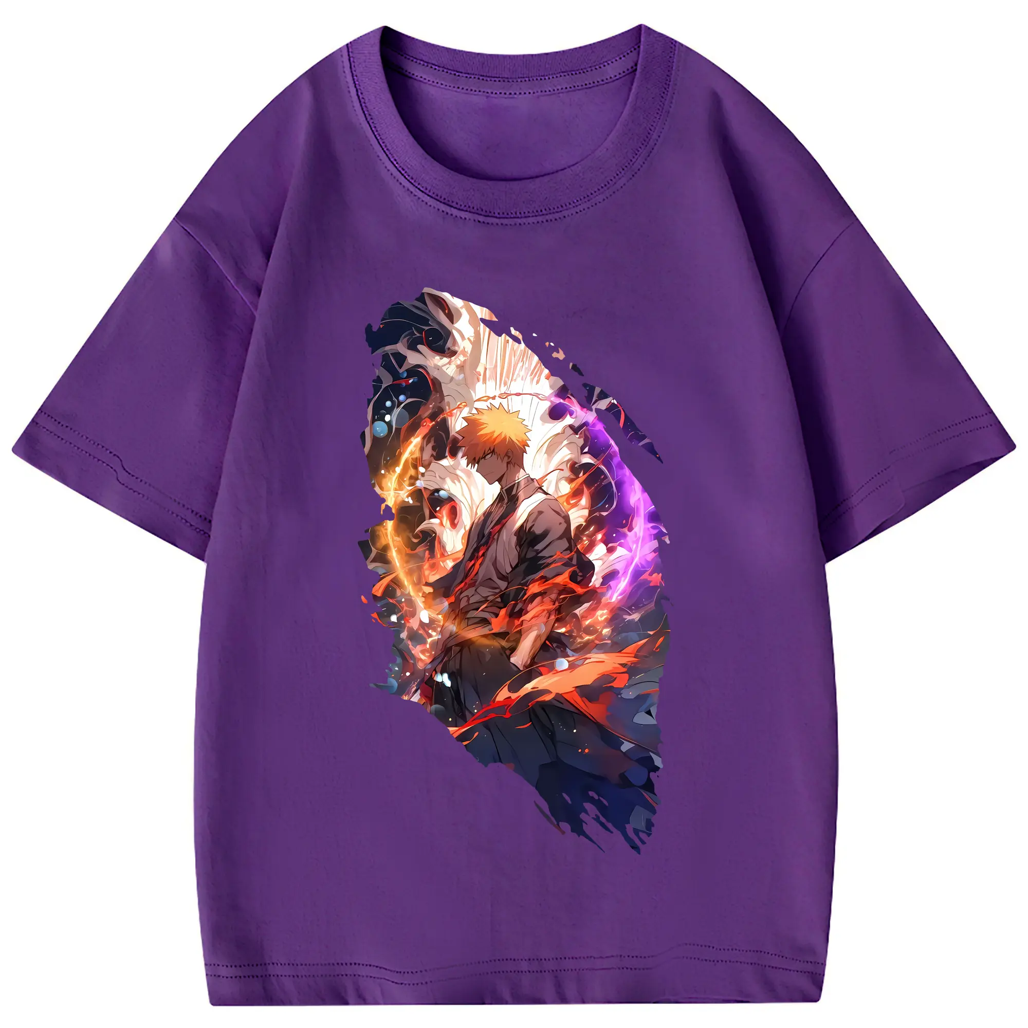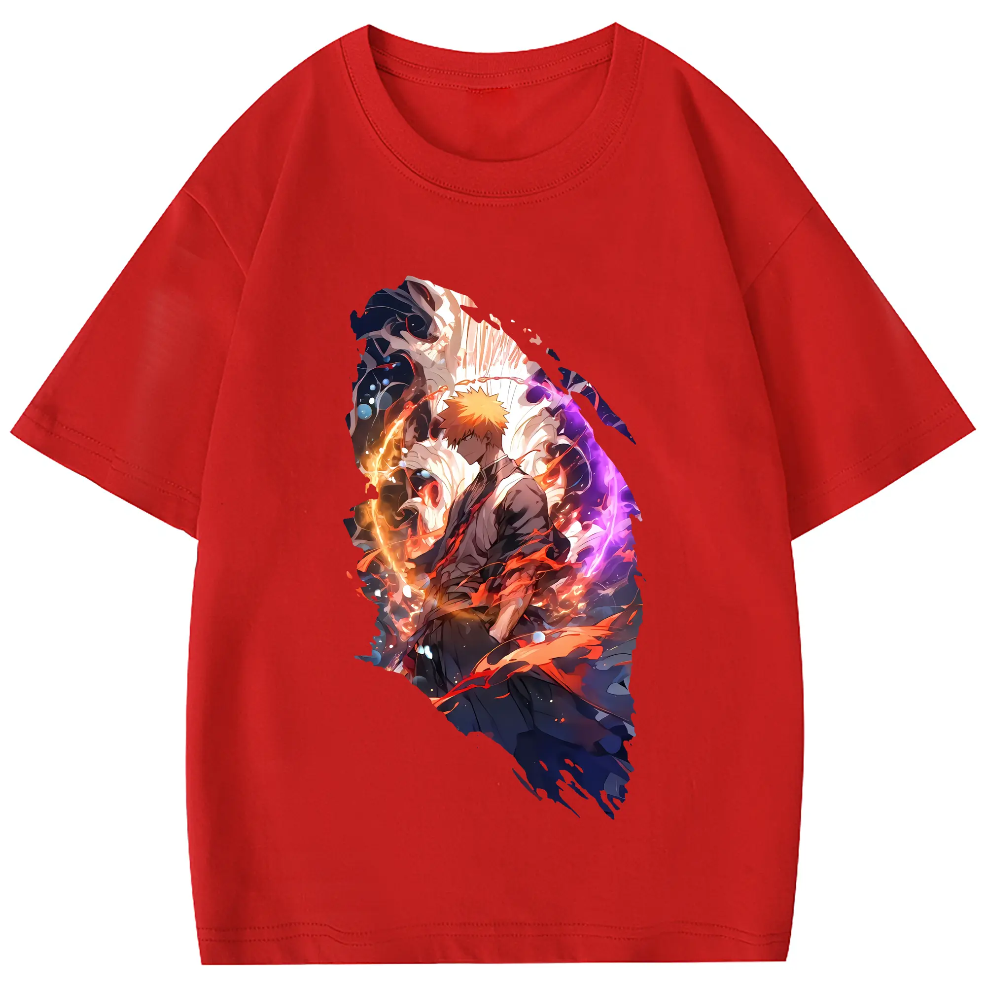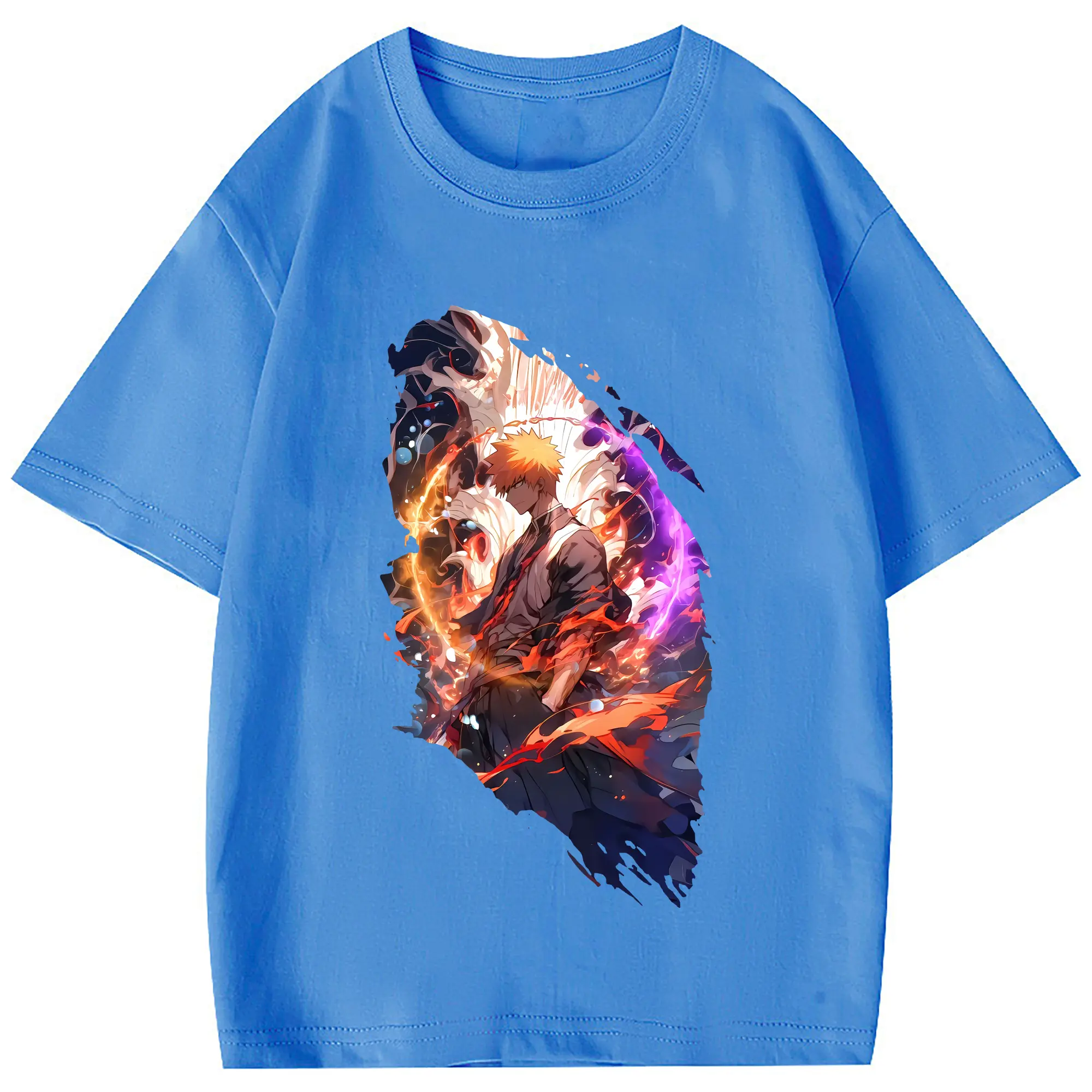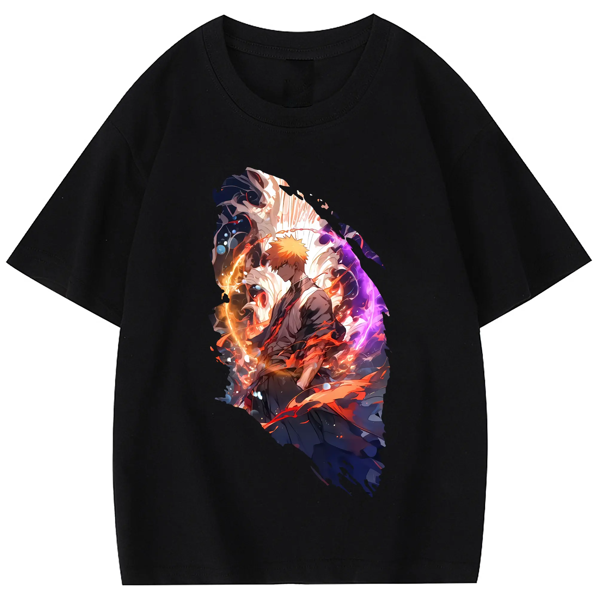 ブリーチ グッズ 黒崎 一護 - 綿100% 半袖Tシャツ ・ フロントプリント ・ 快適 通気性 ・ 日常使い 散歩 スポーツ用