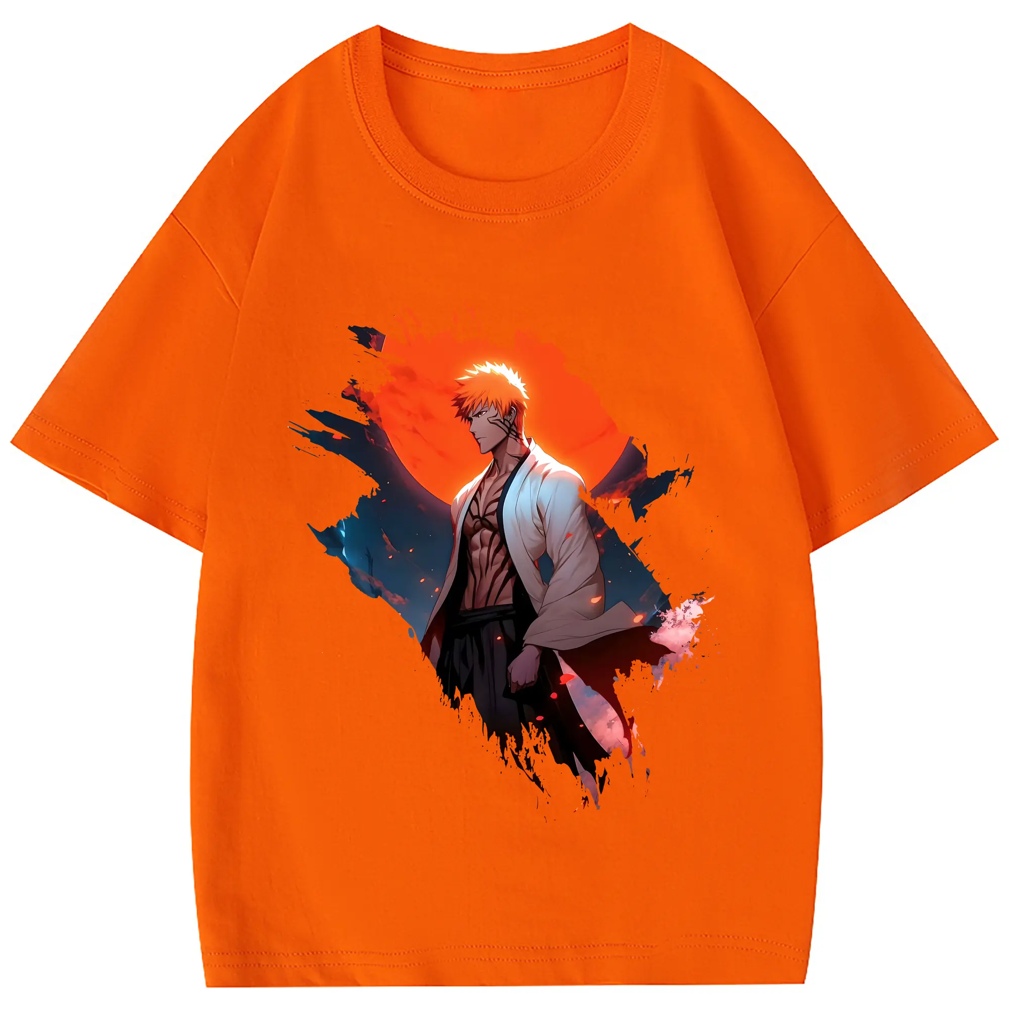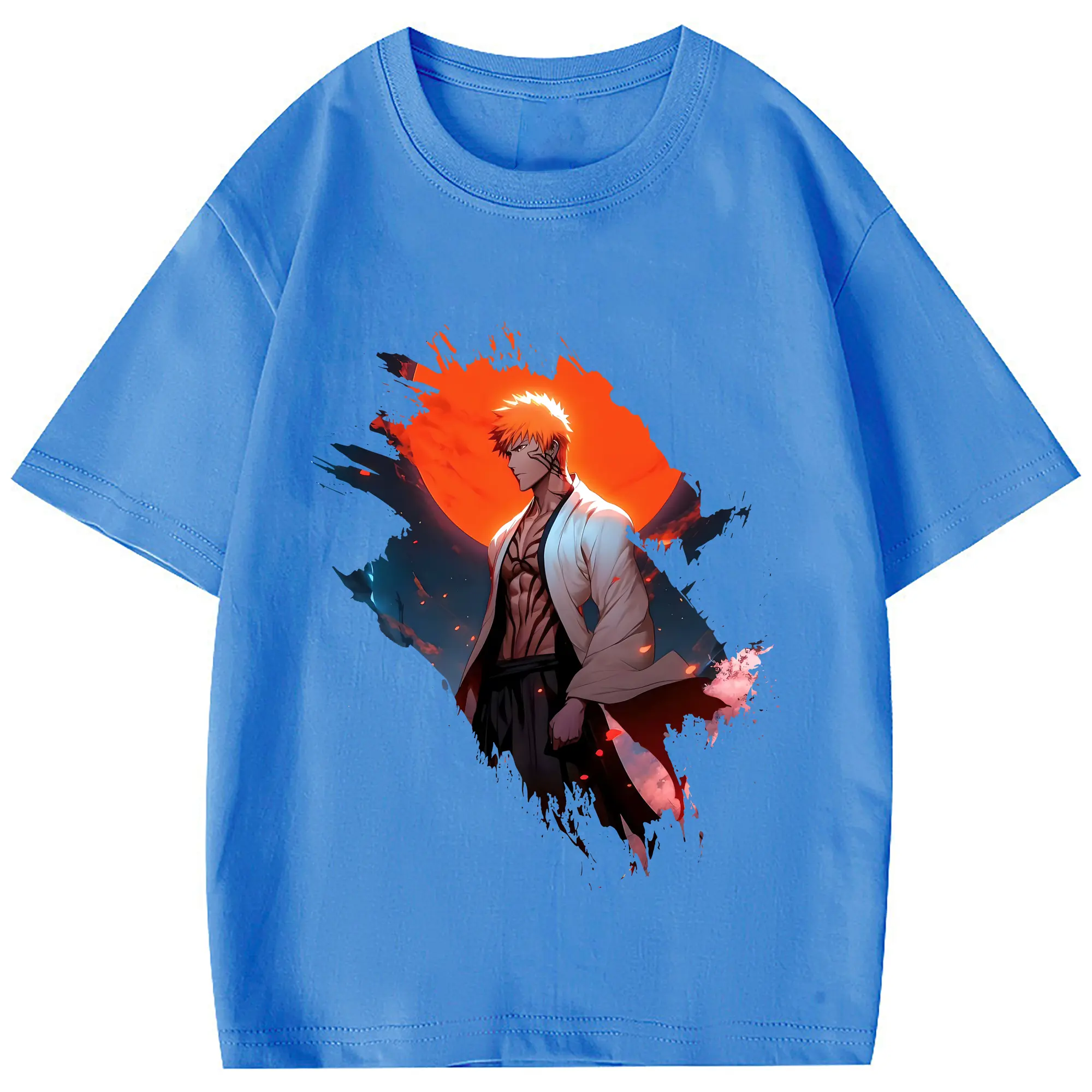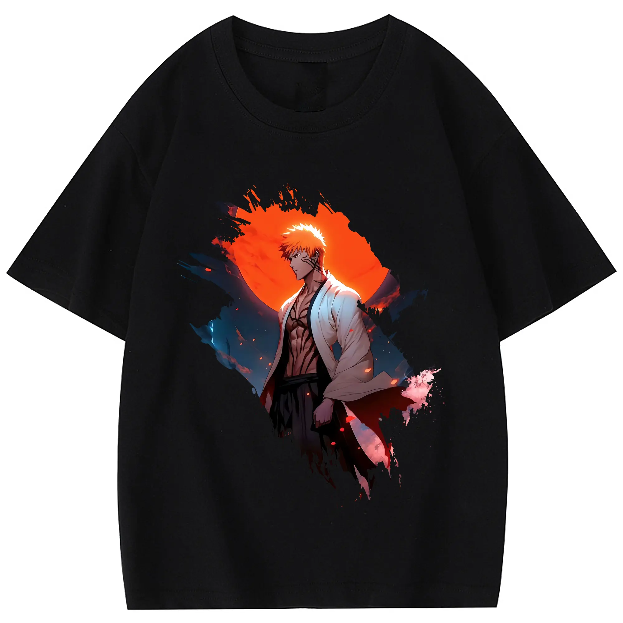 ブリーチ グッズ 黒崎 一護 - 綿100% 半袖Tシャツ ・ フロントプリント ・ 快適 通気性 ・ 日常使い 散歩 スポーツ用