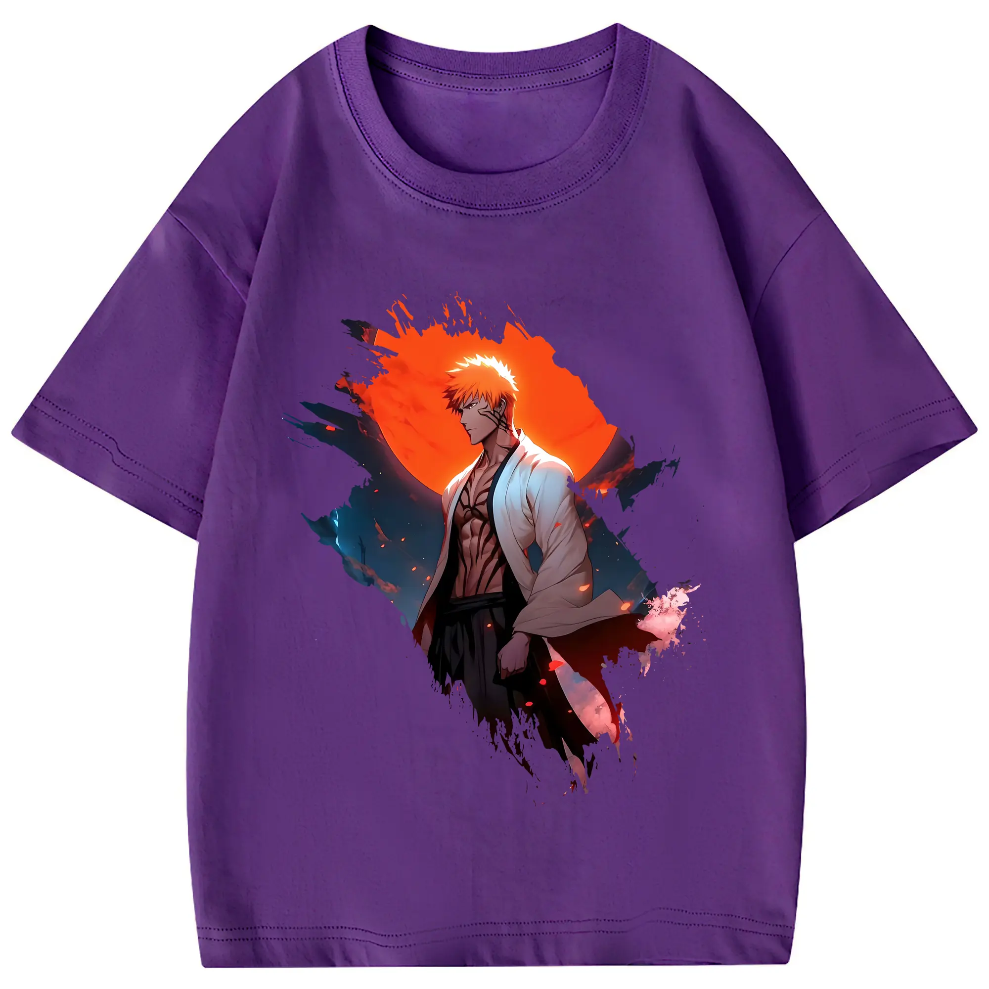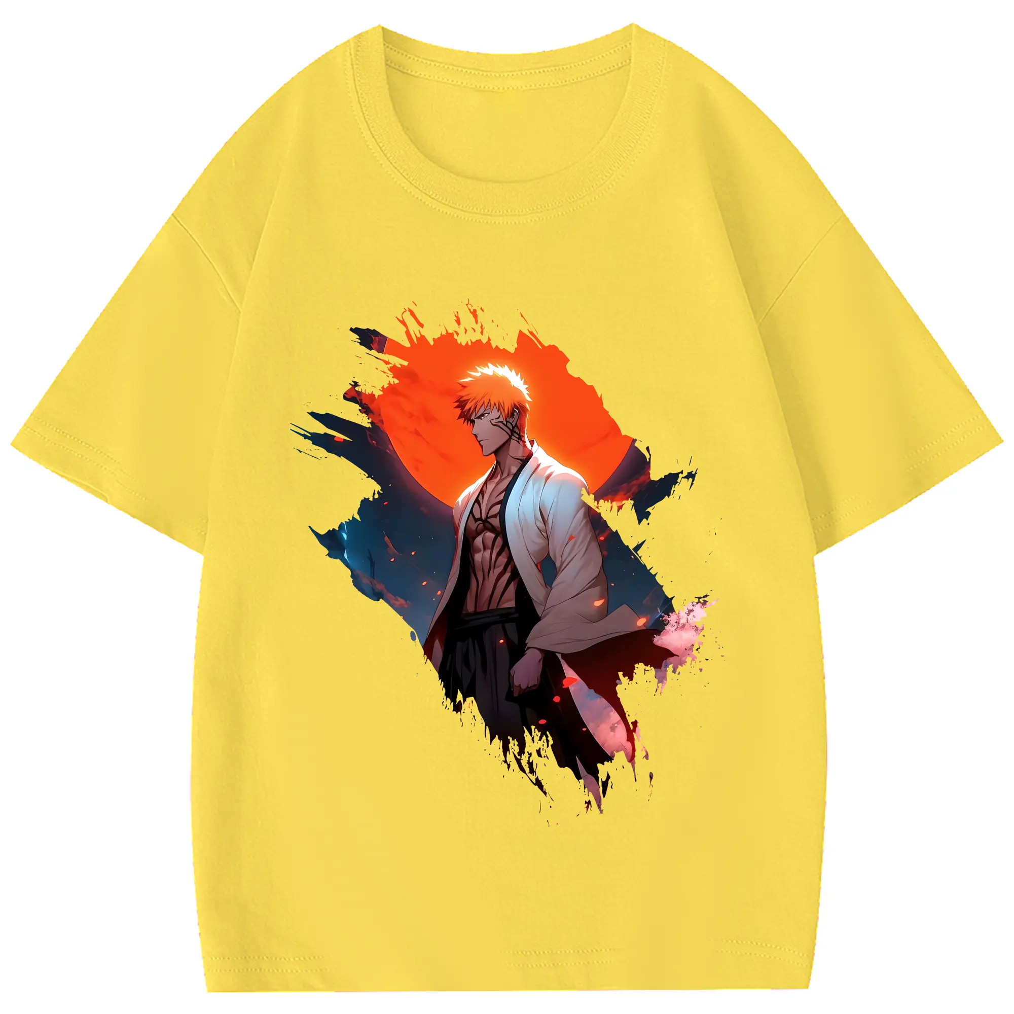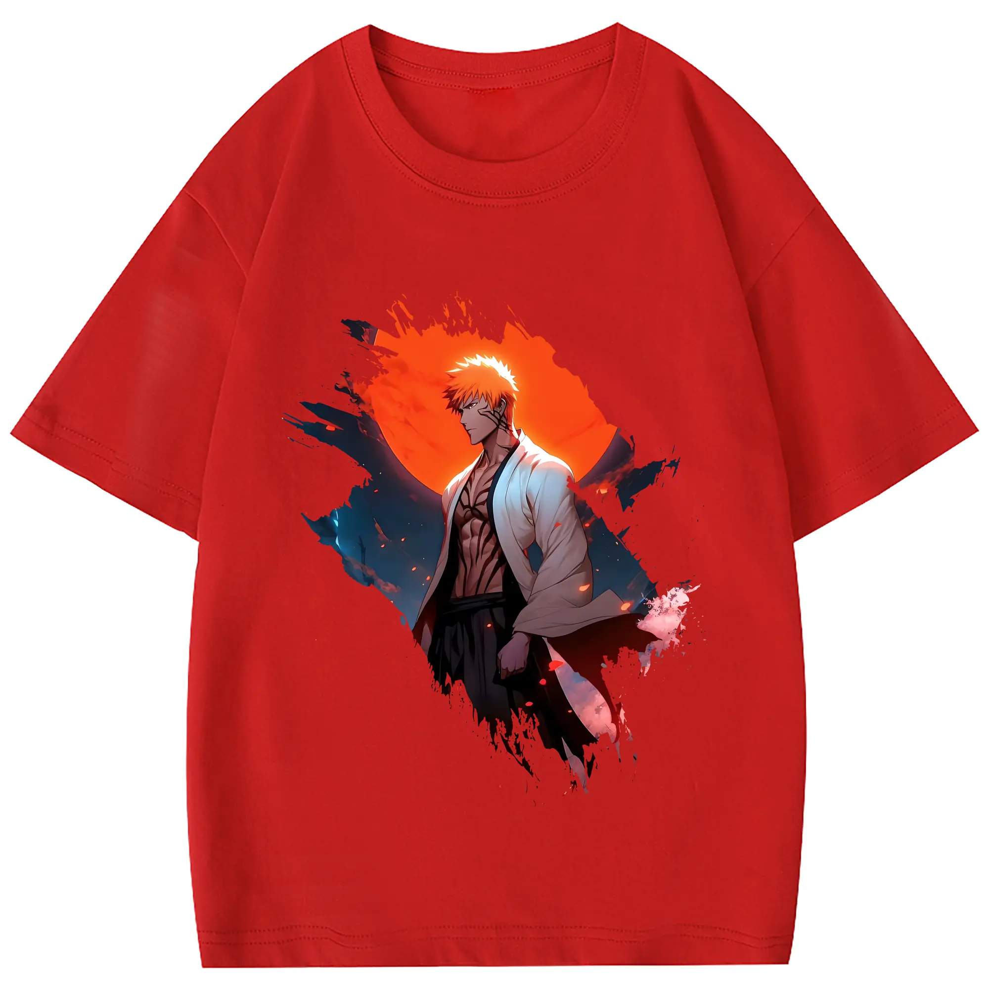 ブリーチ グッズ 黒崎 一護 - 綿100% 半袖Tシャツ ・ フロントプリント ・ 快適 通気性 ・ 日常使い 散歩 スポーツ用