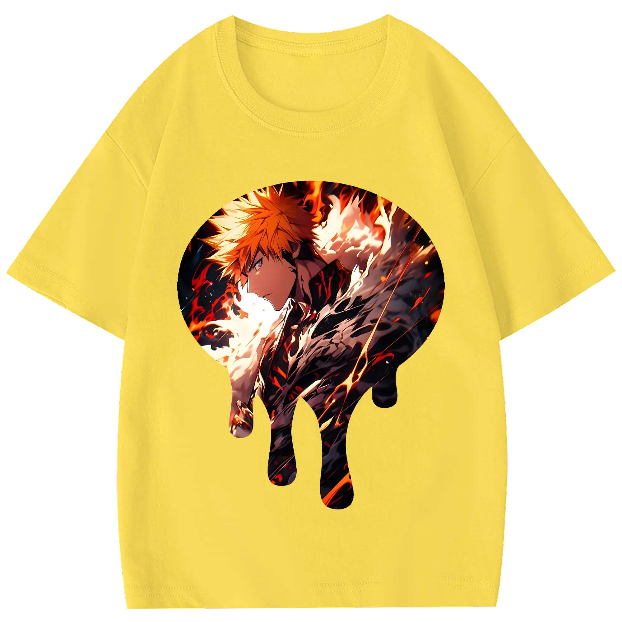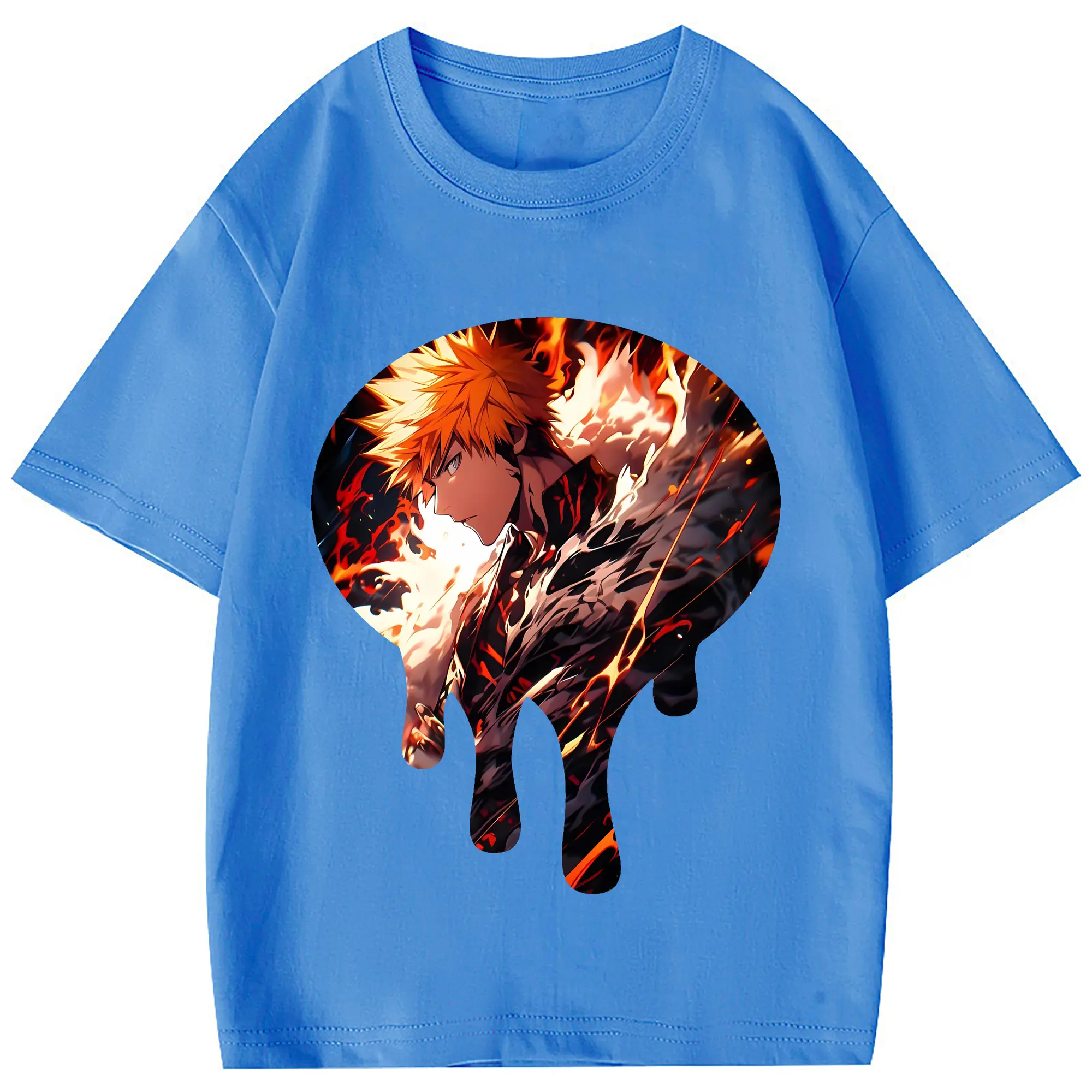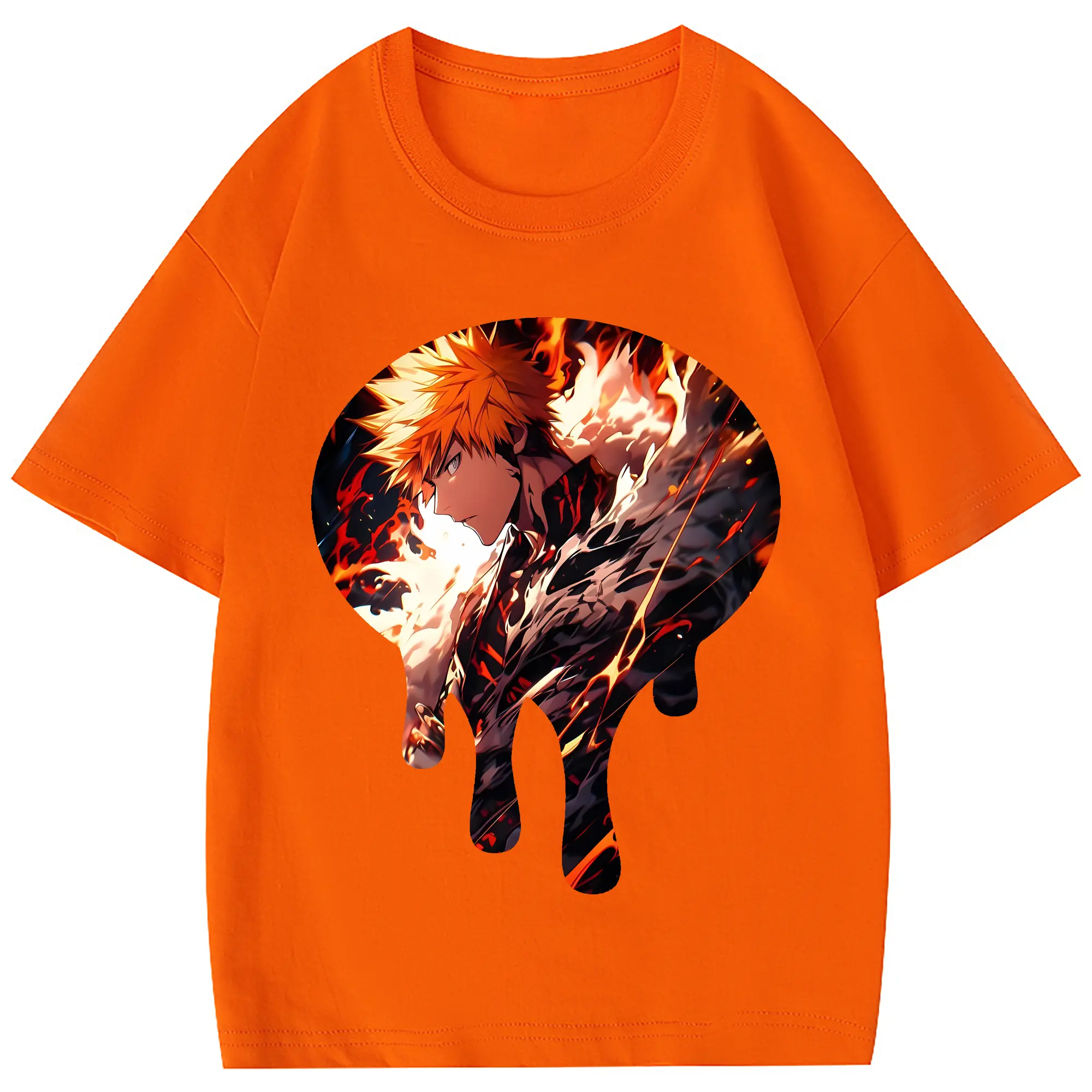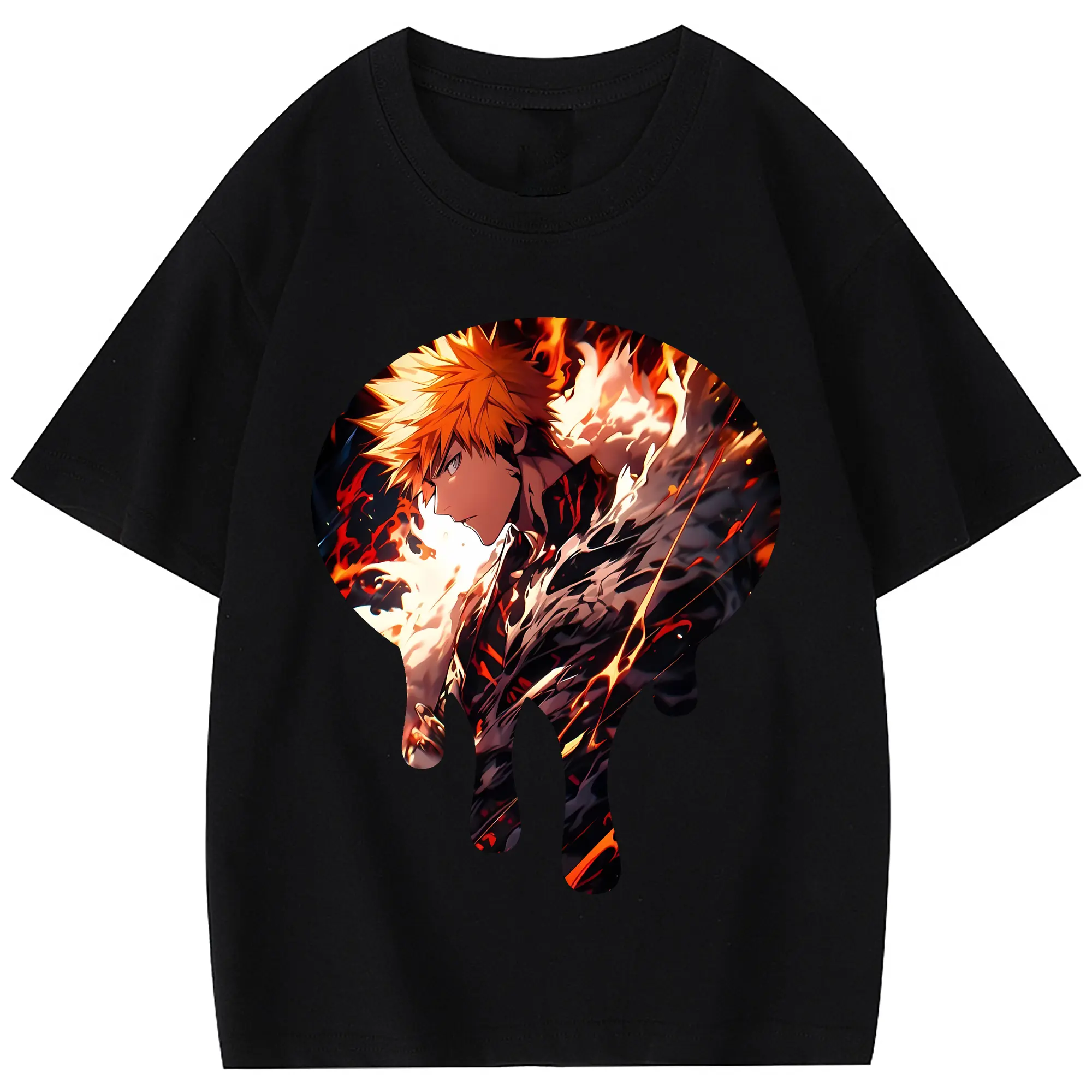 ブリーチ グッズ 黒崎 一護 - 綿100% 半袖Tシャツ ・ フロントプリント ・ 快適 通気性 ・ 日常使い 散歩 スポーツ用
