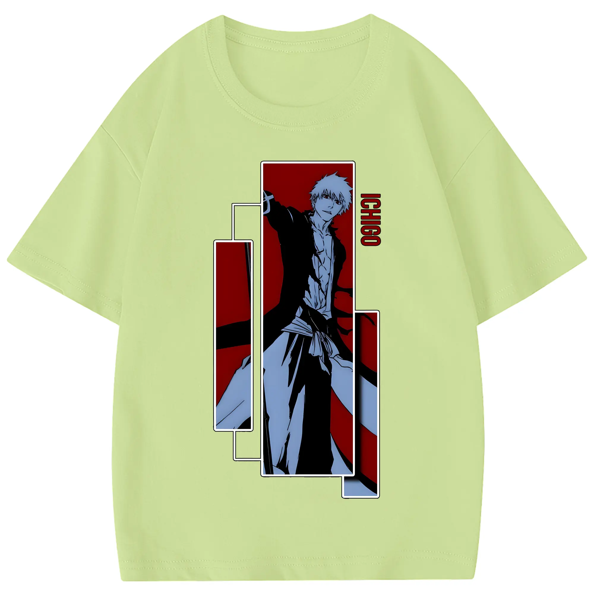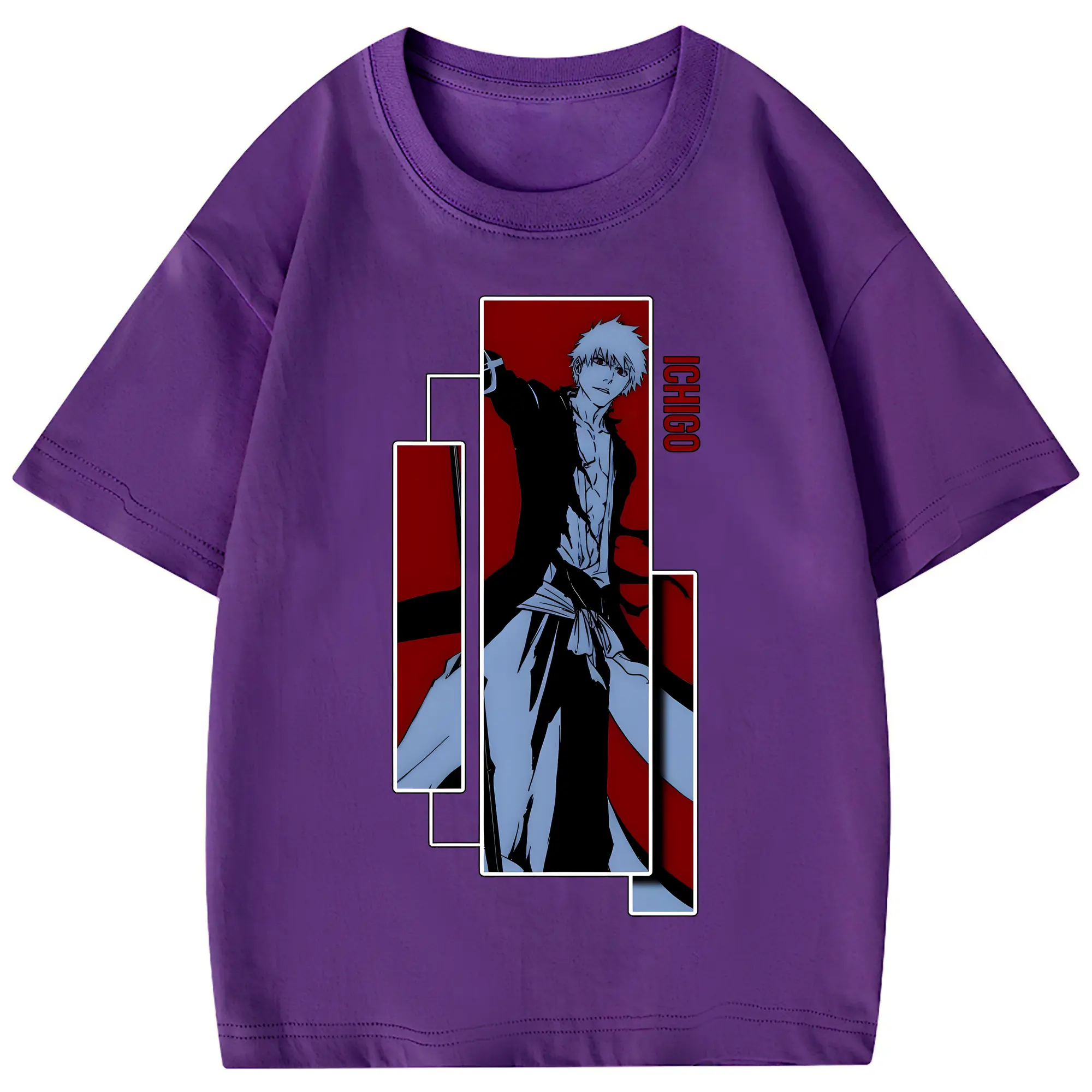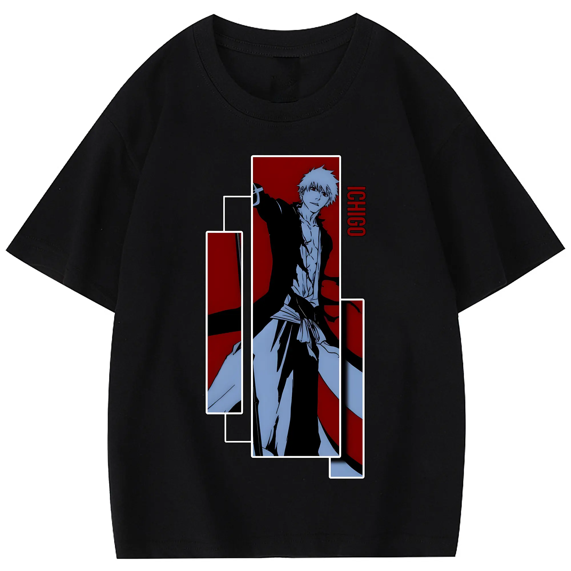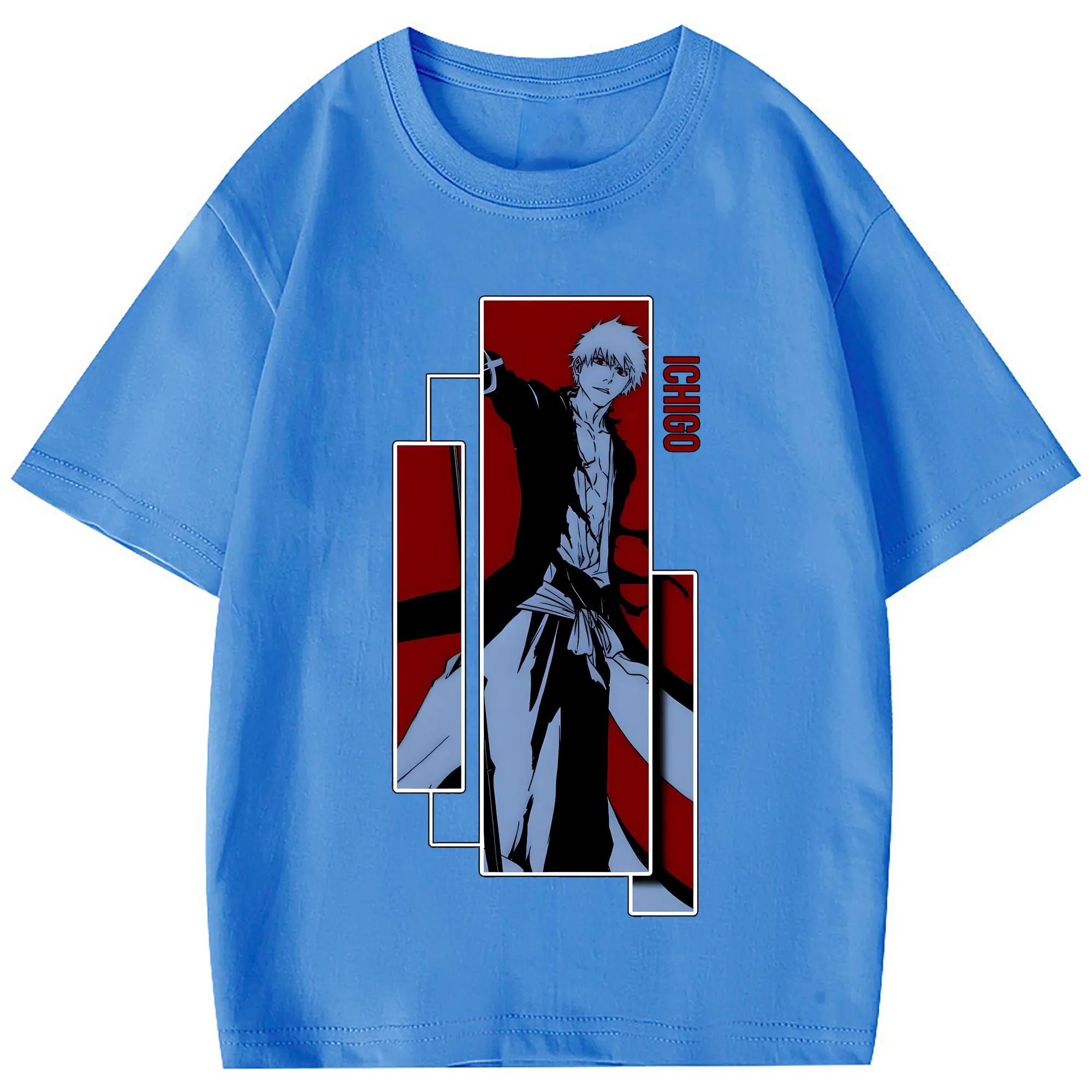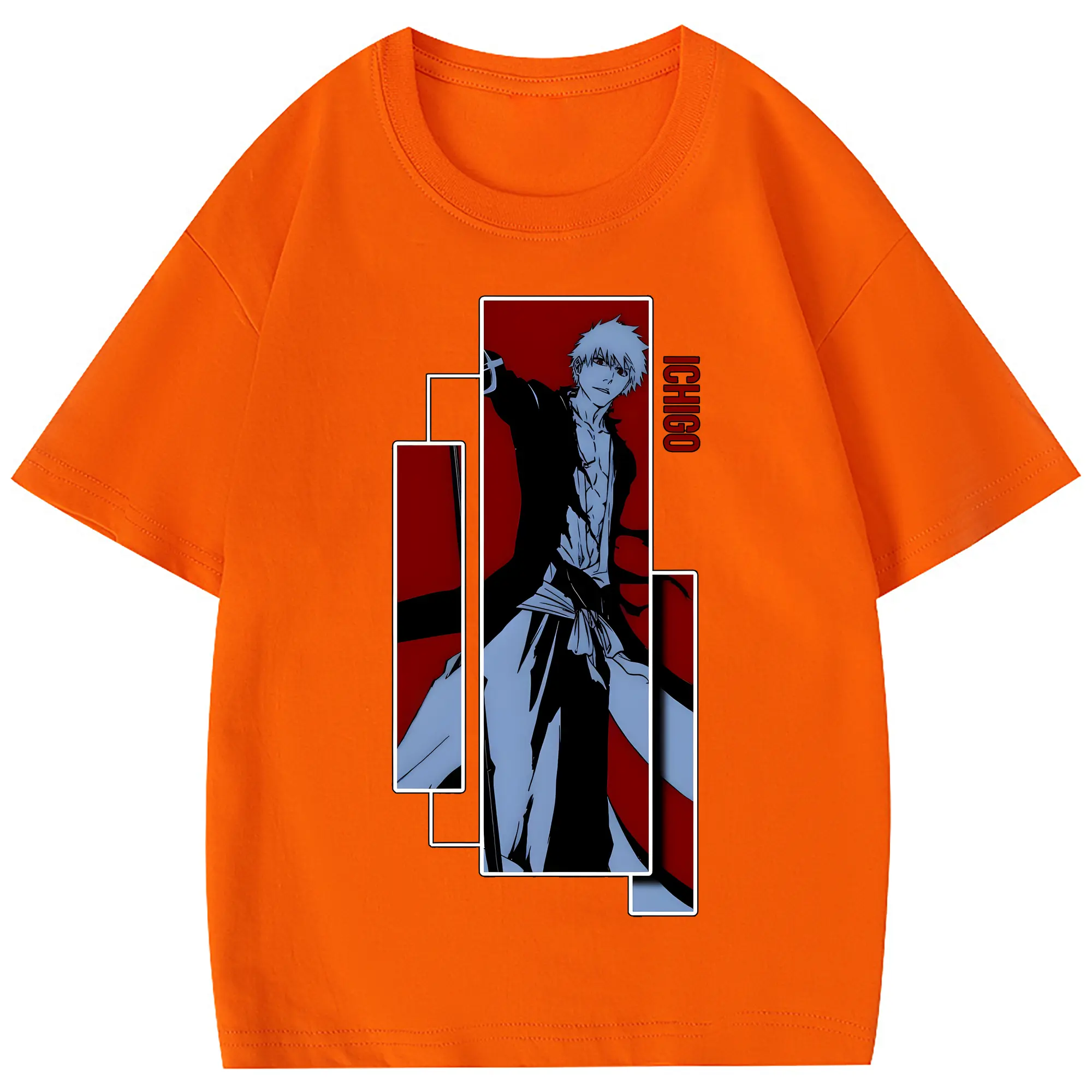 ブリーチ グッズ 黒崎 一護 - 綿100% 半袖Tシャツ ・ フロントプリント ・ 快適 通気性 ・ 日常使い 散歩 スポーツ用