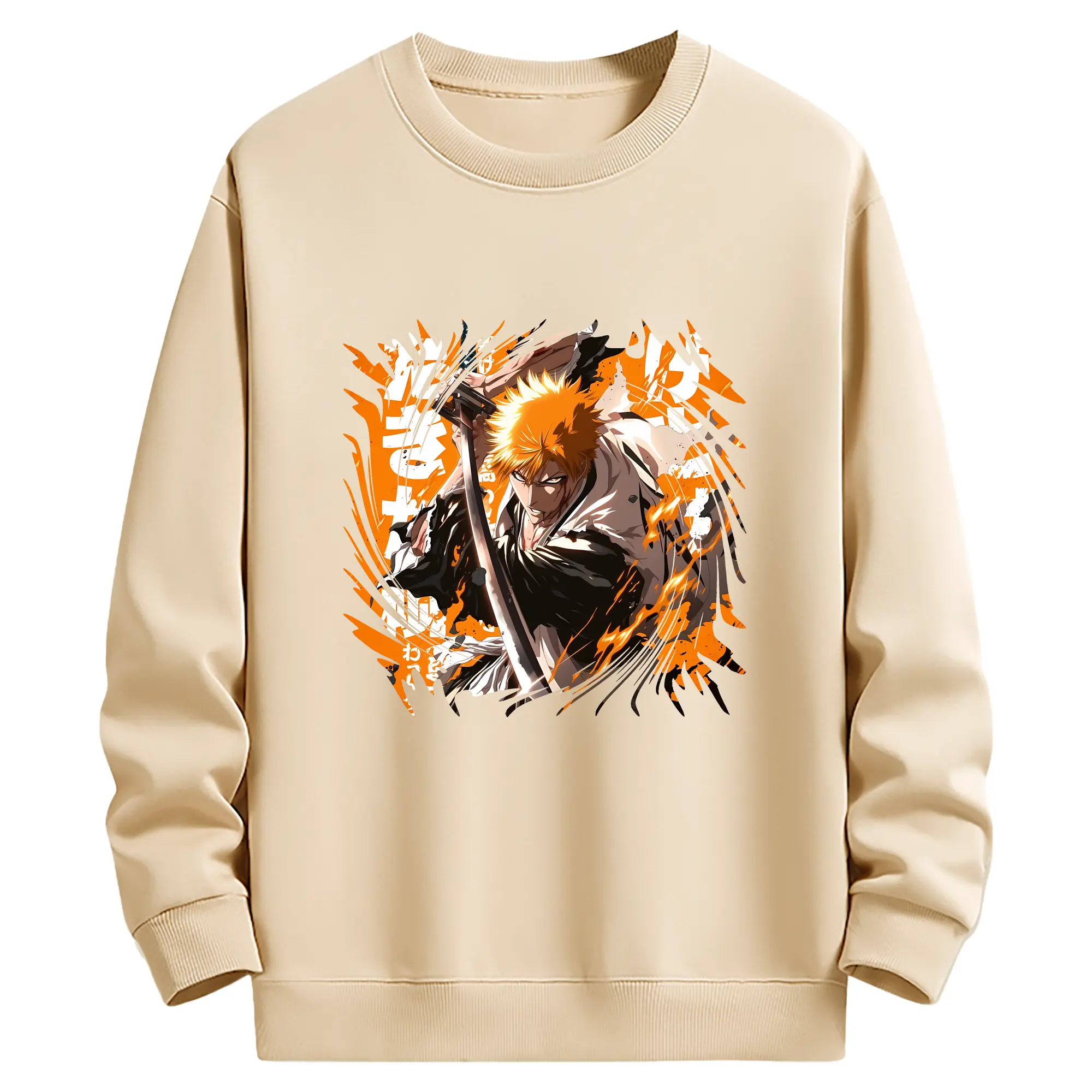 ブリーチ グッズ 黒崎 一護 - 薄手 クルーネック スウェット 裏毛260g · ポリエステル 春秋向け カジュアル 男女兼用 · トレーナー デイリー スポーツ 散歩に最適