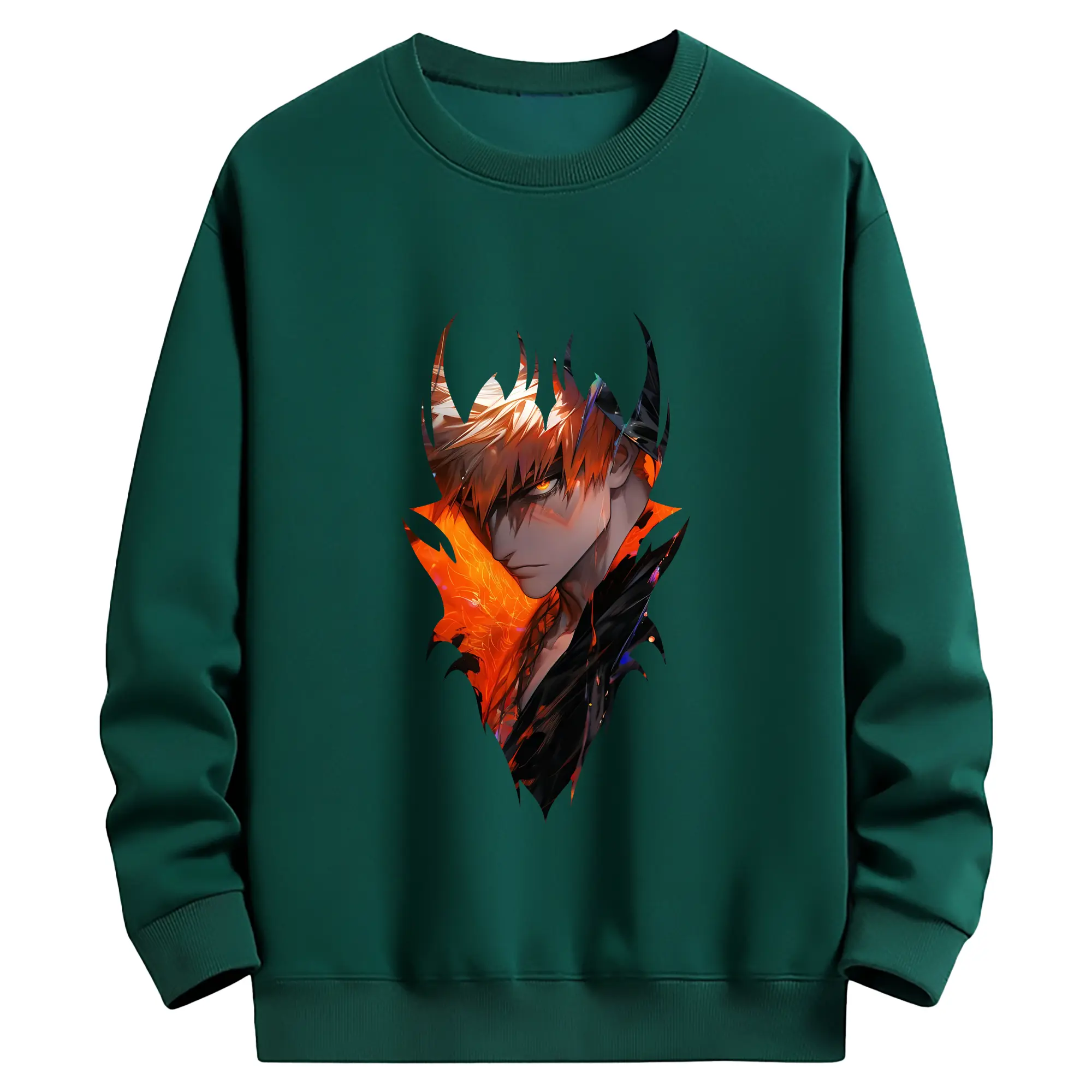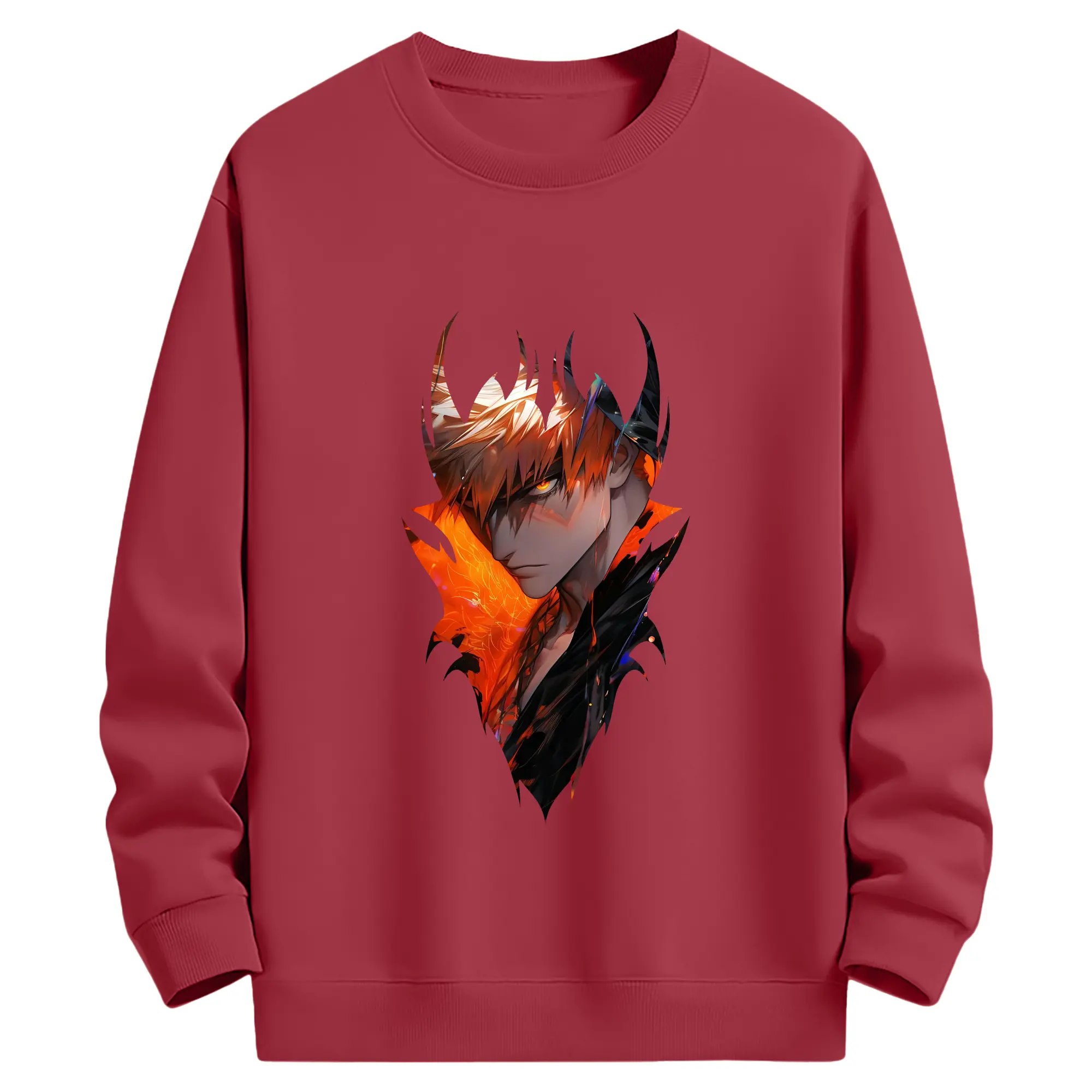 ブリーチ グッズ 黒崎 一護 - 高品質 クルーネック スウェット ・ コットン59% ポリエステル41% ・ ユニセックス 長袖 トレーナー ・ カジュアル デイリー スポーツ 散歩用