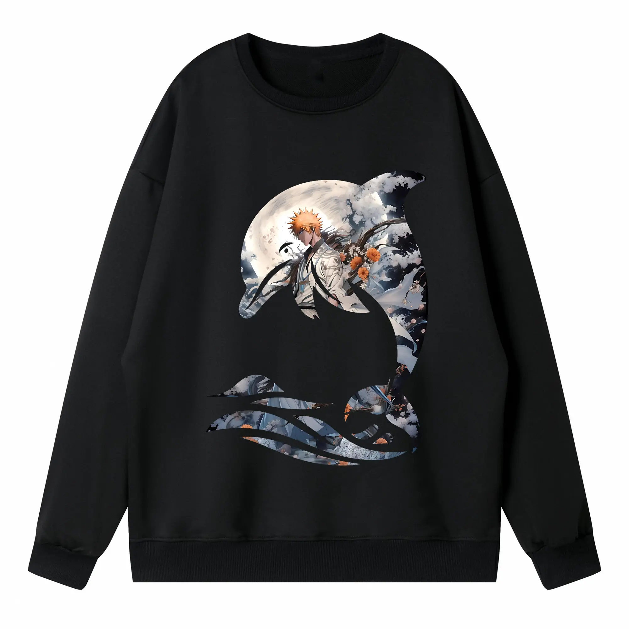 ブリーチ グッズ 黒崎 一護 - 高品質 クルーネック スウェット ・ コットン59% ポリエステル41% ・ ユニセックス 長袖 トレーナー ・ カジュアル デイリー スポーツ 散歩用