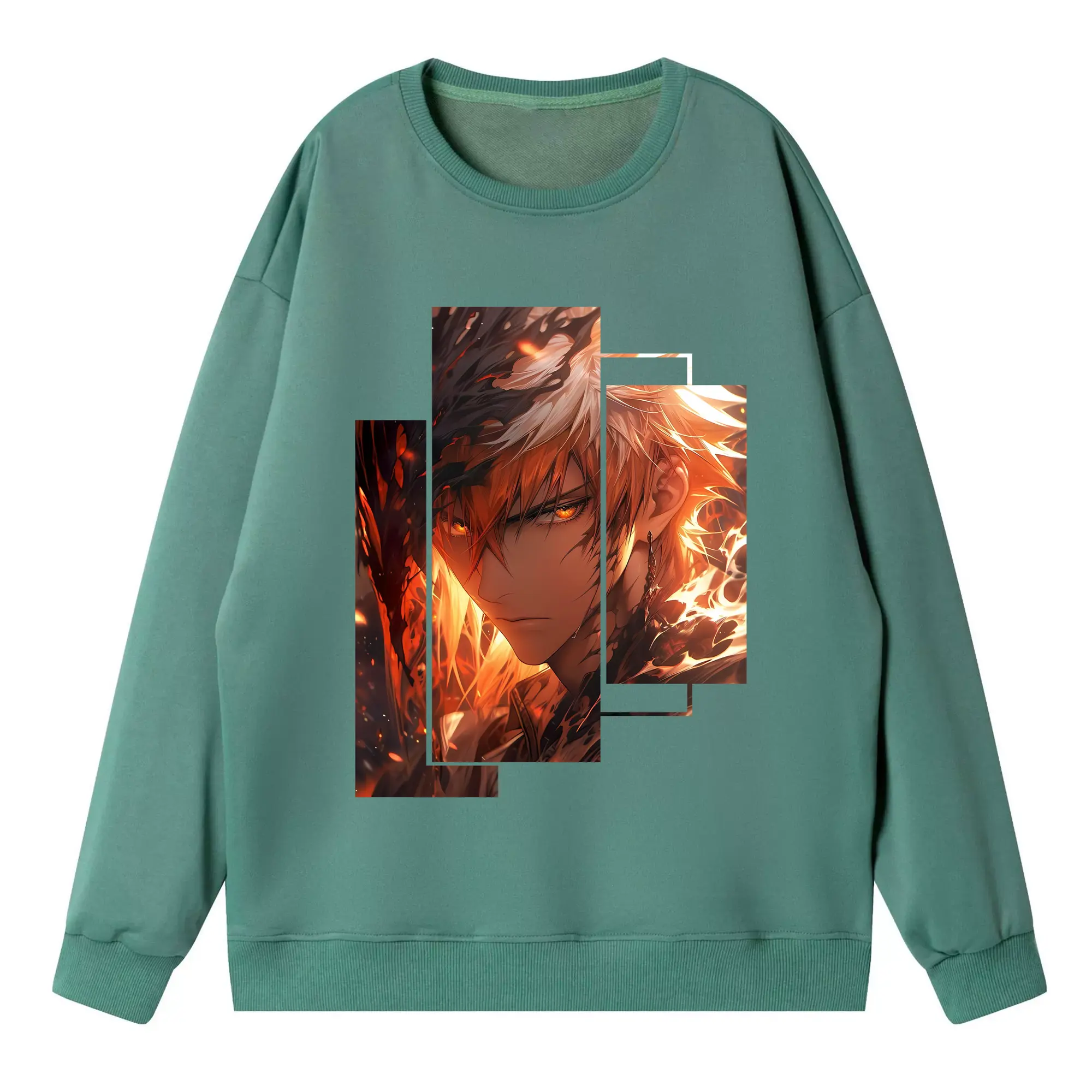 ブリーチ グッズ 黒崎 一護 - 高品質 クルーネック スウェット ・ コットン59% ポリエステル41% ・ ユニセックス 長袖 トレーナー ・ カジュアル デイリー スポーツ 散歩用
