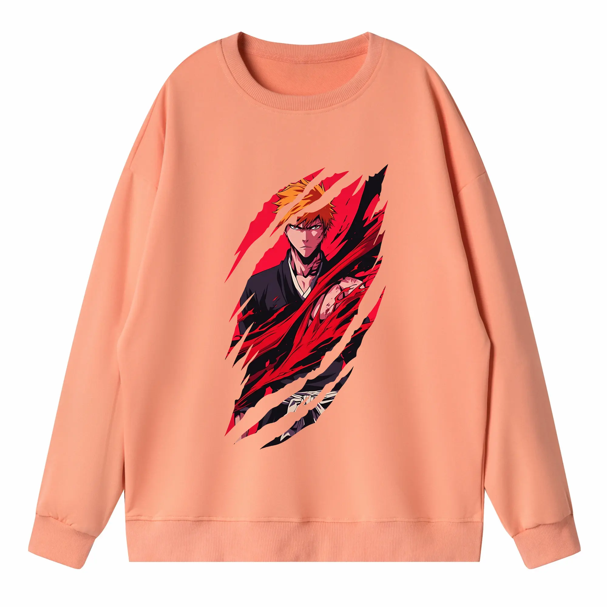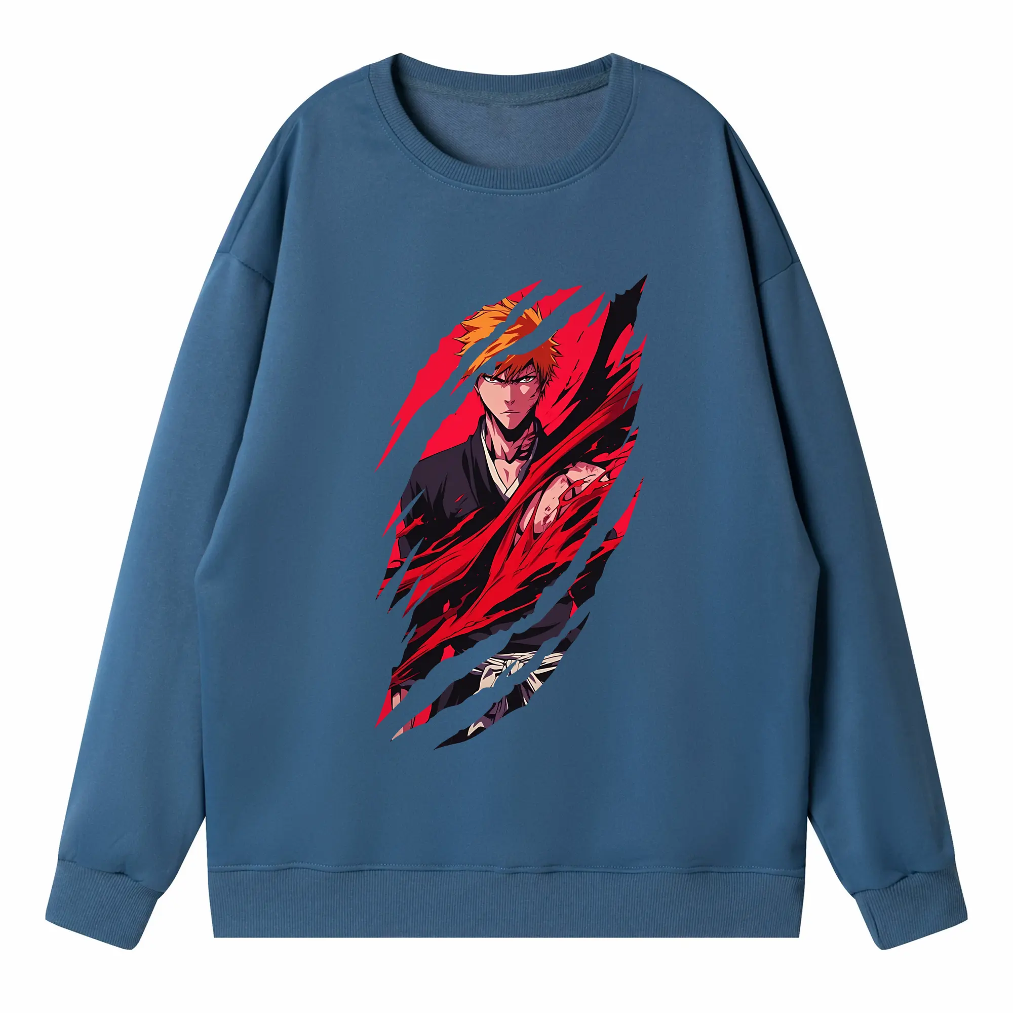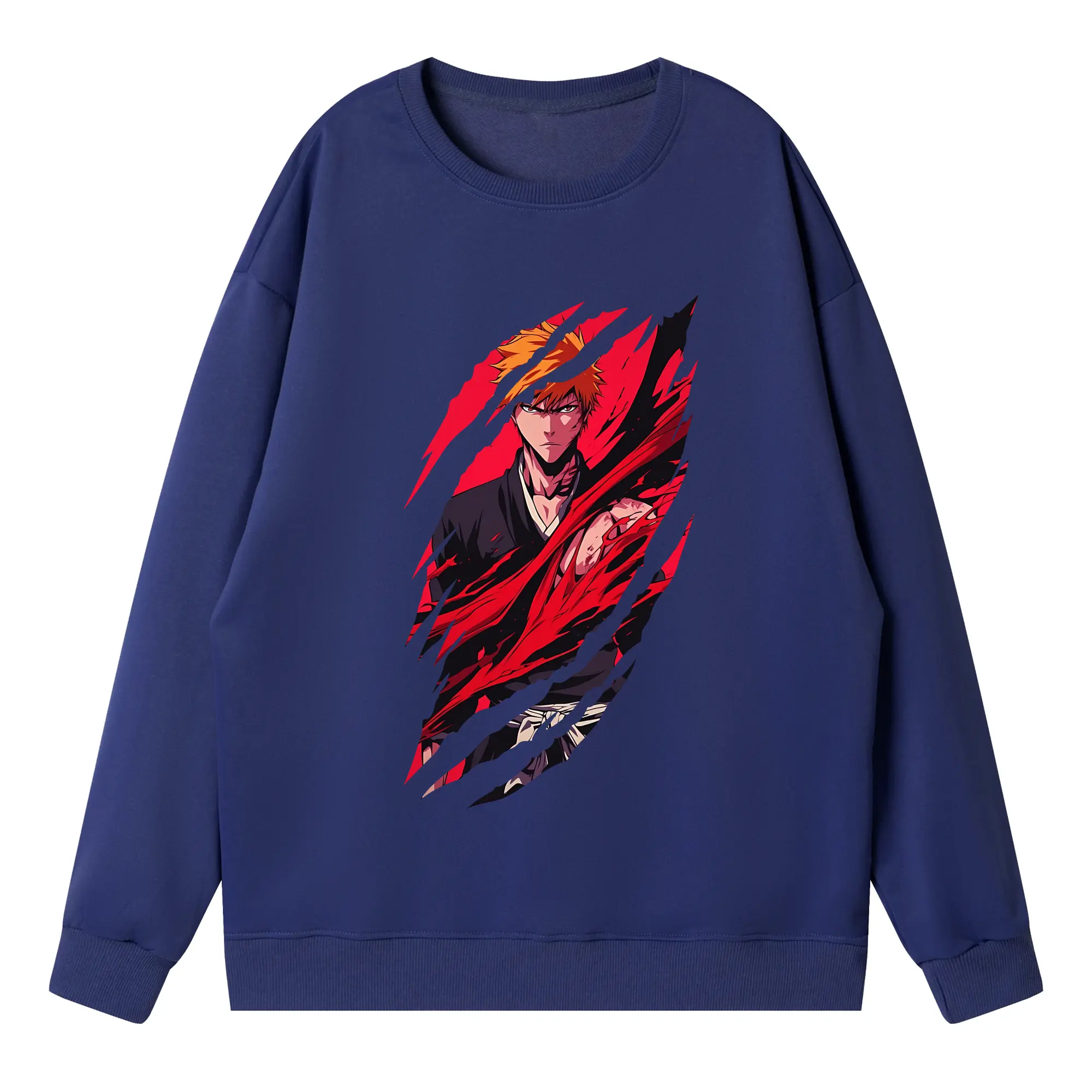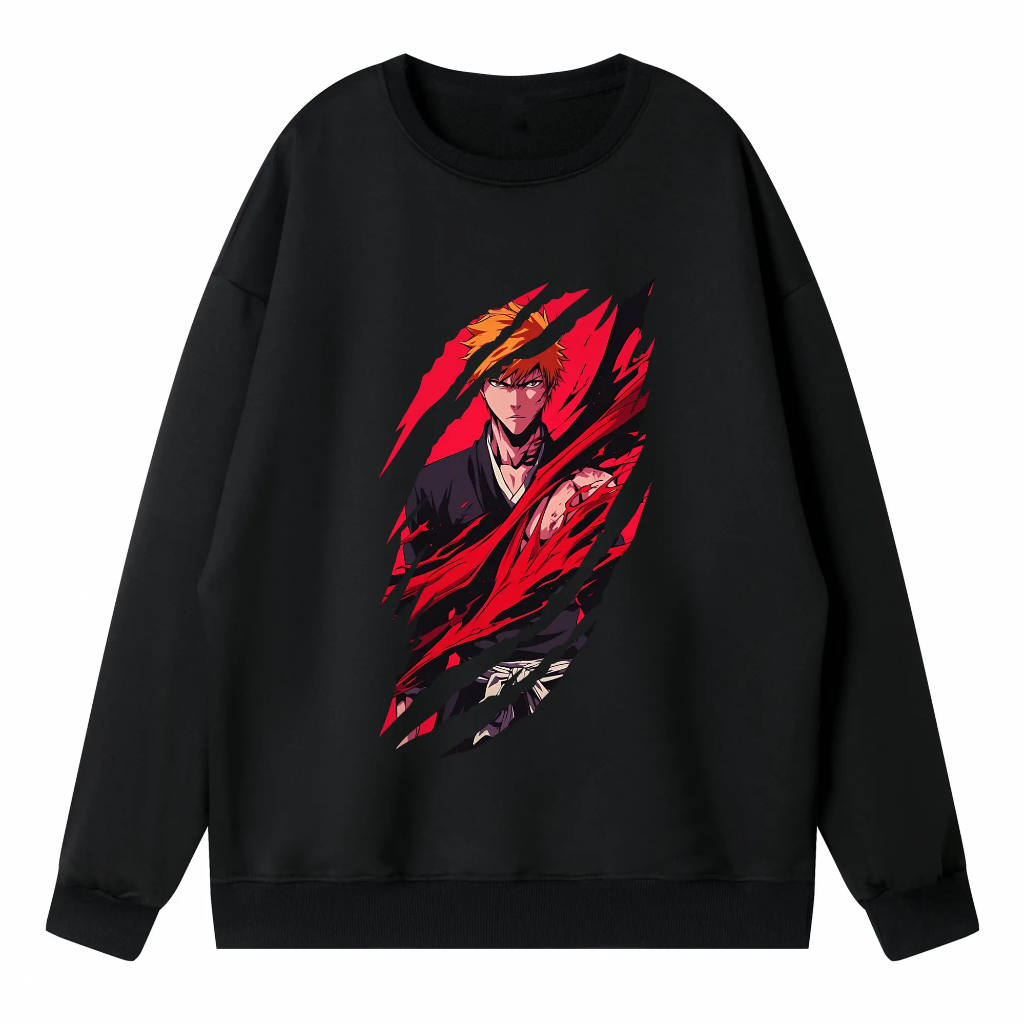 ブリーチ グッズ 黒崎 一護 - 高品質 クルーネック スウェット ・ コットン59% ポリエステル41% ・ ユニセックス 長袖 トレーナー ・ カジュアル デイリー スポーツ 散歩用